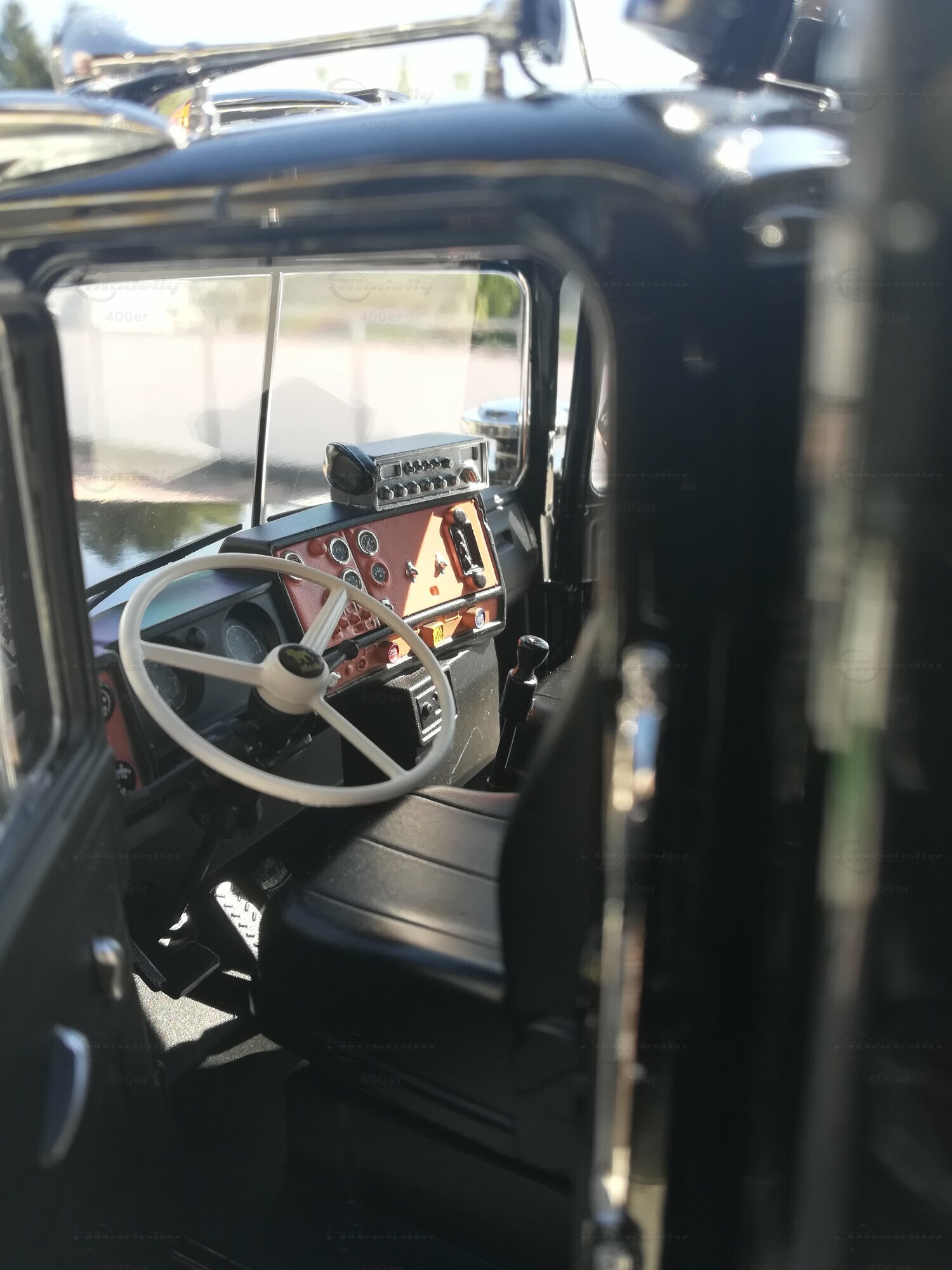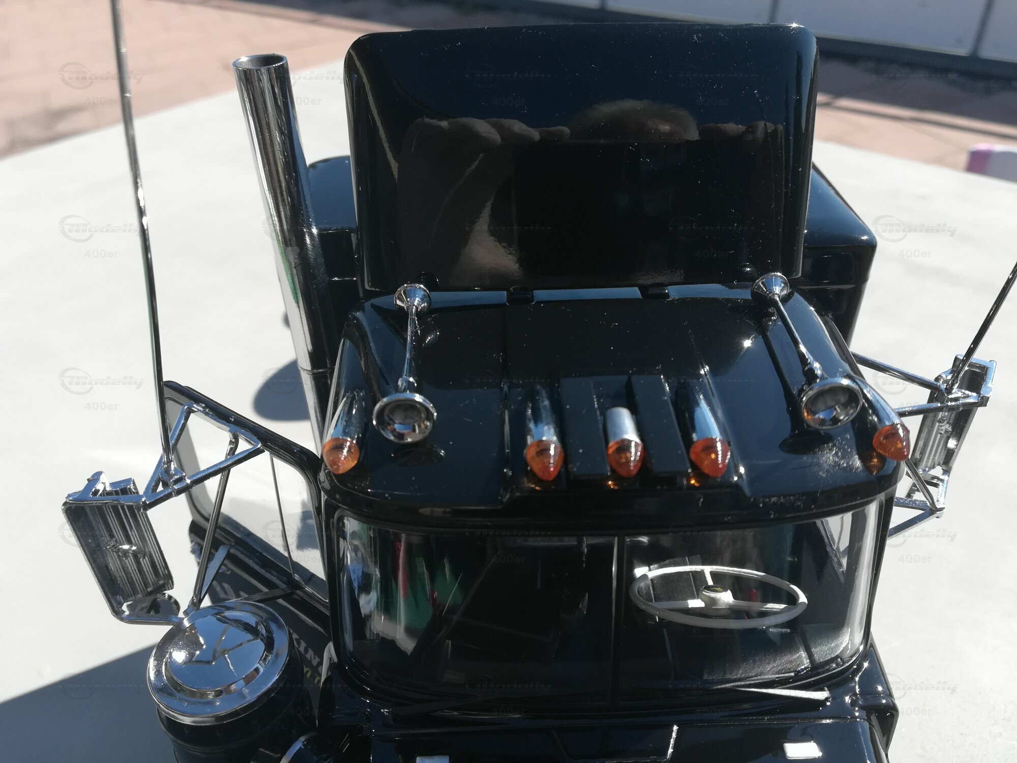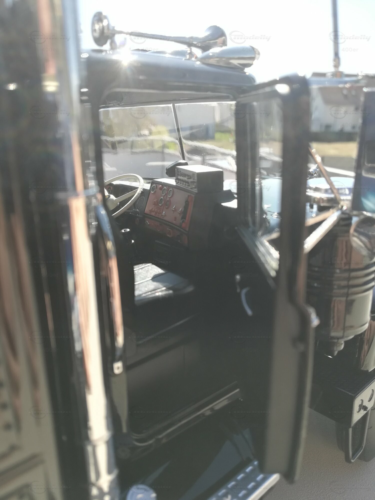 The model of the MACK RS700 in the scale of 1/18, manufactured by Road Kings, is a detailed replica popular among collectors. This miniature version is made of die-cast material, giving it remarkable stability and durability. The model, part of the collection of Modelly member "400er," showcases all the distinctive features of the original, including the striking front end with the massive grille and imposing bumpers. Special attention is also drawn to fine details like the side mirrors, the cabin attachments, and the markings on the driver's side, making the model a real eye-catcher.