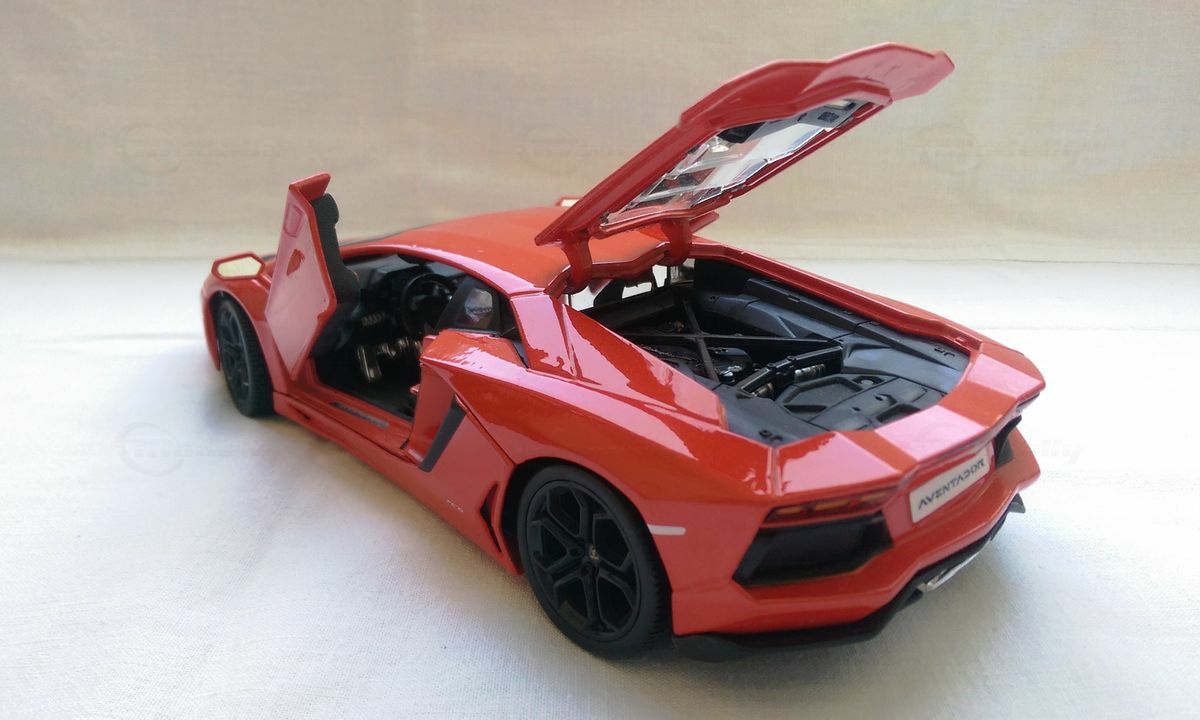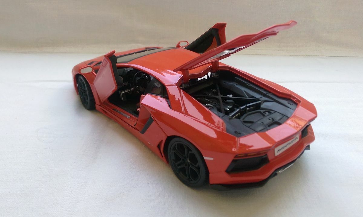 The 1/18 scale model showcased here, crafted by Bburago, is a particularly detailed and faithful representation of the Lamborghini Aventador LP 700-4. This model belongs to the collection of Modelly member "arl221" and is made from diecast material. The painted body in a vibrant red color accentuates the sharp lines and dynamic contours of the Aventador. The black wheels, possibly from a renowned manufacturer like Nekzn Forged or similar, enhance the model's aggressive look and highlight its sporty character. The interior is also intricately replicated, a feature appreciated by model car enthusiasts.