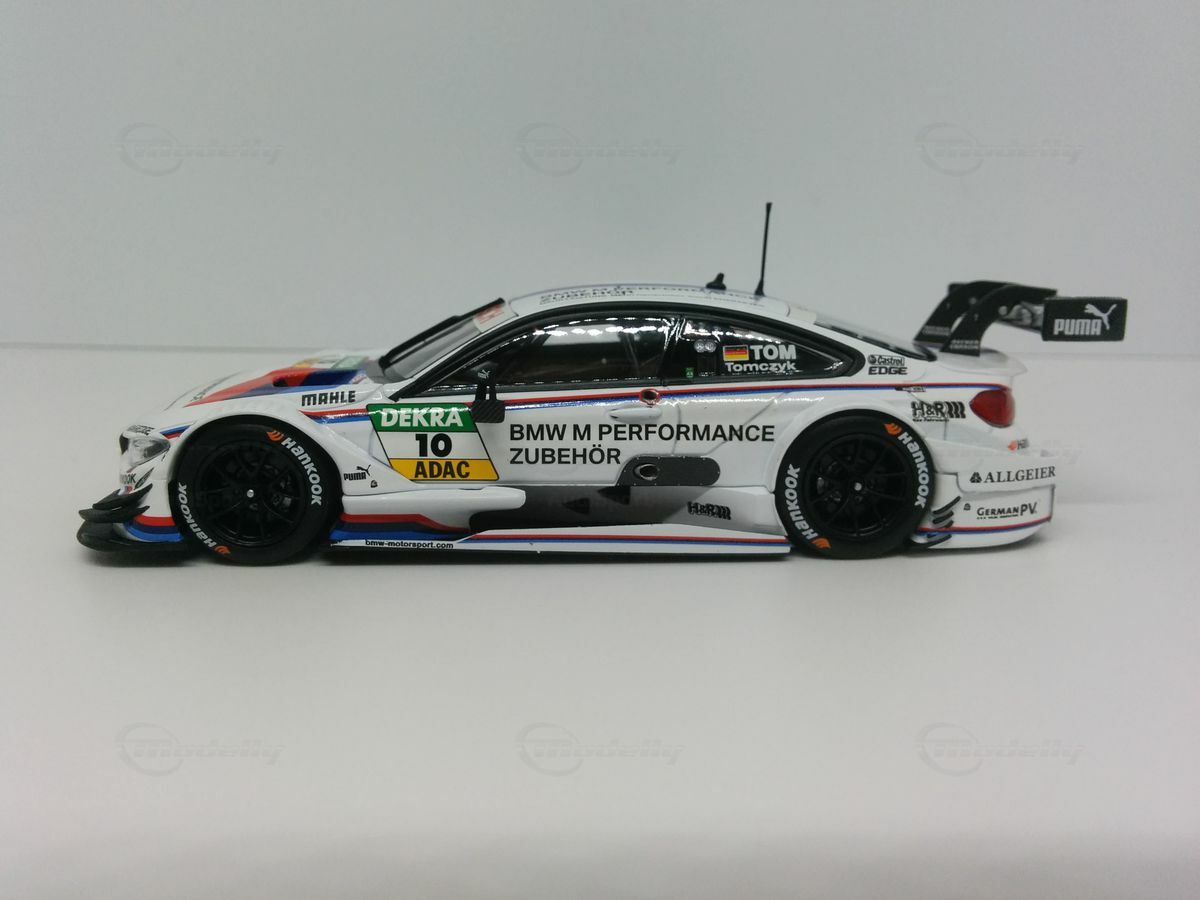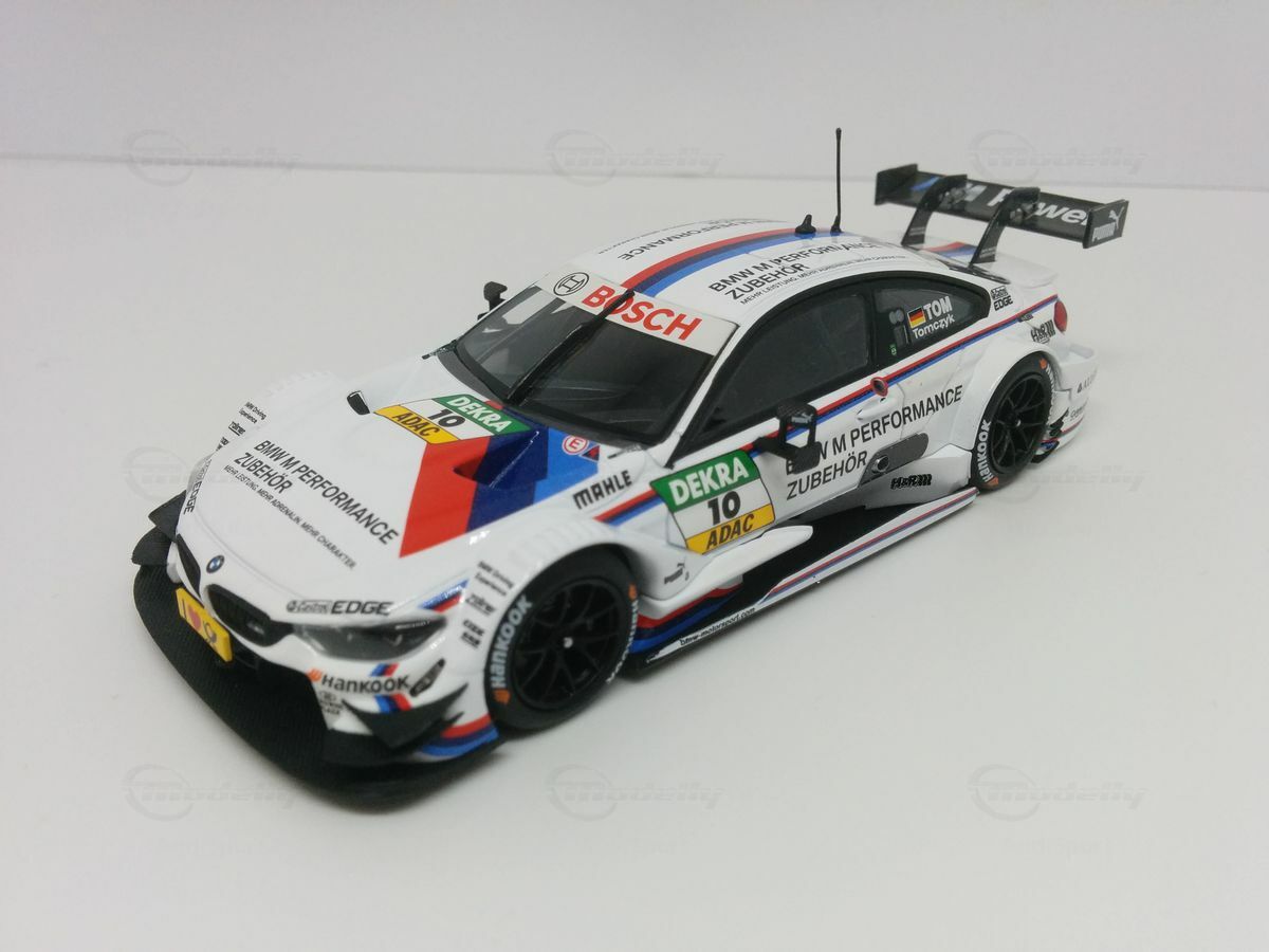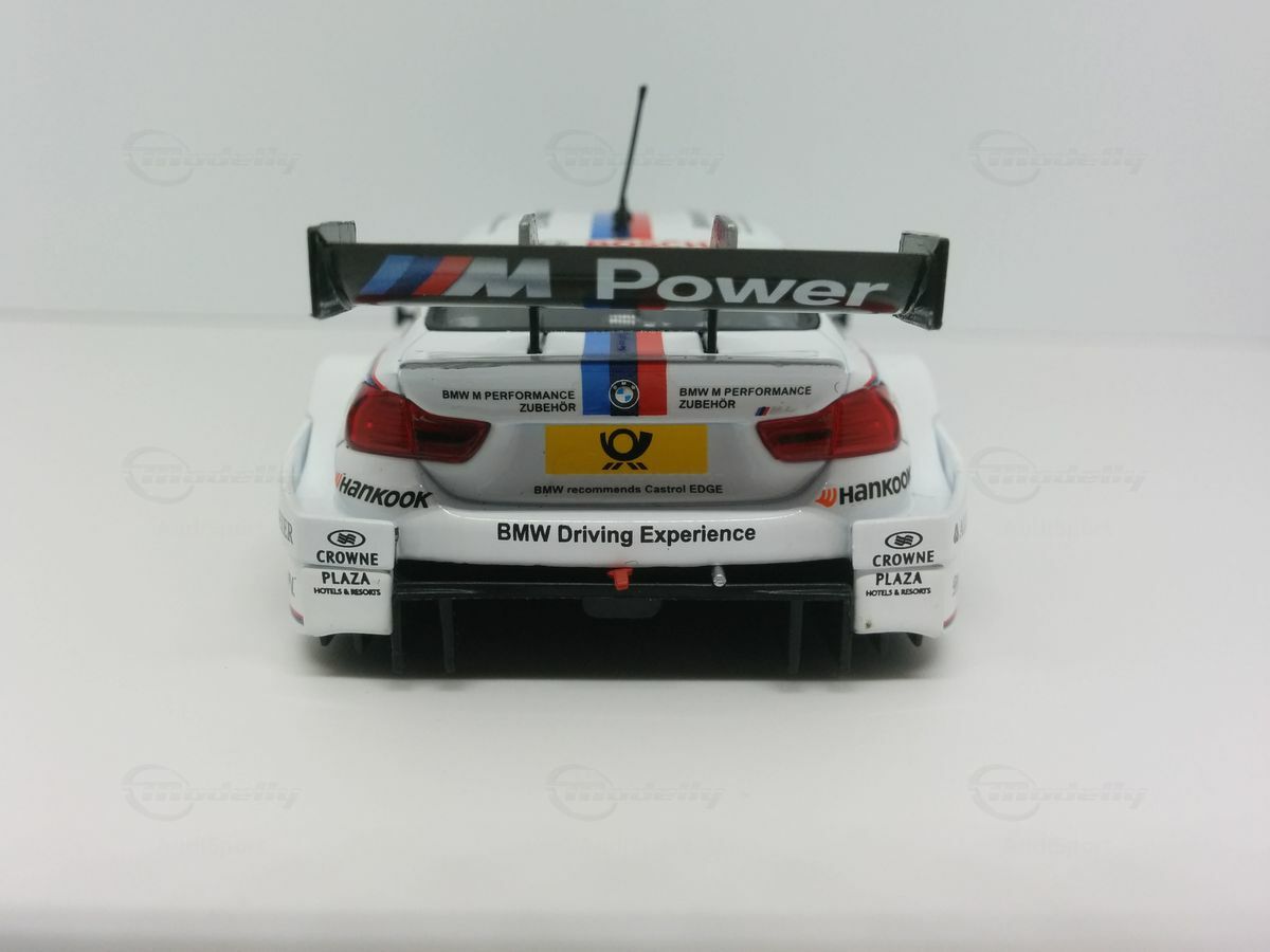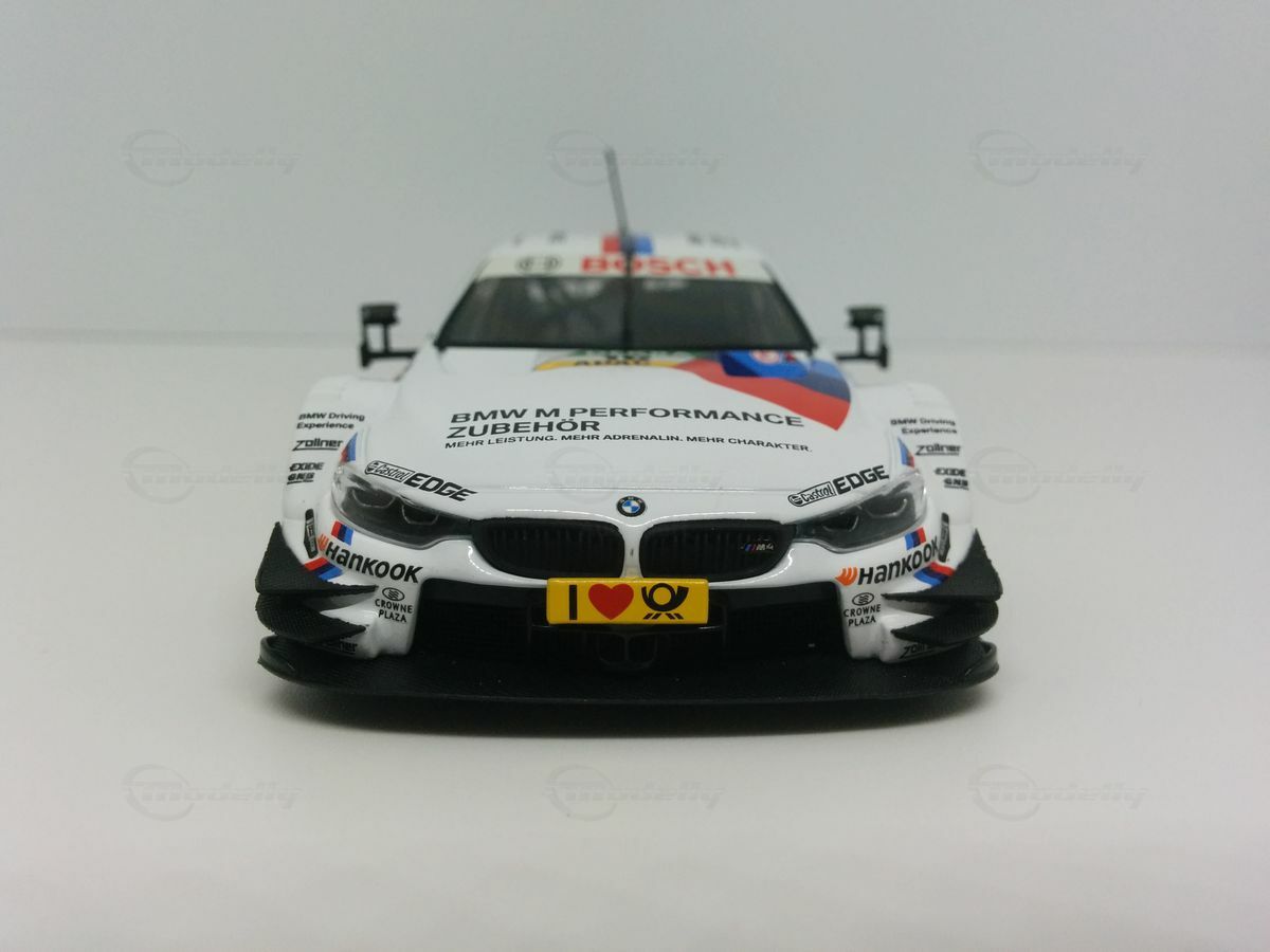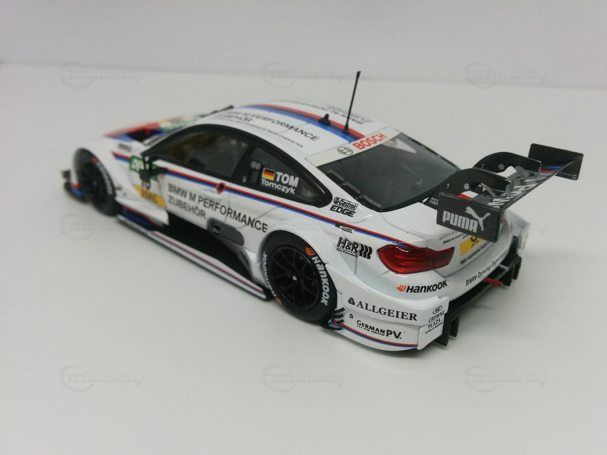 The Minichamps model cars in a scale of 1/43 are highly popular among collectors for their meticulous attention to detail and high-quality craftsmanship. This specific model by Modelly member "AudiSport" represents the BMW M4 DTM in its racing livery. Made of resin, the model showcases precise and fine details reflecting the original car. The livery features the typical BMW Motorsport colors: white as the base color with blue and red accents. Sponsor decals from Deutsche Post, Hankook, and Shell can be seen on the hood and sides. These details give the model an authentic look that perfectly represents the original race car.