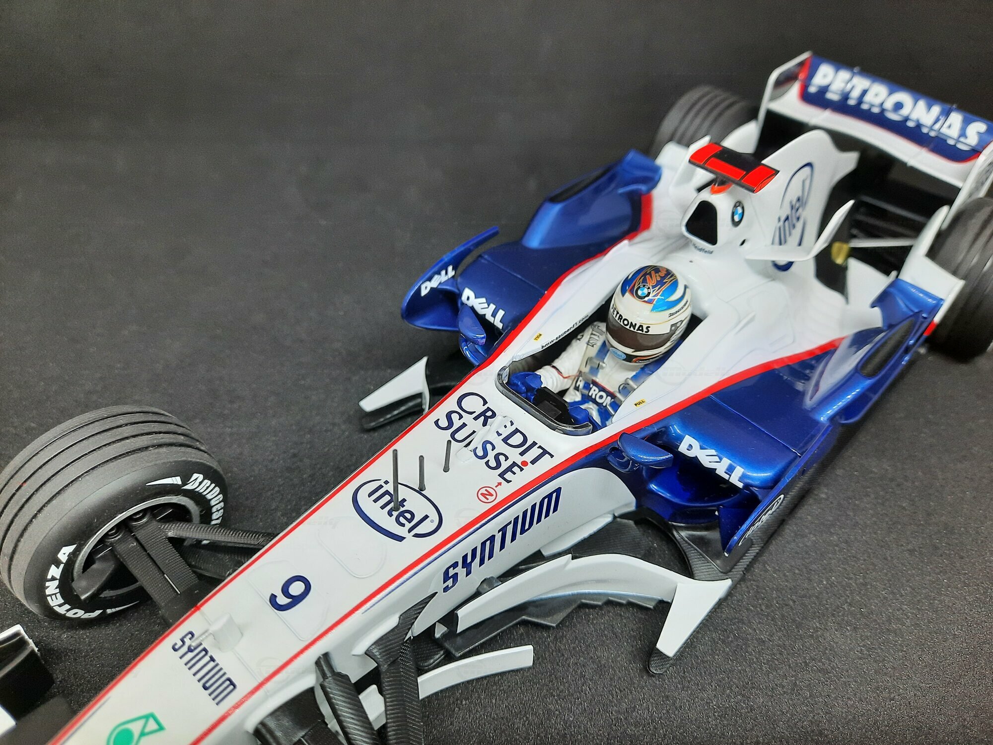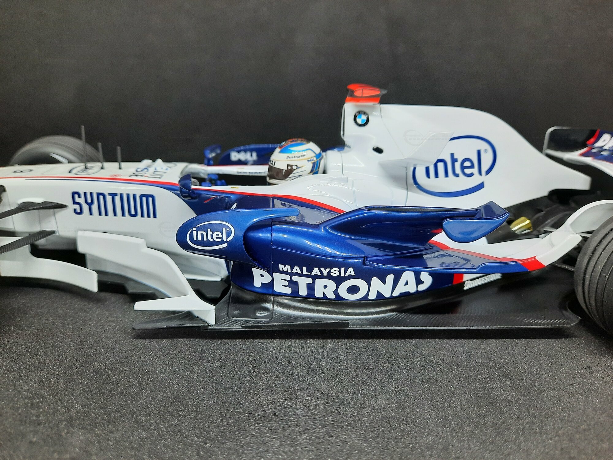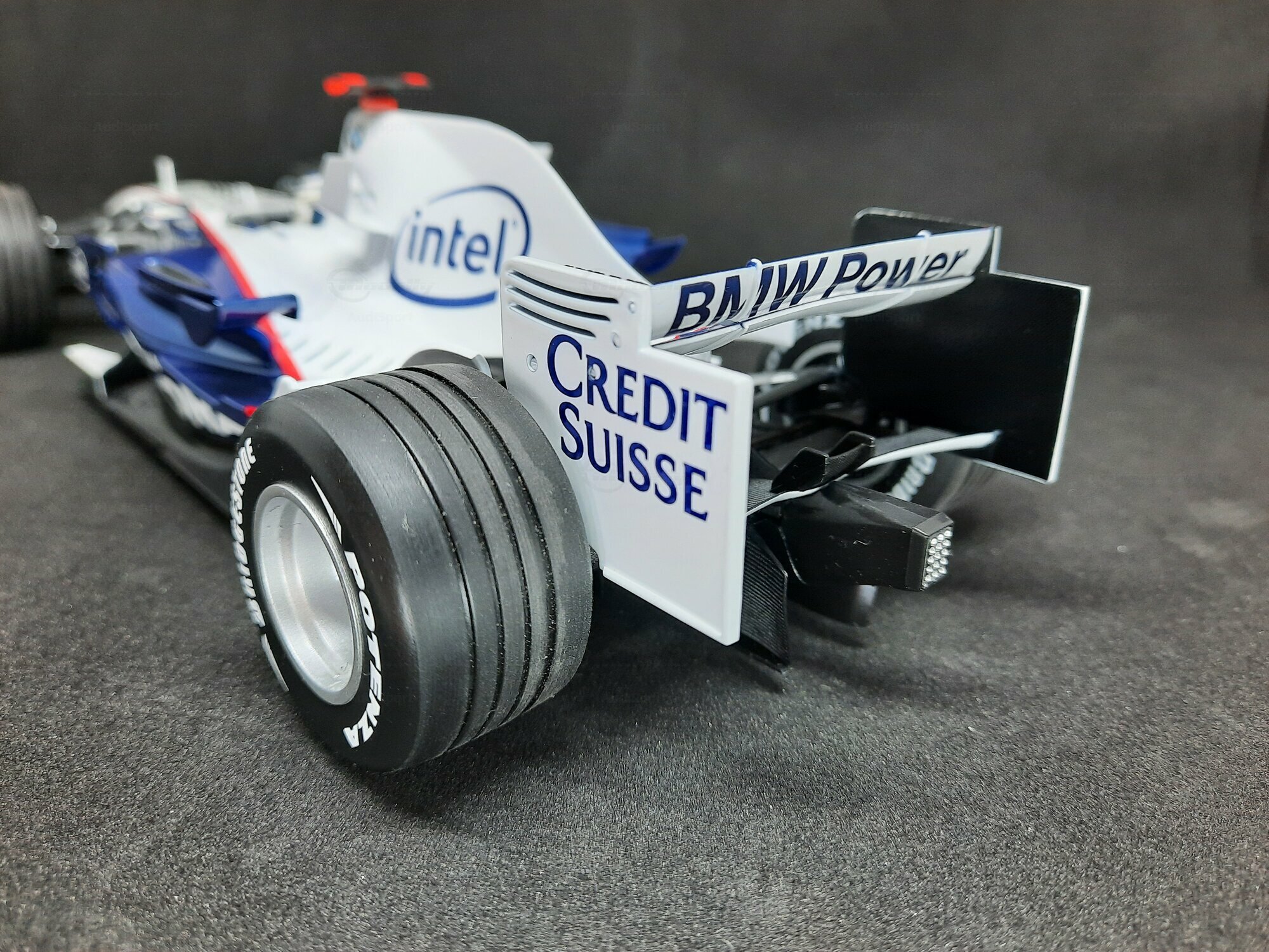 The BMW Sauber F1.07 is a remarkable Formula 1 car from an iconic era of motorsport. Built in the 2007 generation, this model showcases some of the technological advancements and innovations of that time. Designed and constructed by a talented team, including the renowned engineer Willy Rampf under the leadership of Mario Theissen, the BMW Sauber F1.07 focuses on performance and precision. Following the disappointing BMW Sauber F1.06, it not only did its duty but also laid the foundation for further success of the team in the Formula 1 circus. In technical terms, the BMW Sauber F1.07 was equipped with a high-performance 2.4-liter V8 engine that brought impressive power and reliability to the world's race tracks.