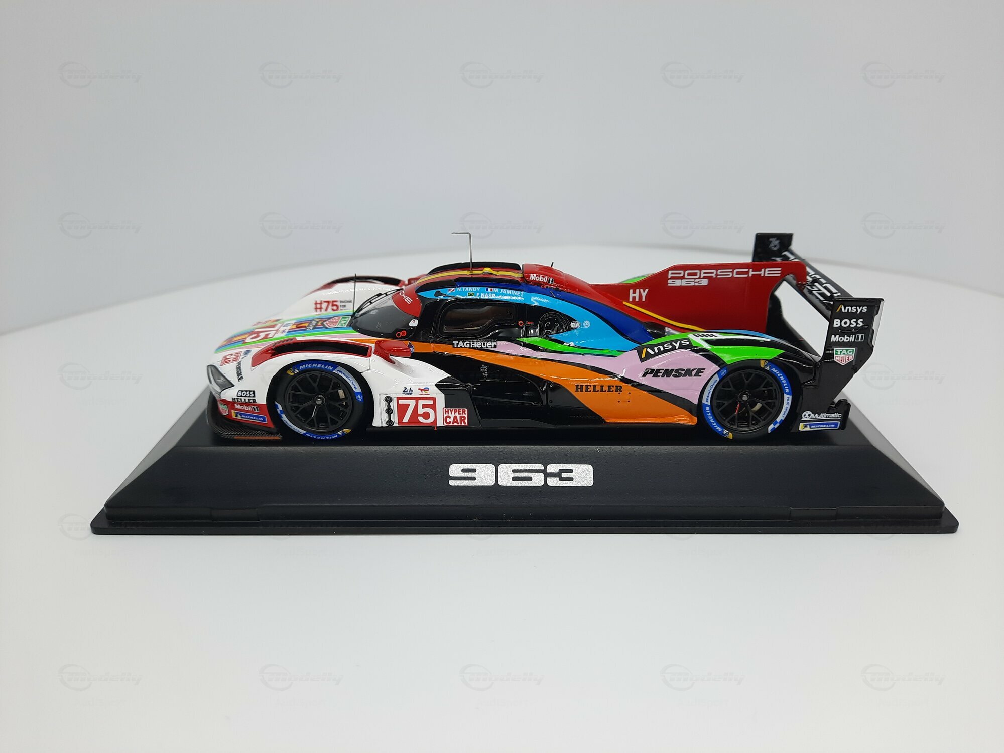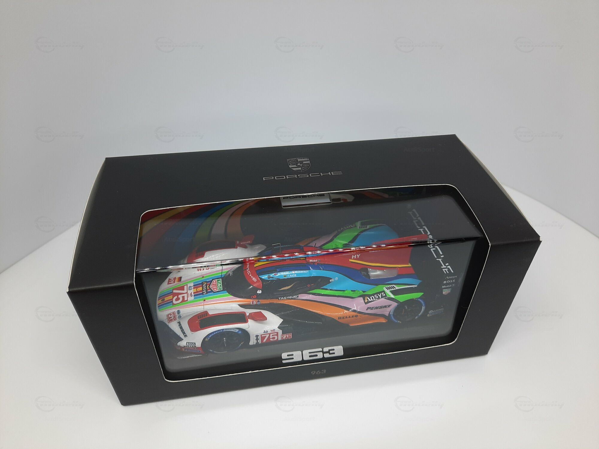 The Porsche 963 comes from the LMDh generation and was first built in 2022. This iconic vehicle features a variety of technological innovations and was developed by the engineers and designers at Porsche. Under the hood is a 4.6-liter, V8 twin-turbo engine based on the LMDh category's standard powertrain. The Porsche 963 is a Le Mans-Daytona-h class car. It delivers approximately 680 horsepower to the track and incorporates an efficient hybrid system for performance enhancement and energy efficiency. The LMDh generation succeeded the Porsche 919 Hybrid and has quickly become one of the most powerful prototype racing cars in the world. Porsche drew on deep expertise acquired in decades of experience in motorsport to develop this model.