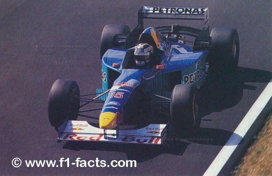 Heinz-Harald Frentzen with red starting number (15) at the Portuguese GP 1996 (22.09.1996)