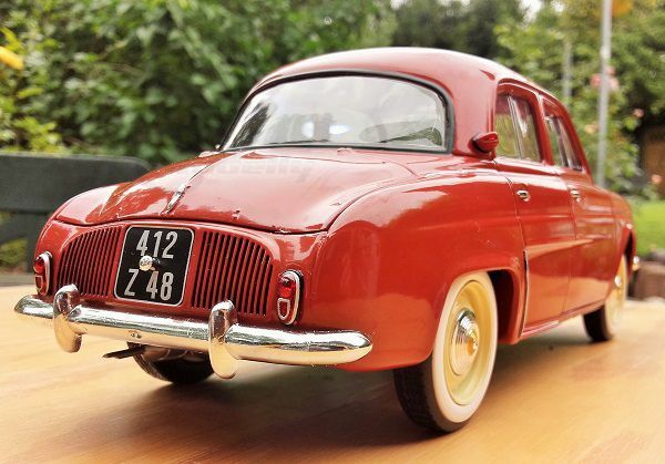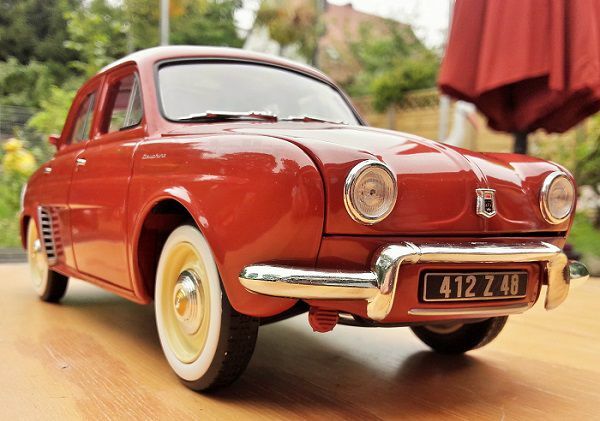 The Renault Dauphine was produced from 1956 to 1967 and is one of the most iconic models from the French car manufacturer. The model by the French maker Norev in the 1/18 scale, made from high-quality diecast, offers a meticulously detailed replica of this classic. This miniature belongs to BenzW110's collection and gives model car fans the chance to relive the 50s era with all its peculiarities. The original car boasted technical finesse, featuring a four-cylinder rear engine with a displacement of 845 cm³ (51.59 cubic inches), delivering 30 HP at 4,250 rpm.
