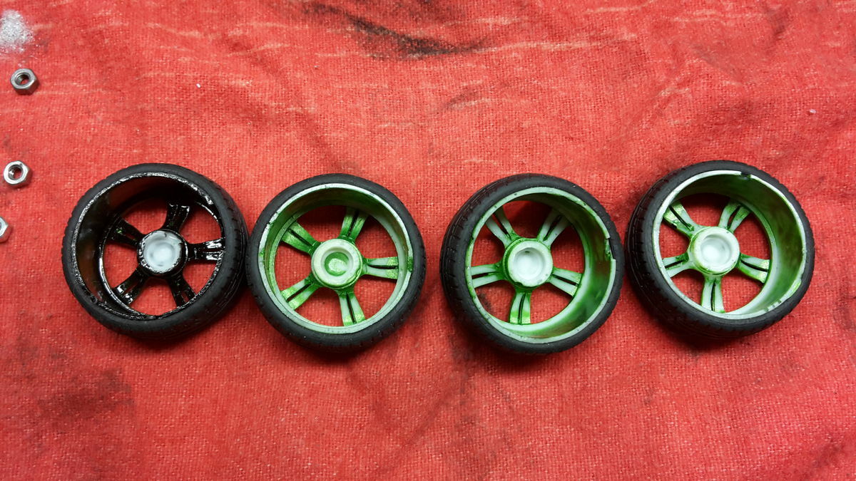 The GT Spirit model in a 1/18 scale is not only eye-catching but also offers specific details that collectors appreciate. The green and black color scheme of the model, the striking wheels, and the interior are particularly prominent. The wheels, obviously custom-made rims, give the model a personal touch. The precise replication of the interior with sporty seats and authentic controls highlights the high level of detail accuracy. The green accents on the side mirrors and wheels complement the black base color, creating a striking contrast that enhances the appearance even more.