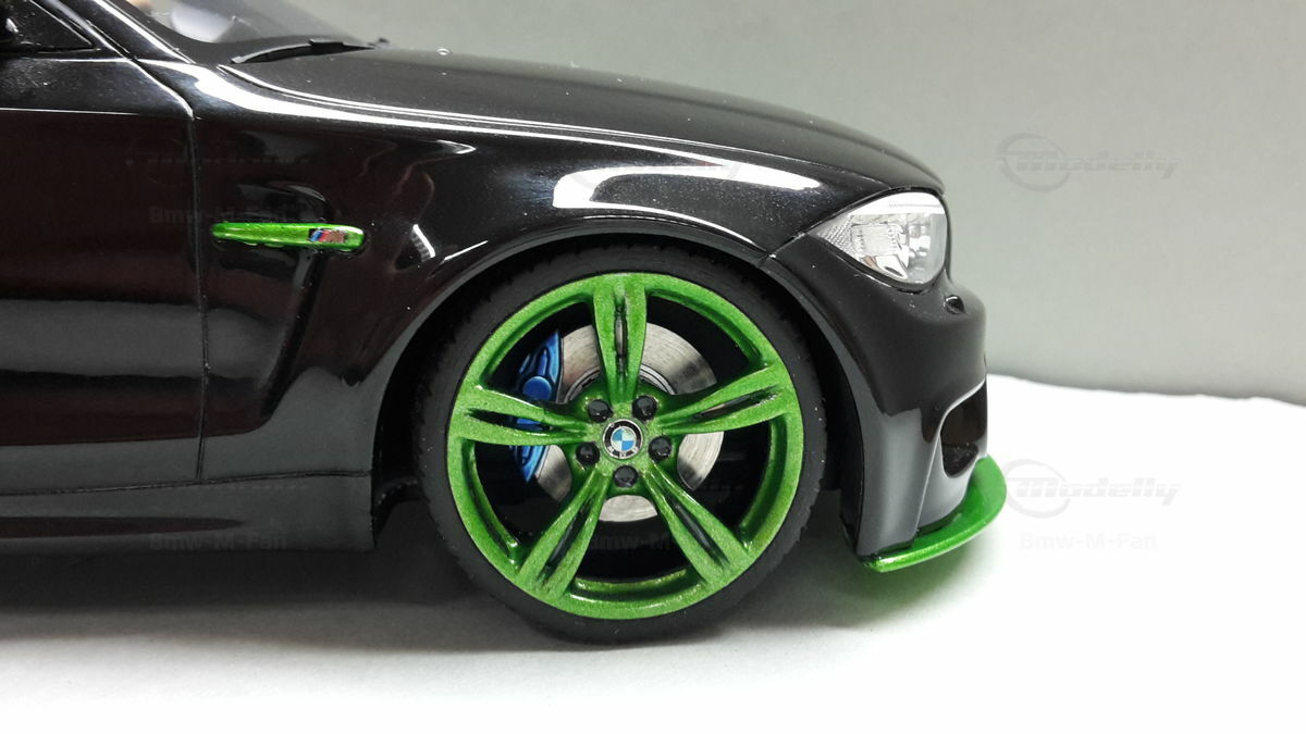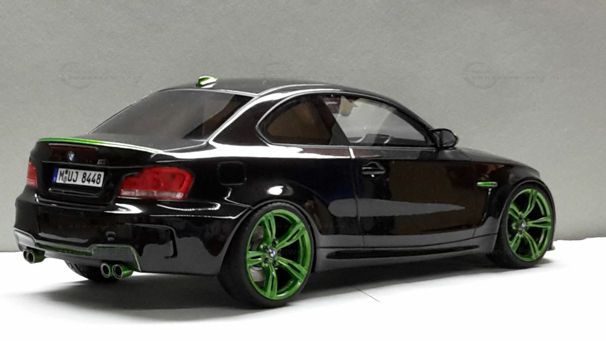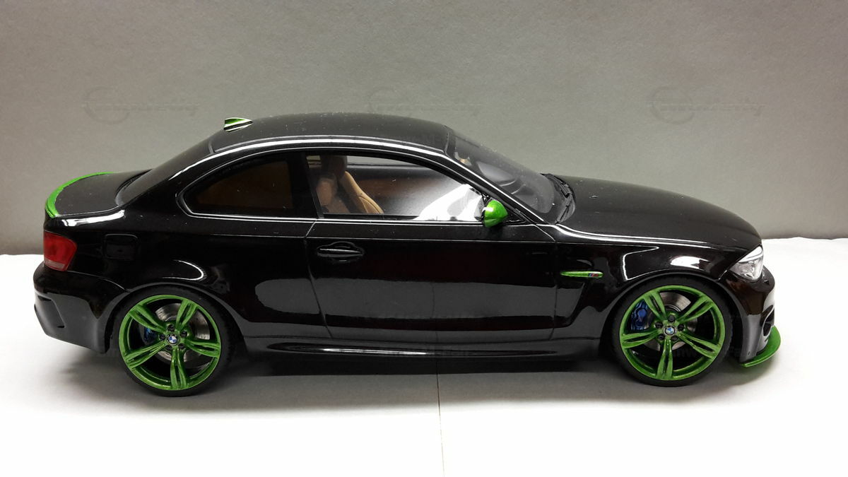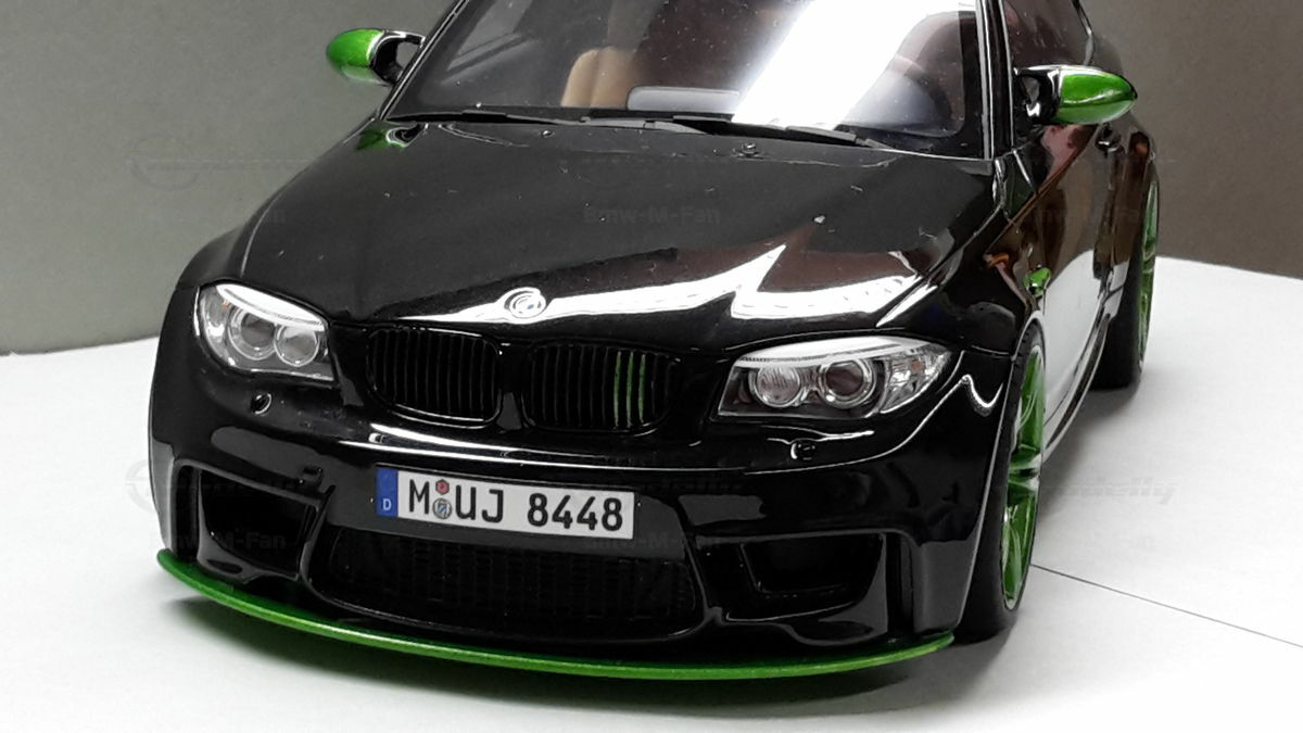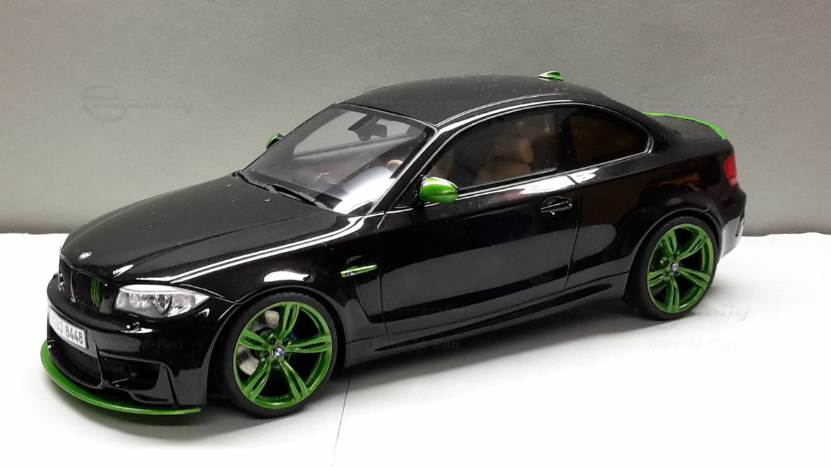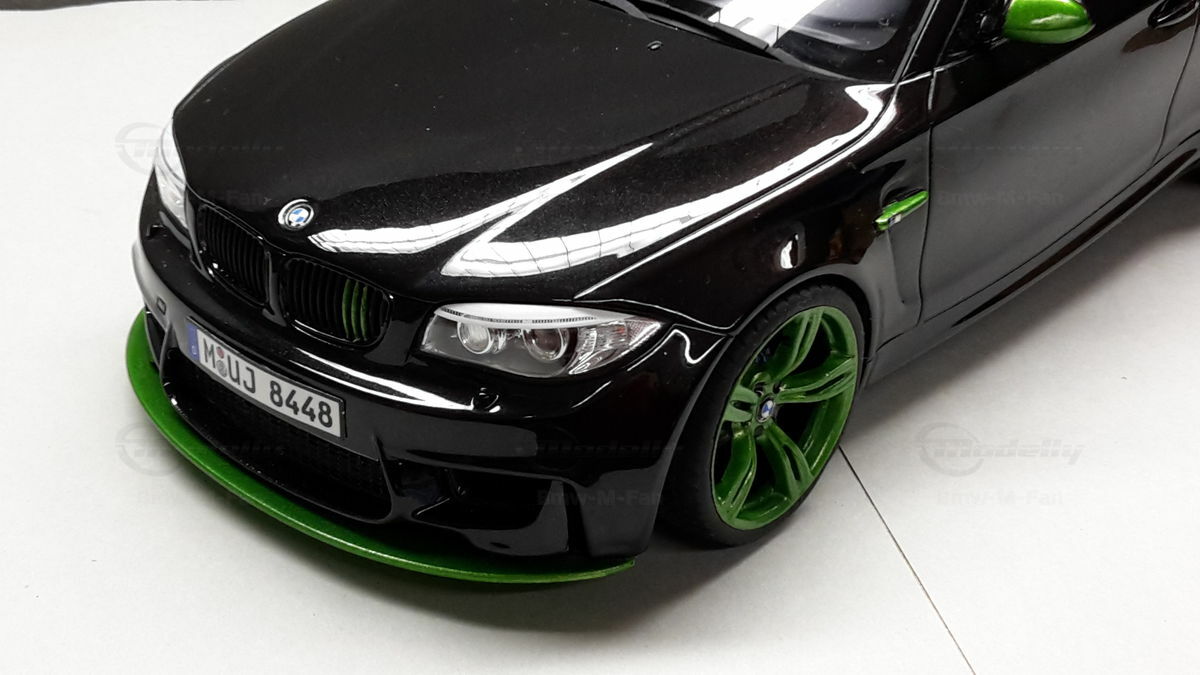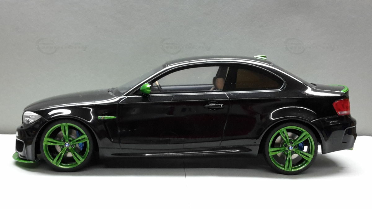 The model car shown here is a 1/18 scale replica of a BMW E82 1M Coupe, known as "Java Spirit". This miniature was manufactured by GT Spirit and is made of resin. It’s important to note that this is a modified model that doesn't represent the original product of the manufacturer GT Spirit. Collectors from around the world, like the Modelly member "Bmw-M-Fan", appreciate this detailed modification that caters to specific individual preferences.
