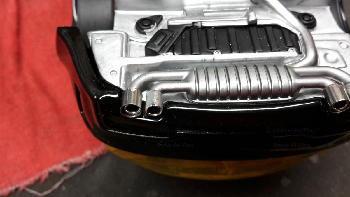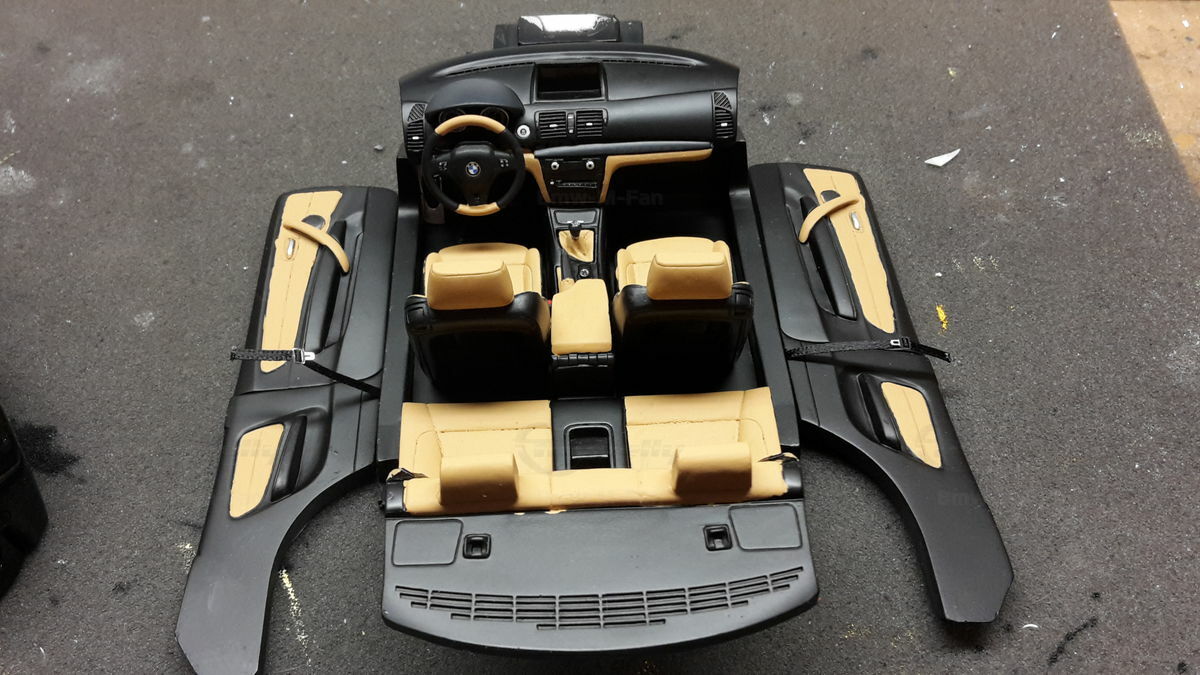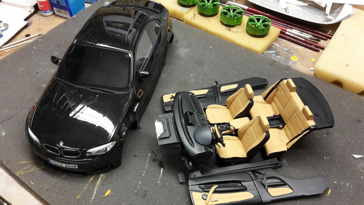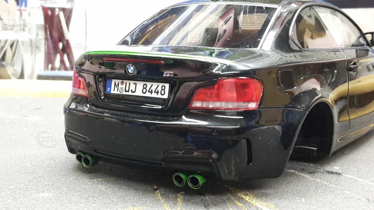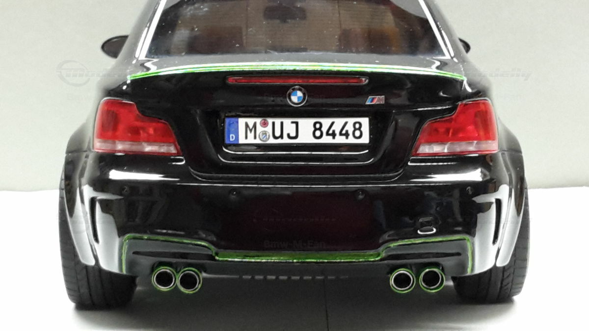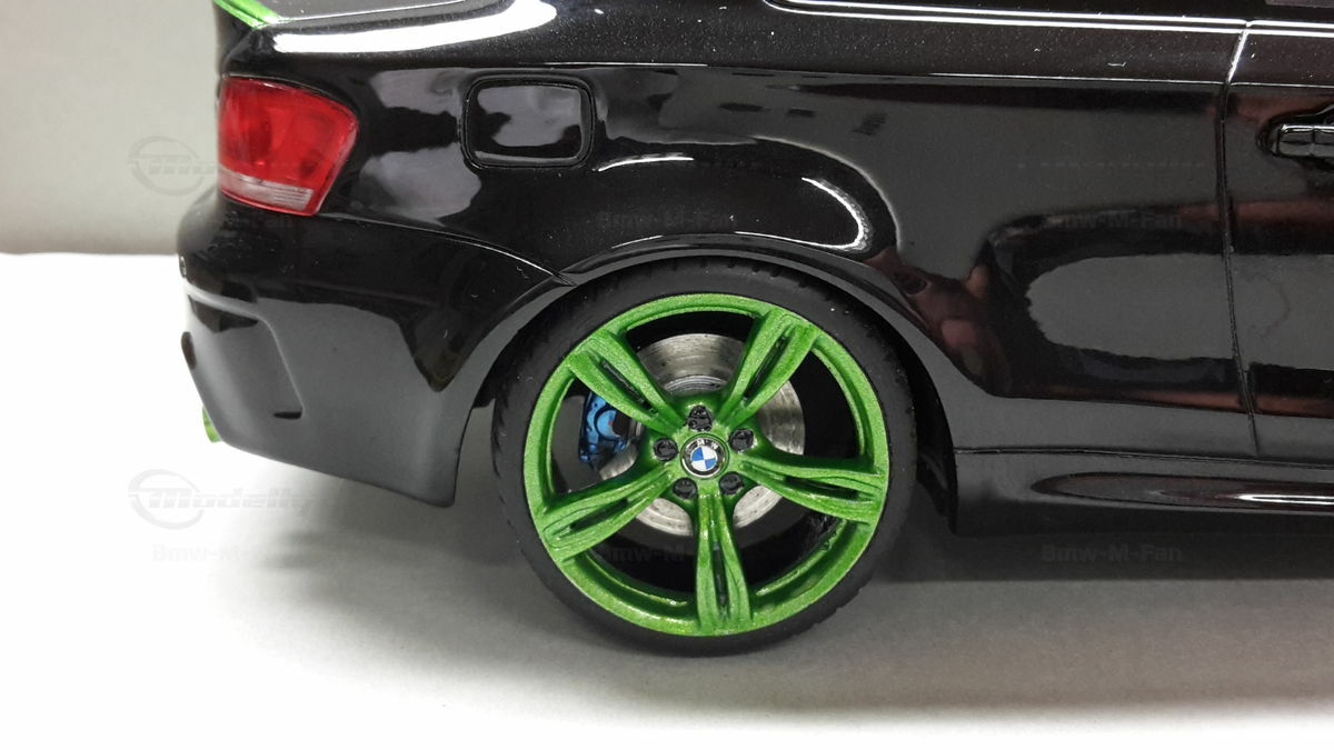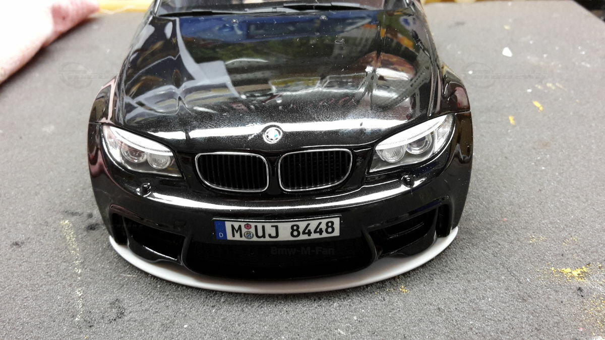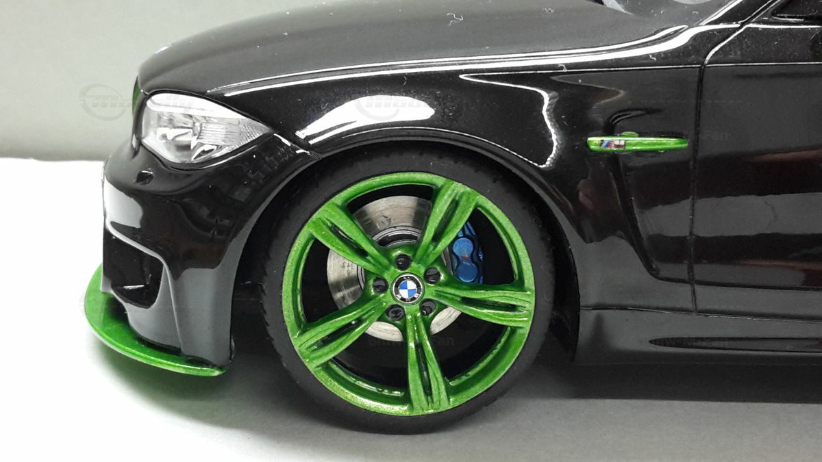 The model car shown here is a 1/18 scale replica of a BMW E82 1M Coupe, known as "Java Spirit". This miniature was manufactured by GT Spirit and is made of resin. It’s important to note that this is a modified model that doesn't represent the original product of the manufacturer GT Spirit. Collectors from around the world, like the Modelly member "Bmw-M-Fan", appreciate this detailed modification that caters to specific individual preferences.