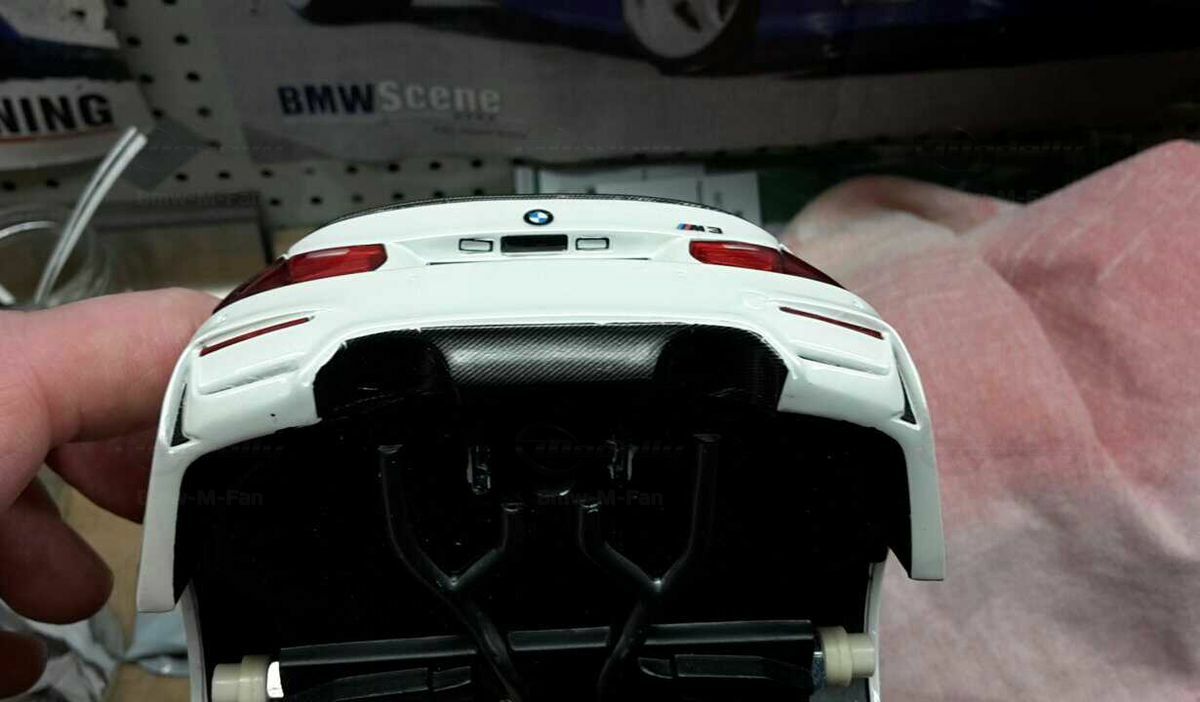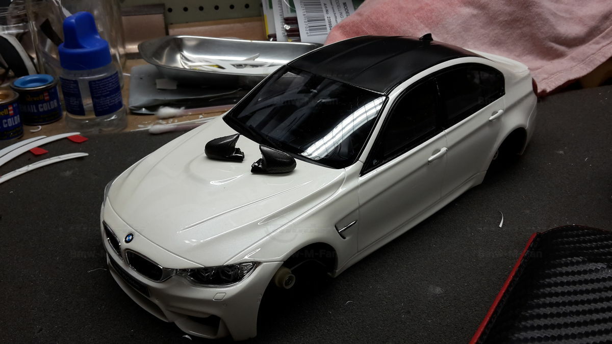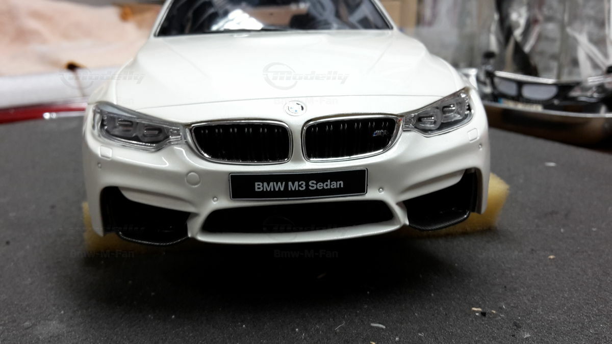The shown collector's piece is based on the high‑performance sedan BMW M3 F80. This series belongs to the F80 generation and was produced from 2014–2018. The production car is based on the 3 Series F30 and was developed by BMW M GmbH, with major technical decisions under the direction of Albert Biermann. The 3er base styling came from the design team around Adrian van Hooydonk, while the exterior development of the F30 was handled by Christopher Weil. The direct predecessor of the BMW M3 F80 was the BMW M3 E90/E92/E93 with a naturally aspirated V8. With the generation change BMW M went back to a turbocharged inline‑six and put more emphasis on lightweight construction with carbon‑fiber‑reinforced parts.