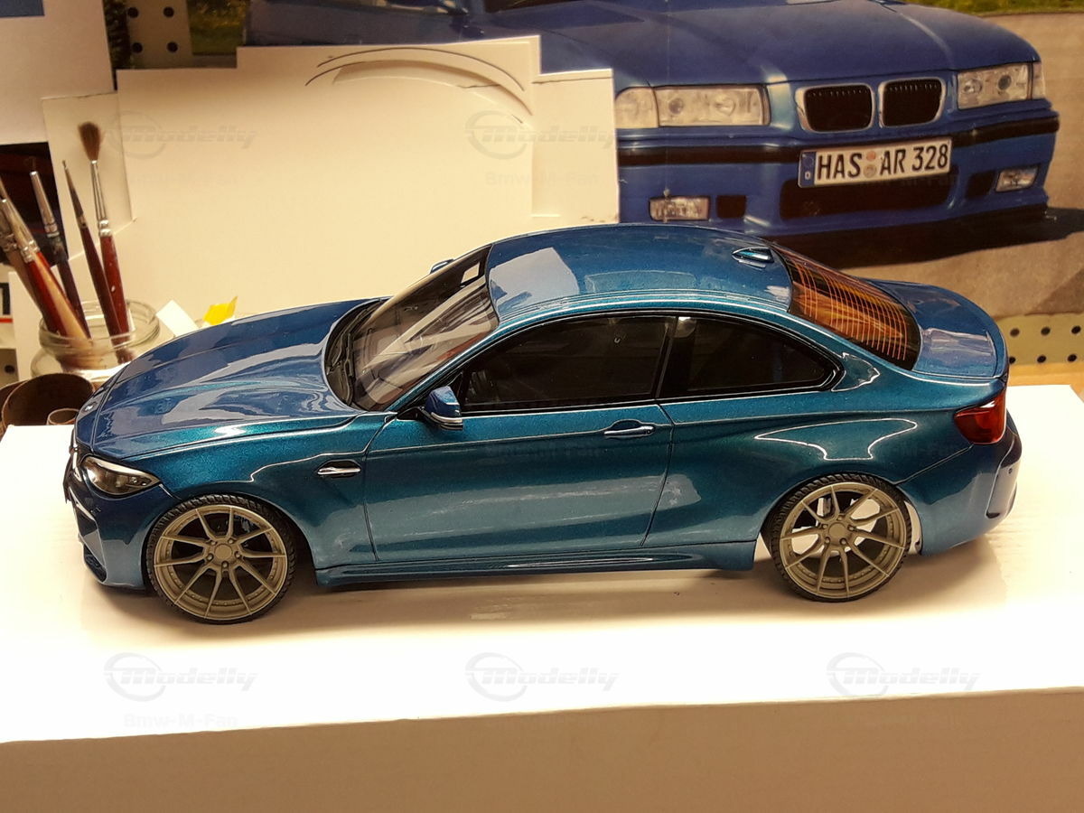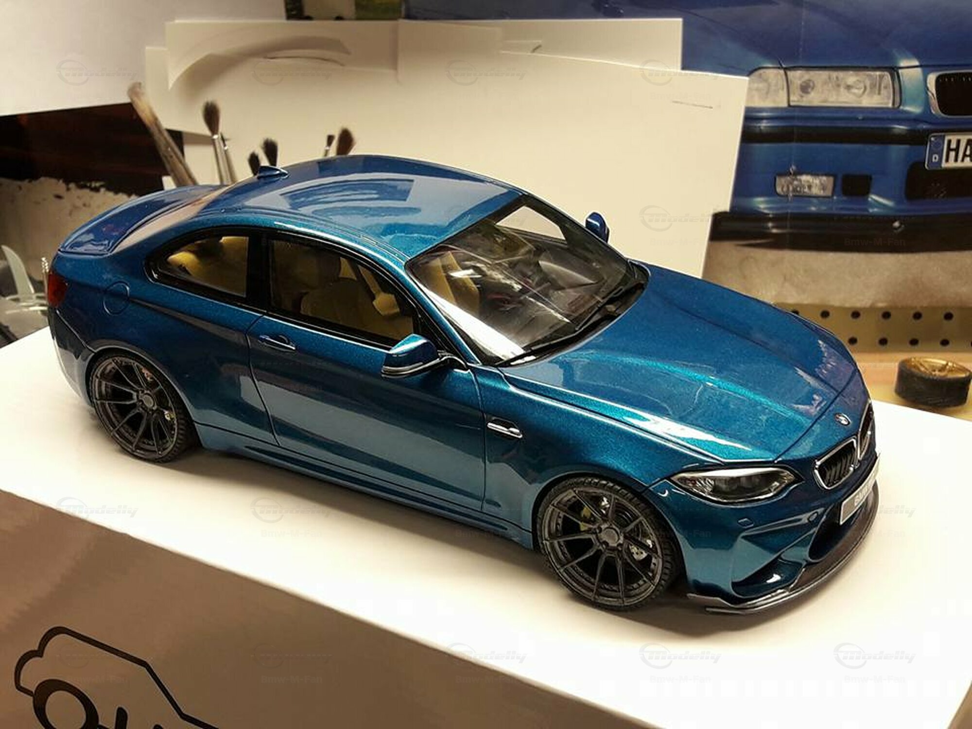 The model shown here in 1/18 scale was originally crafted by GT Spirit and is made of high-quality resin. It depicts a modified version of the BMW F87 M2 and does not represent the product originally produced by GT Spirit. The handcrafted detail allows for an exact replica of the original, including the crisp lines and distinctive proportions. This model is part of the collection of Modelly member "Bmw-M-Fan".