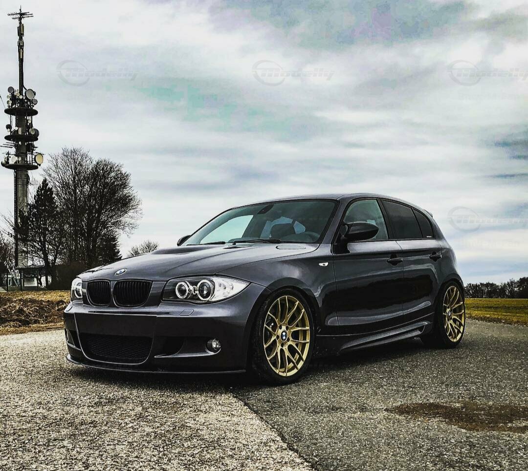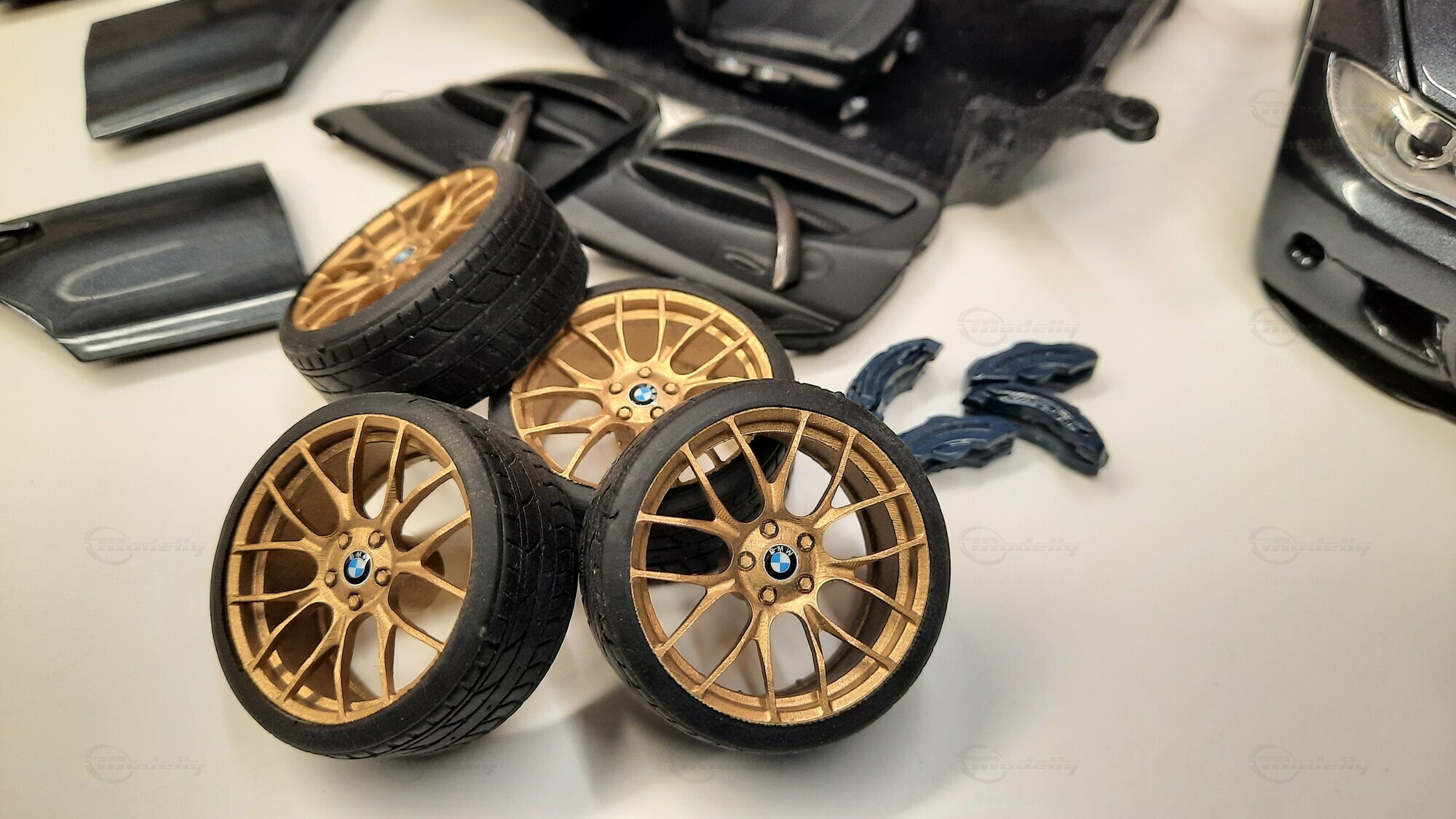 The model shown here is a 1/18 scale replica of the BMW 1 Series produced by Kyosho. This model is crafted from diecast material showcasing precise engineering and attention to detail. The standout feature is the distinctive gold BBS wheels, enhancing the sporty character of the vehicle, while the intricate details of the wheels and brakes reflect the high-quality original design. Note for collectors: This model is modified and does not represent the original production by Kyosho. It's essential to bear this in mind to avoid any confusion.