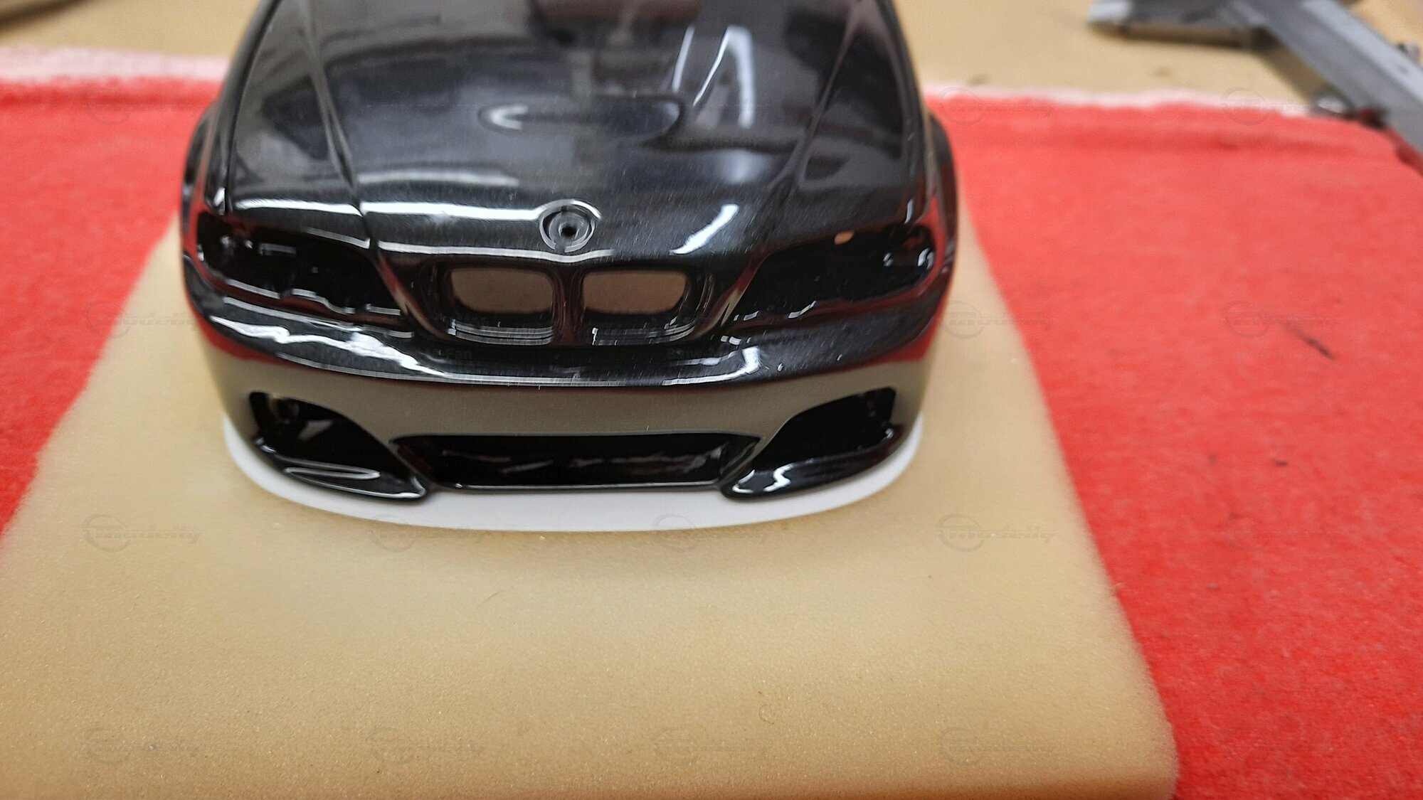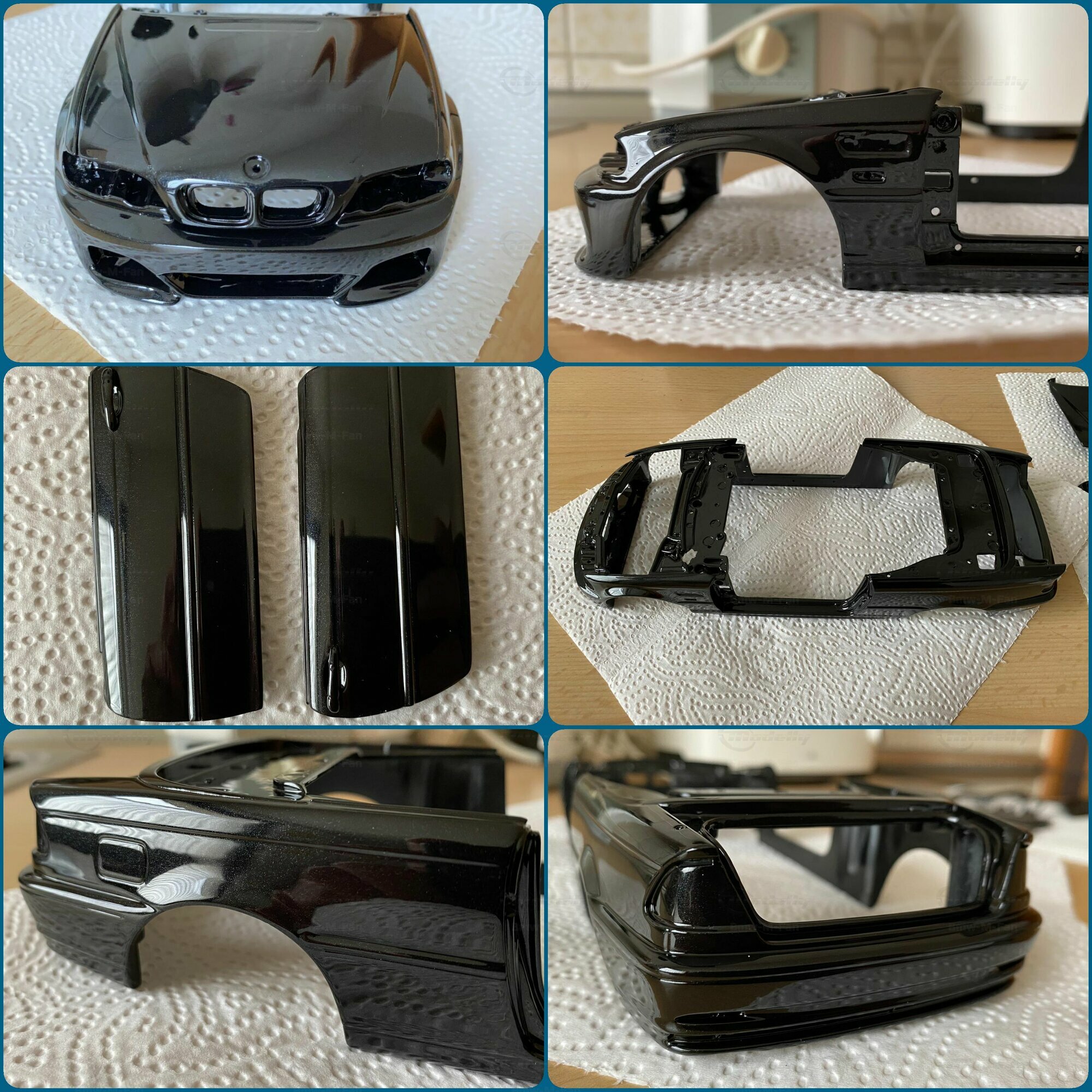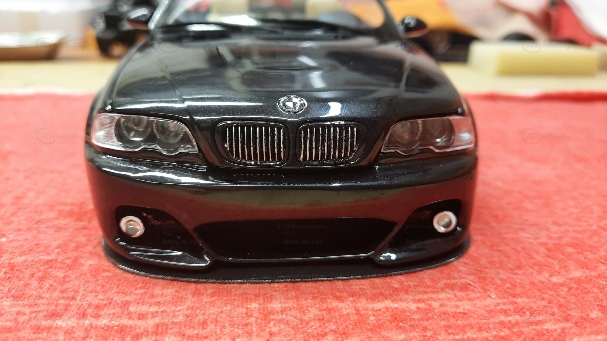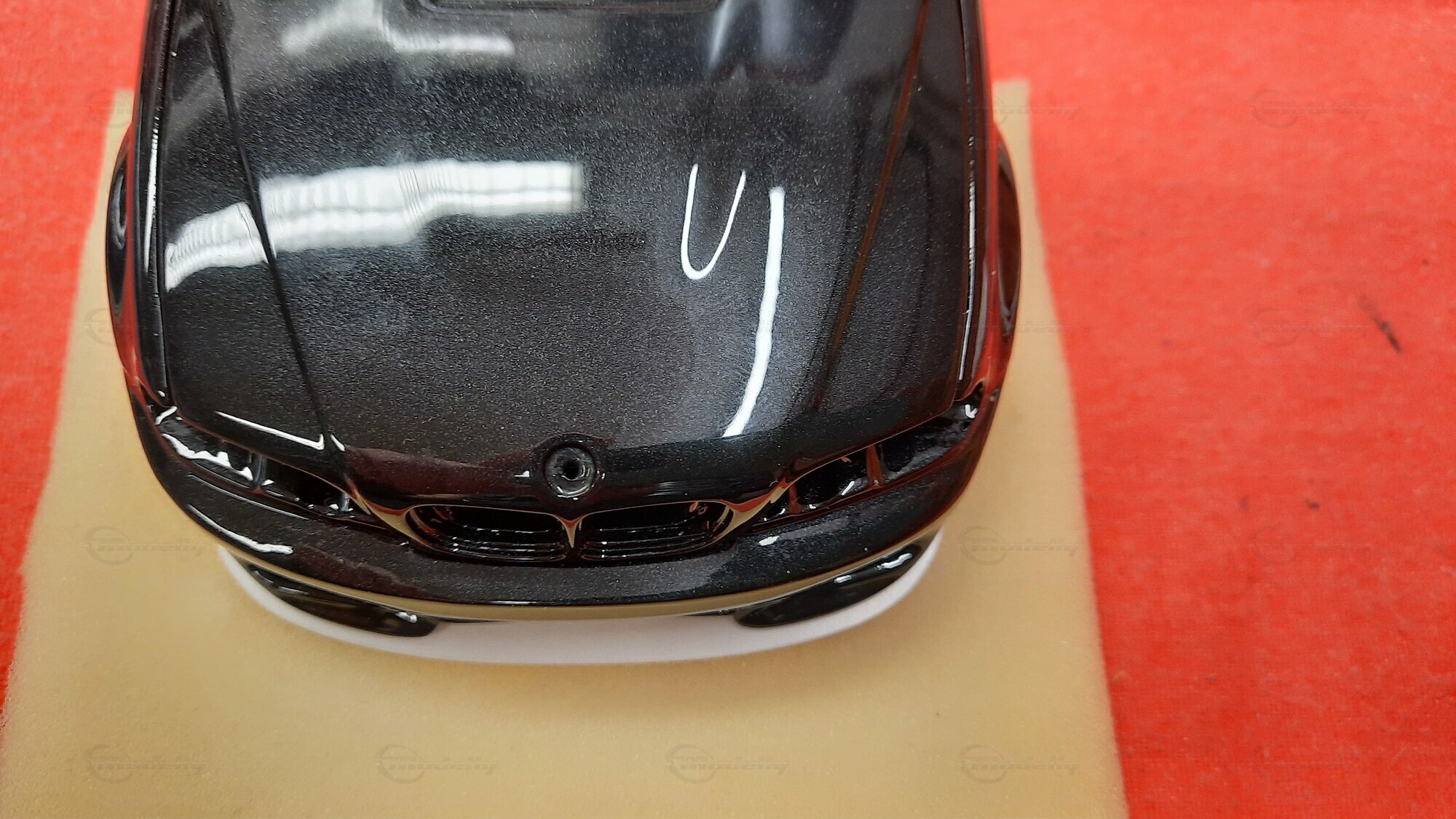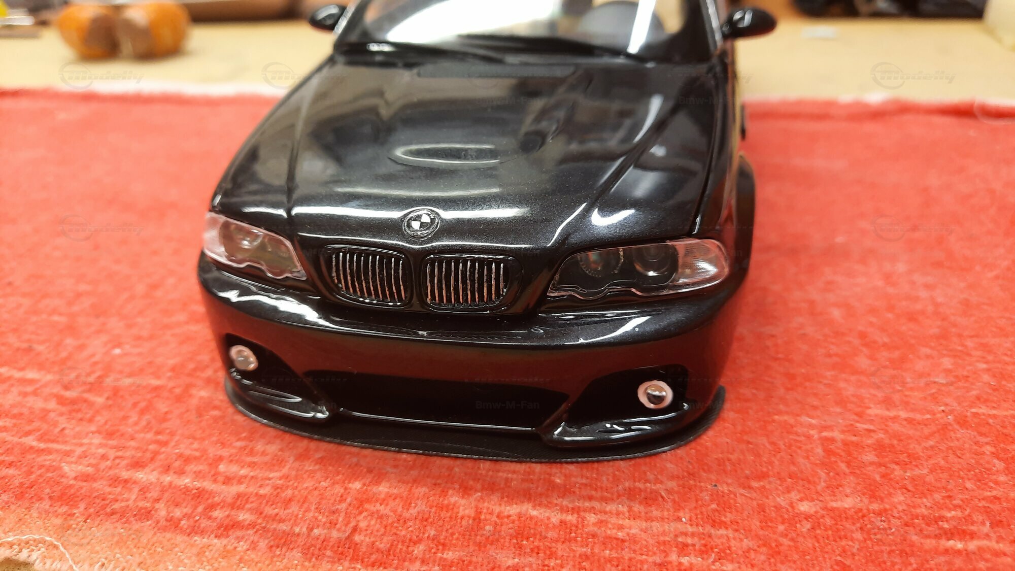 Modelly user "Bmw-M-Fan" proudly showcases this modified model, which stands out for its high level of detail and many true-to-life features. The beige interior stands out and provides a contrast to the black exterior. Even the smallest details like the functional doors, hood latch, and realistically replicated light fixtures are faithfully reproduced. An interesting detail is the wheels, depicted as detachable, which is a rarity in the model world. Overall, this model car is a highlight for any collector and impressively showcases the brilliance of the Kyosho workshop, without neglecting the many individual modifications and special features.