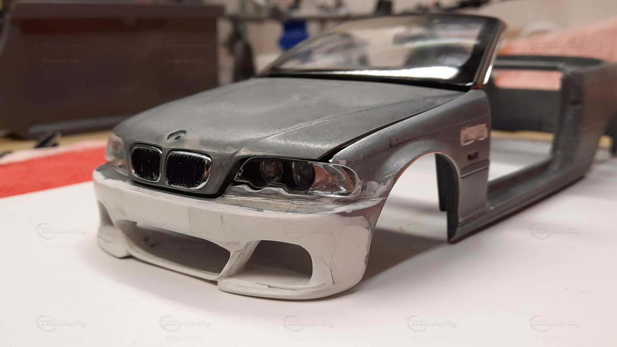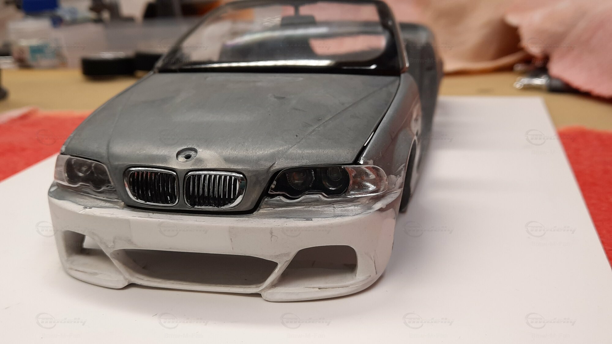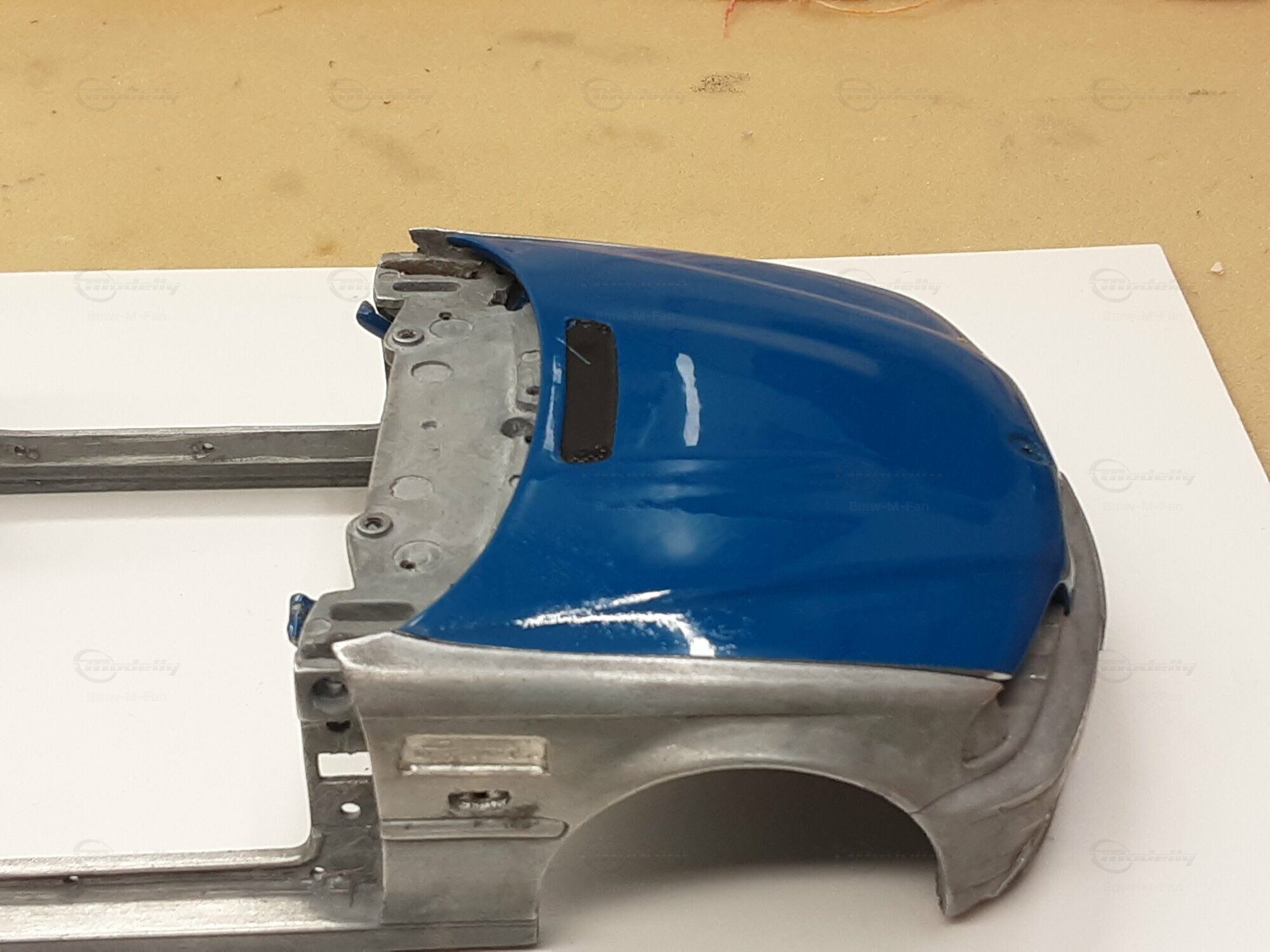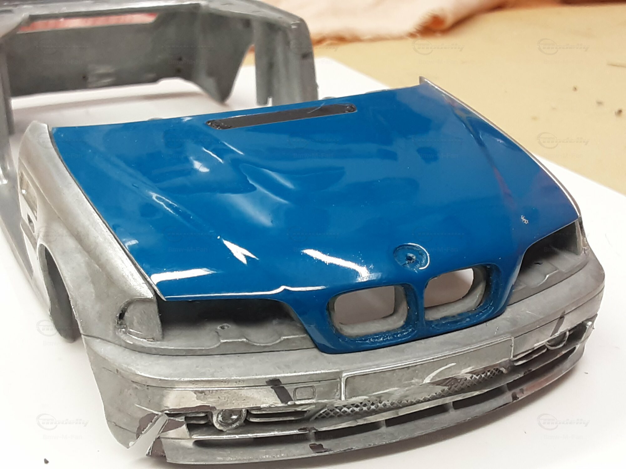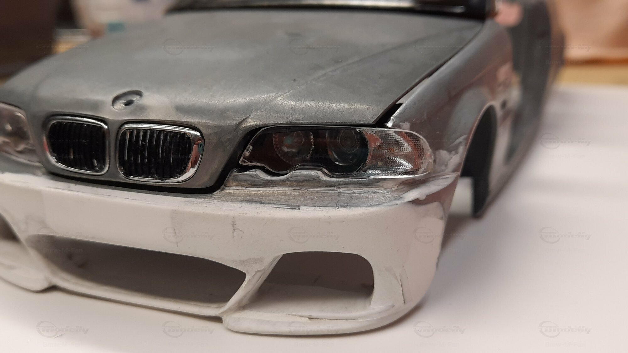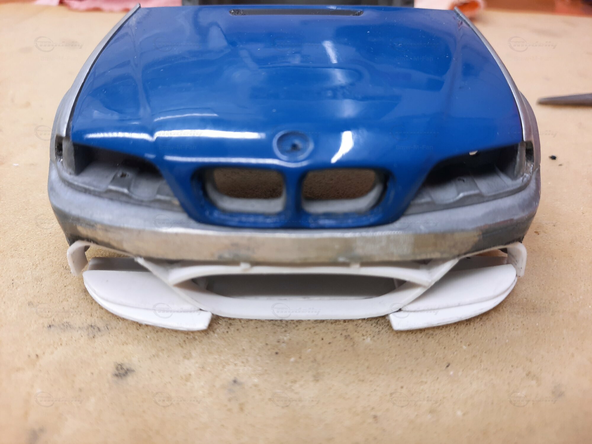 Modelly user "Bmw-M-Fan" proudly showcases this modified model, which stands out for its high level of detail and many true-to-life features. The beige interior stands out and provides a contrast to the black exterior. Even the smallest details like the functional doors, hood latch, and realistically replicated light fixtures are faithfully reproduced. An interesting detail is the wheels, depicted as detachable, which is a rarity in the model world. Overall, this model car is a highlight for any collector and impressively showcases the brilliance of the Kyosho workshop, without neglecting the many individual modifications and special features.