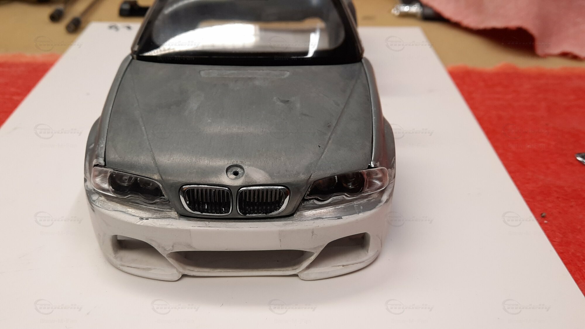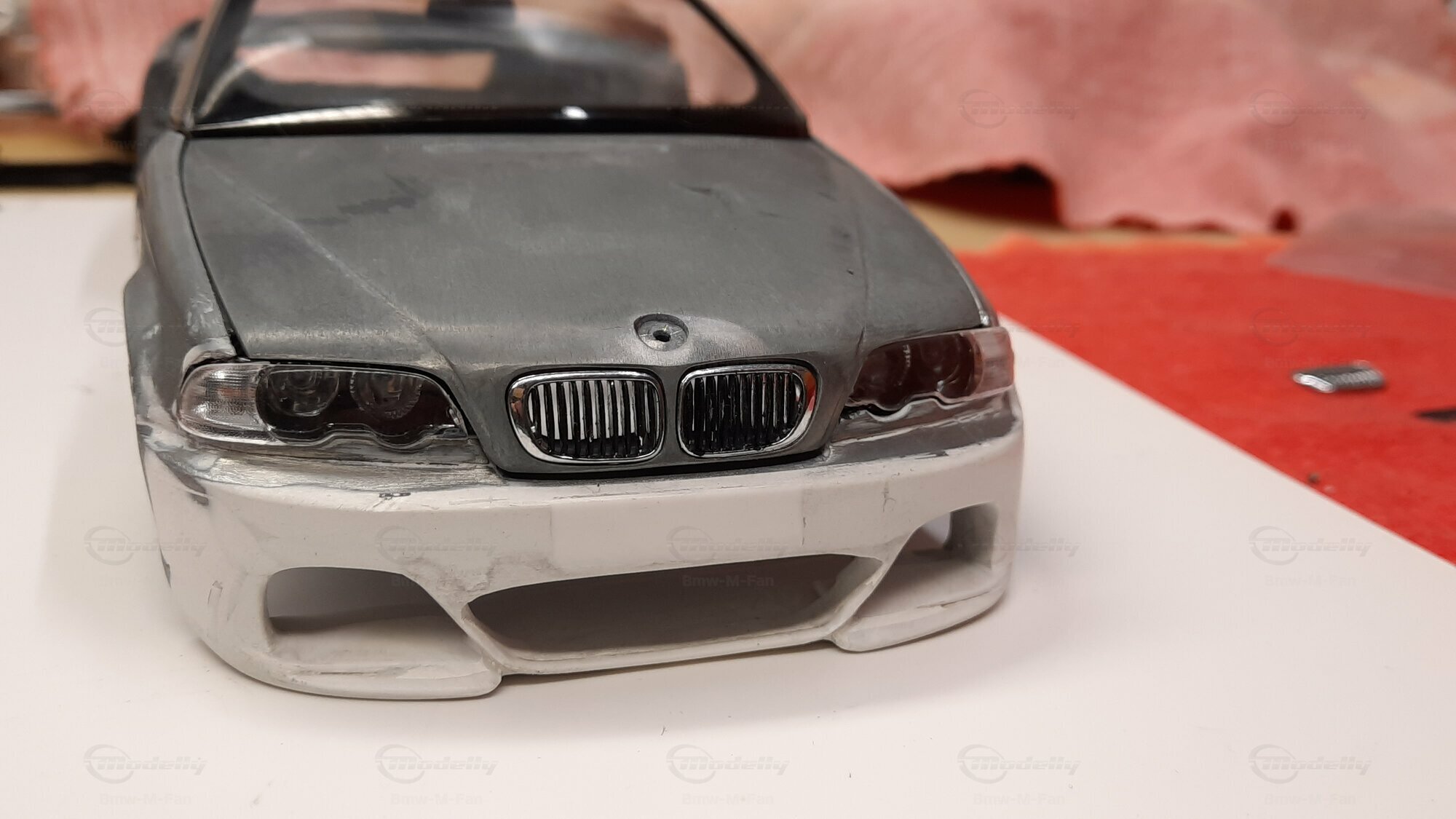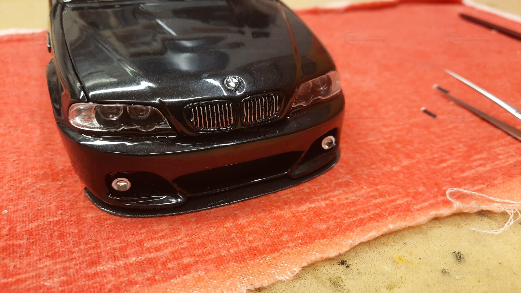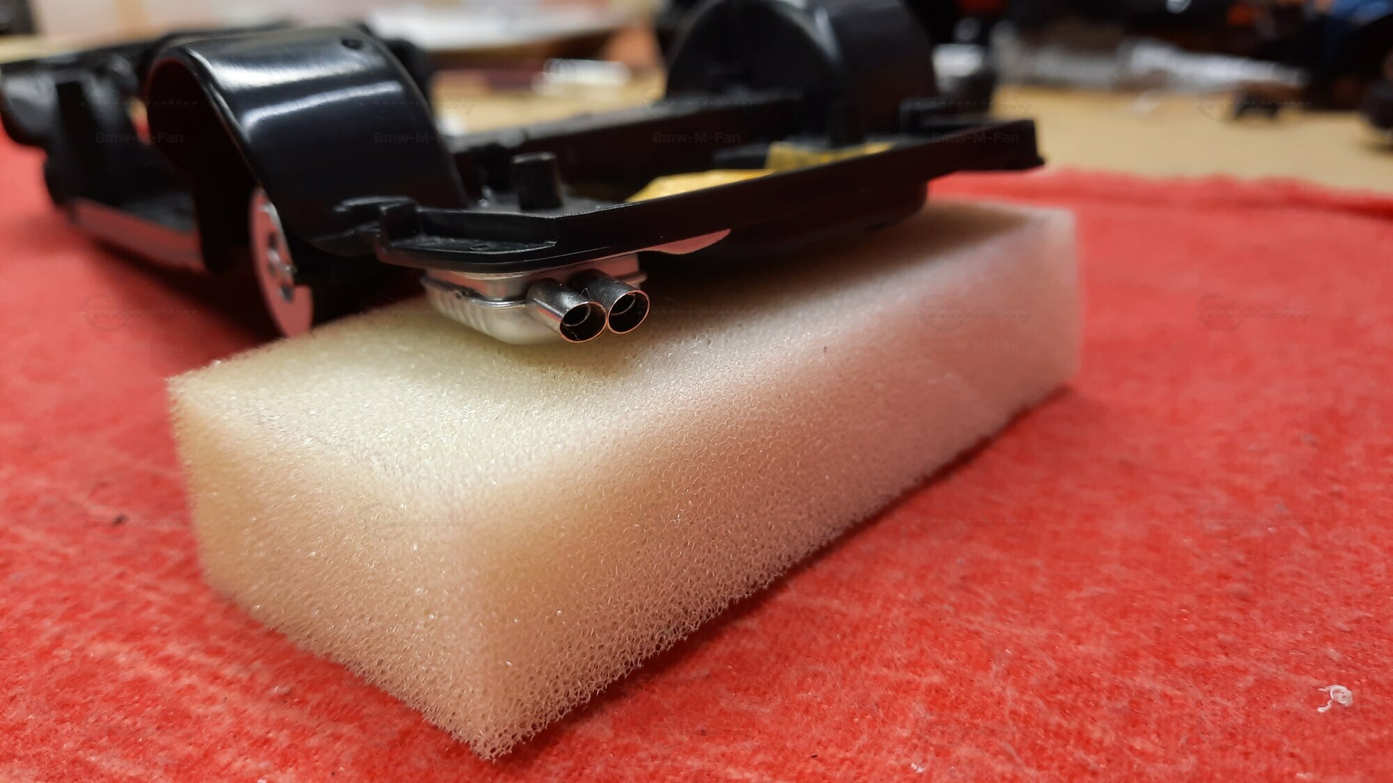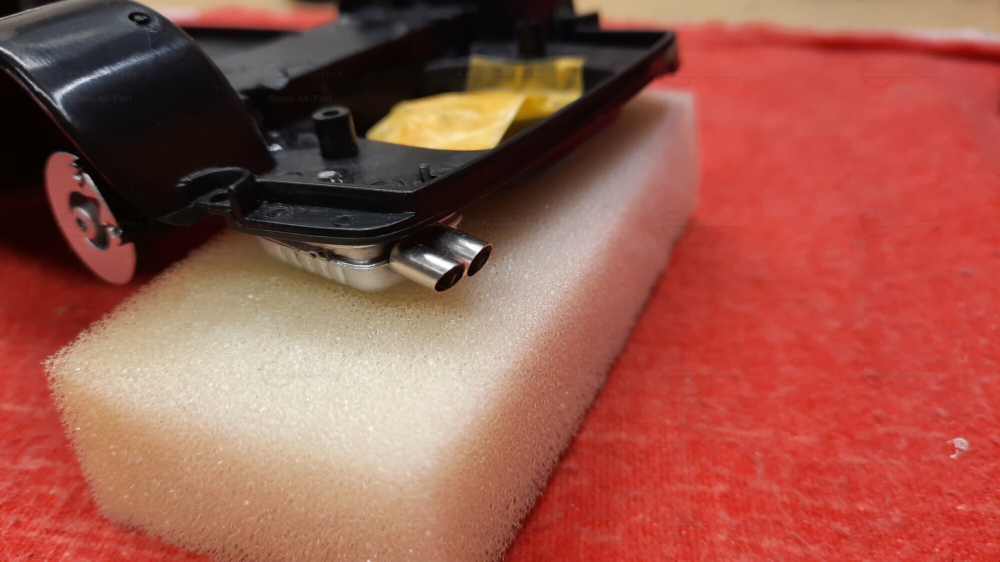 Modelly user "Bmw-M-Fan" proudly showcases this modified model, which stands out for its high level of detail and many true-to-life features. The beige interior stands out and provides a contrast to the black exterior. Even the smallest details like the functional doors, hood latch, and realistically replicated light fixtures are faithfully reproduced. An interesting detail is the wheels, depicted as detachable, which is a rarity in the model world. Overall, this model car is a highlight for any collector and impressively showcases the brilliance of the Kyosho workshop, without neglecting the many individual modifications and special features.