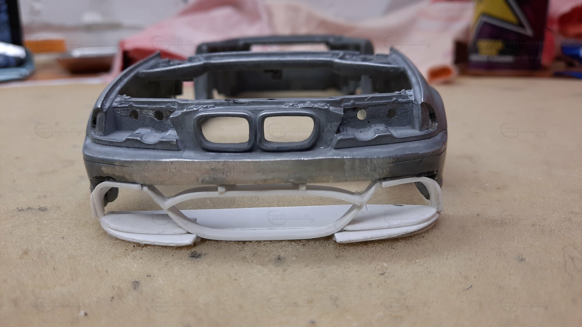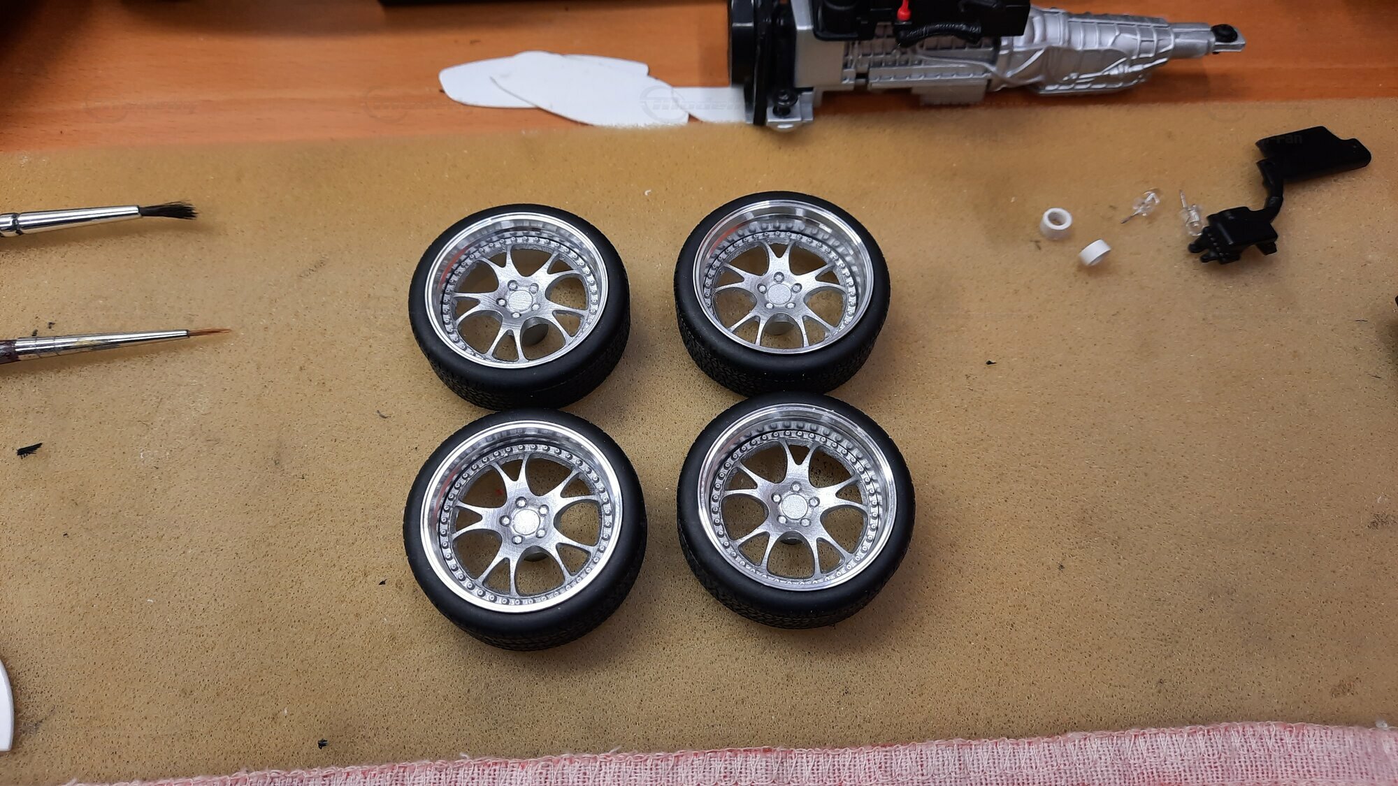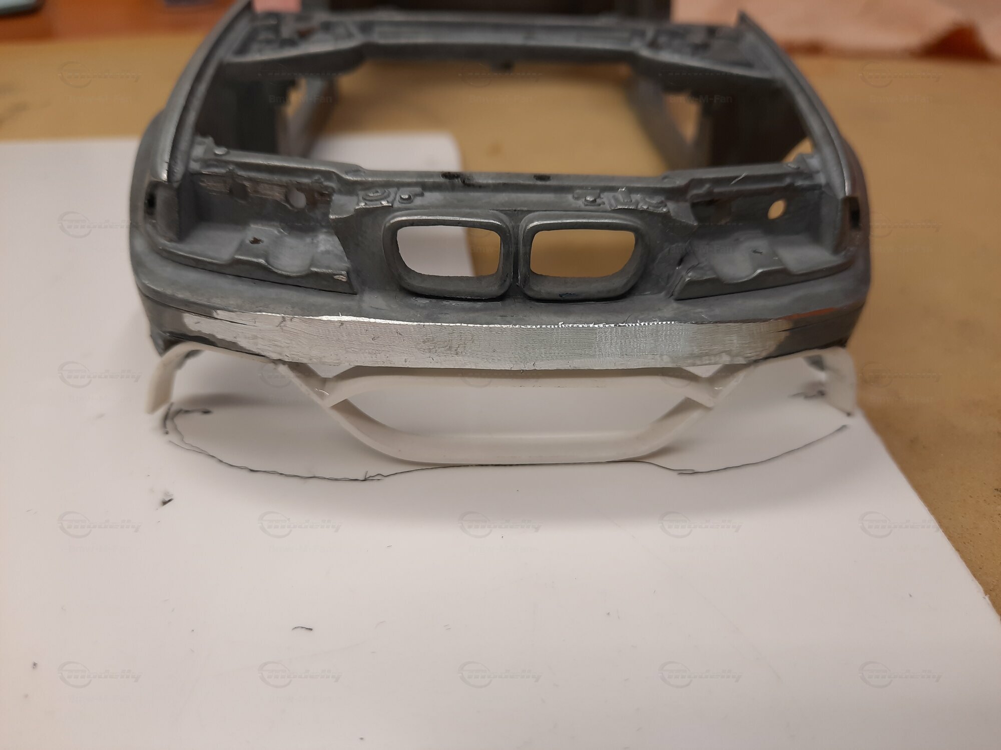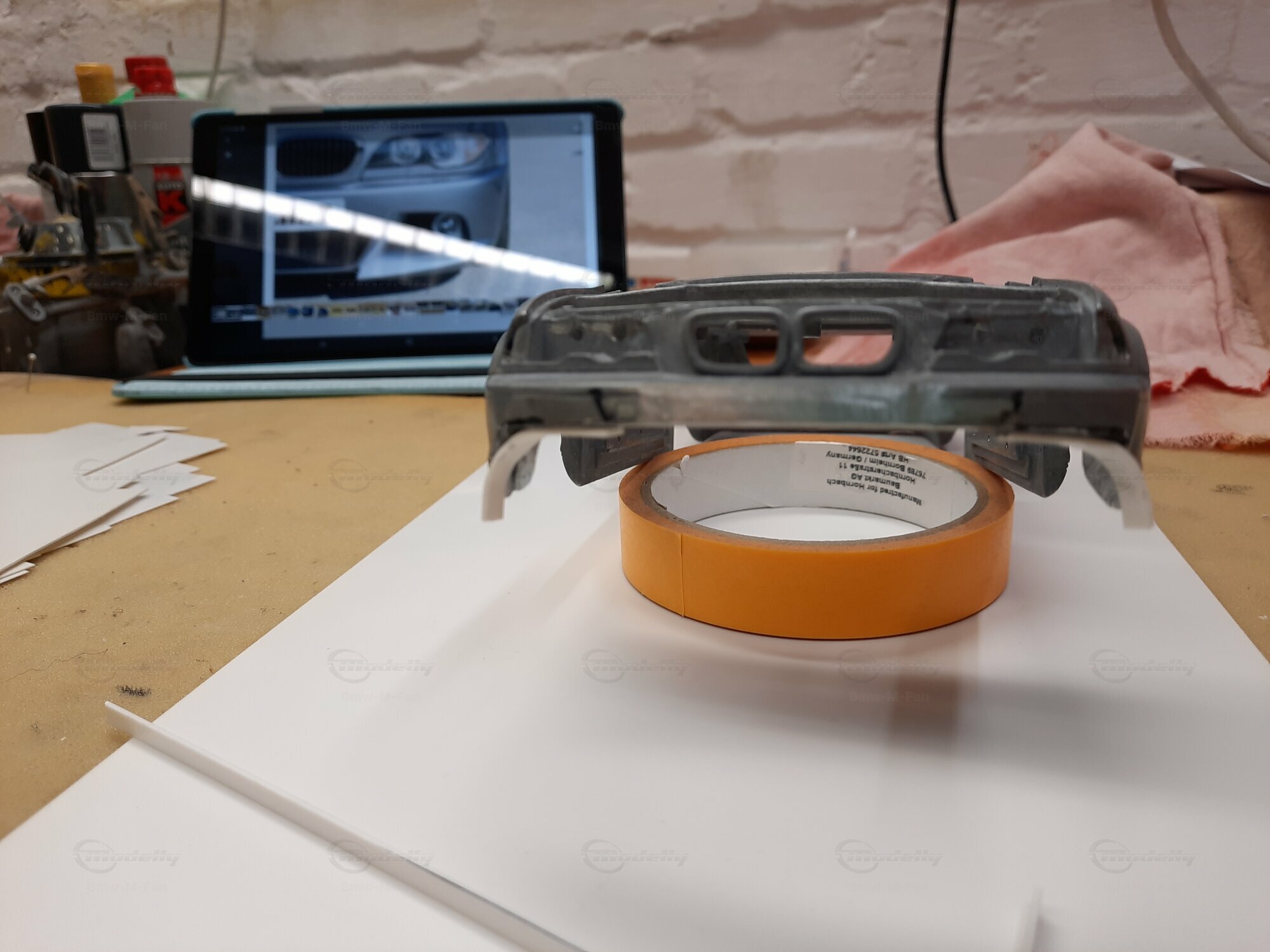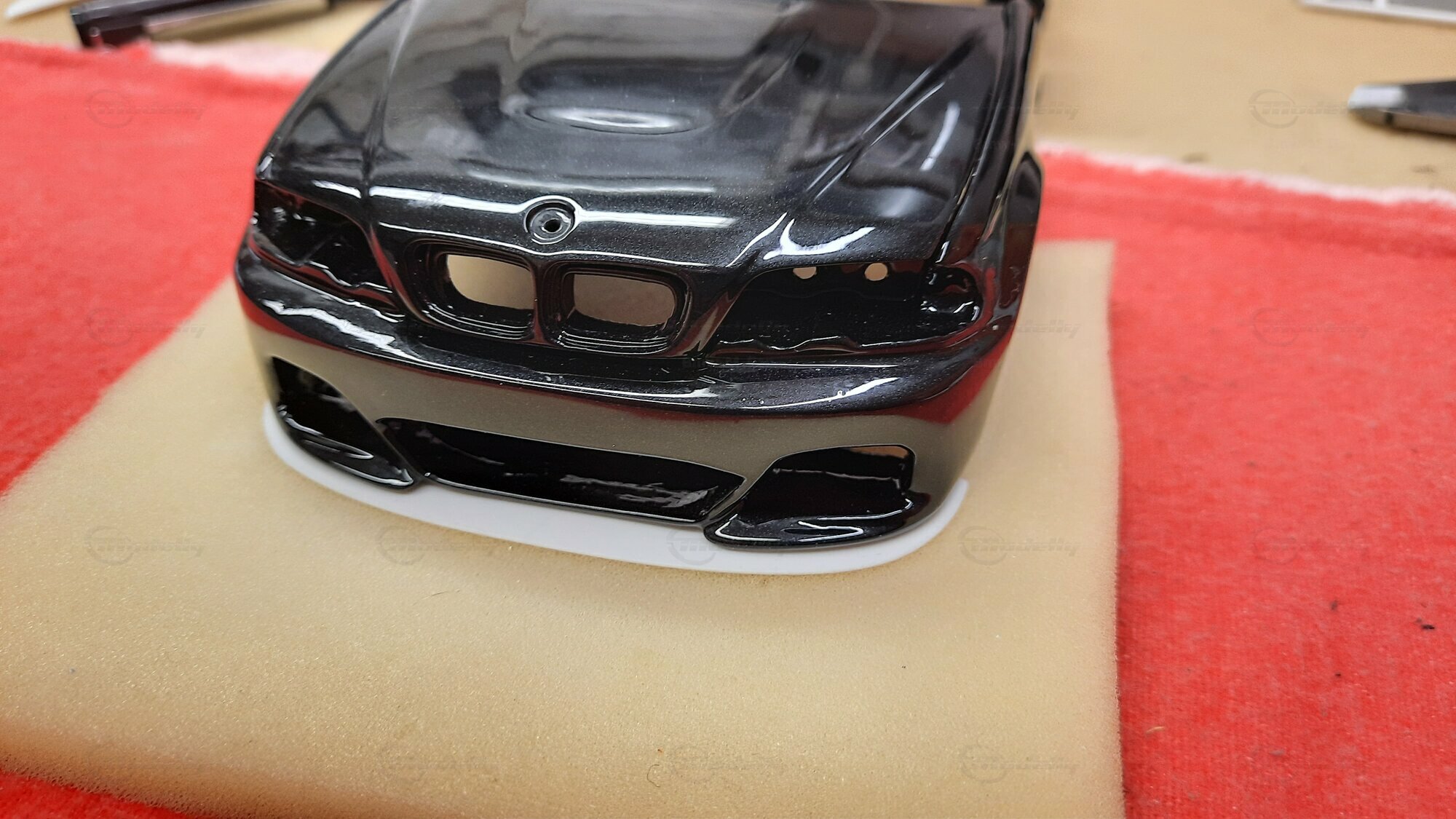 Modelly user "Bmw-M-Fan" proudly showcases this modified model, which stands out for its high level of detail and many true-to-life features. The beige interior stands out and provides a contrast to the black exterior. Even the smallest details like the functional doors, hood latch, and realistically replicated light fixtures are faithfully reproduced. An interesting detail is the wheels, depicted as detachable, which is a rarity in the model world. Overall, this model car is a highlight for any collector and impressively showcases the brilliance of the Kyosho workshop, without neglecting the many individual modifications and special features.