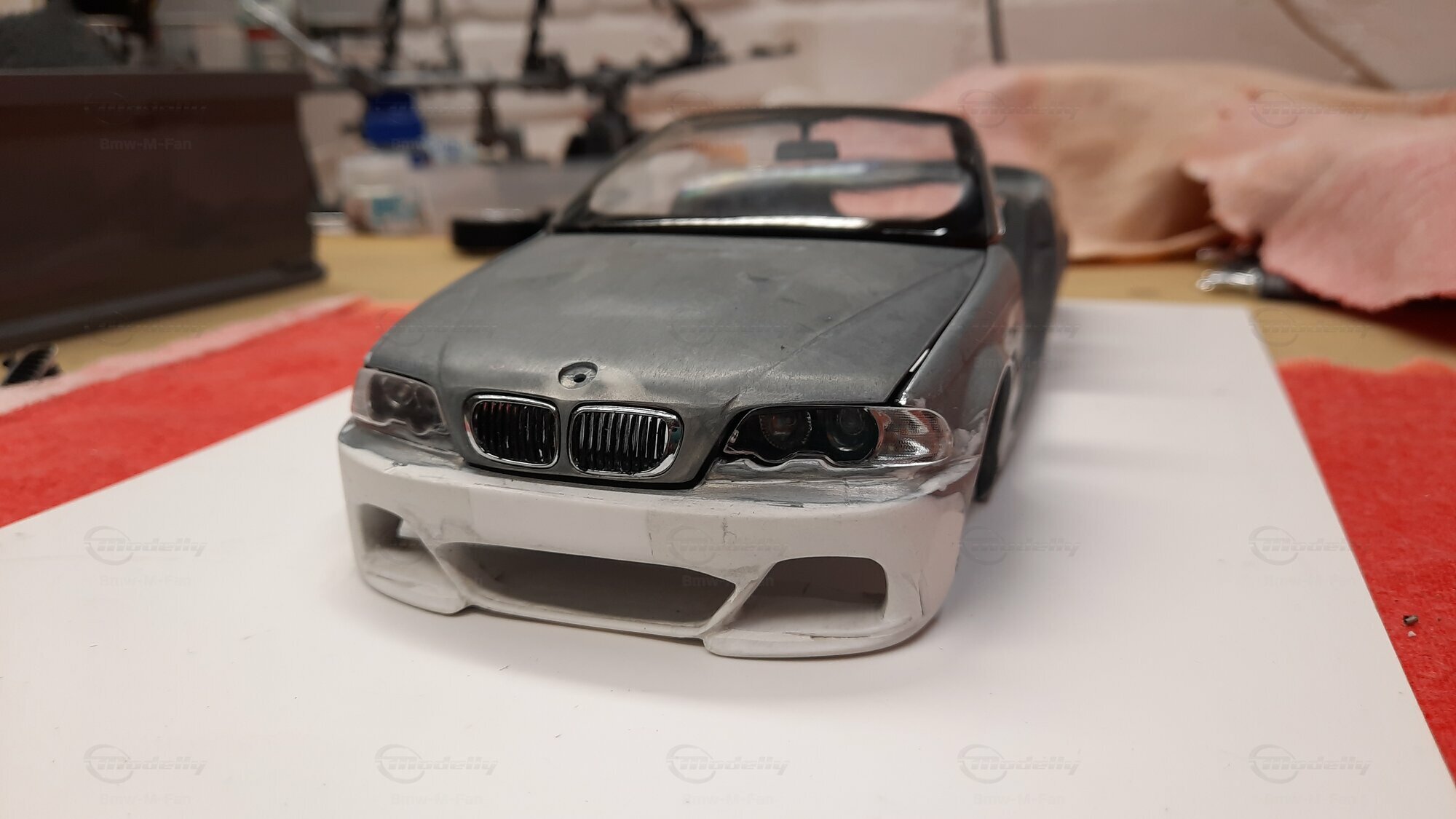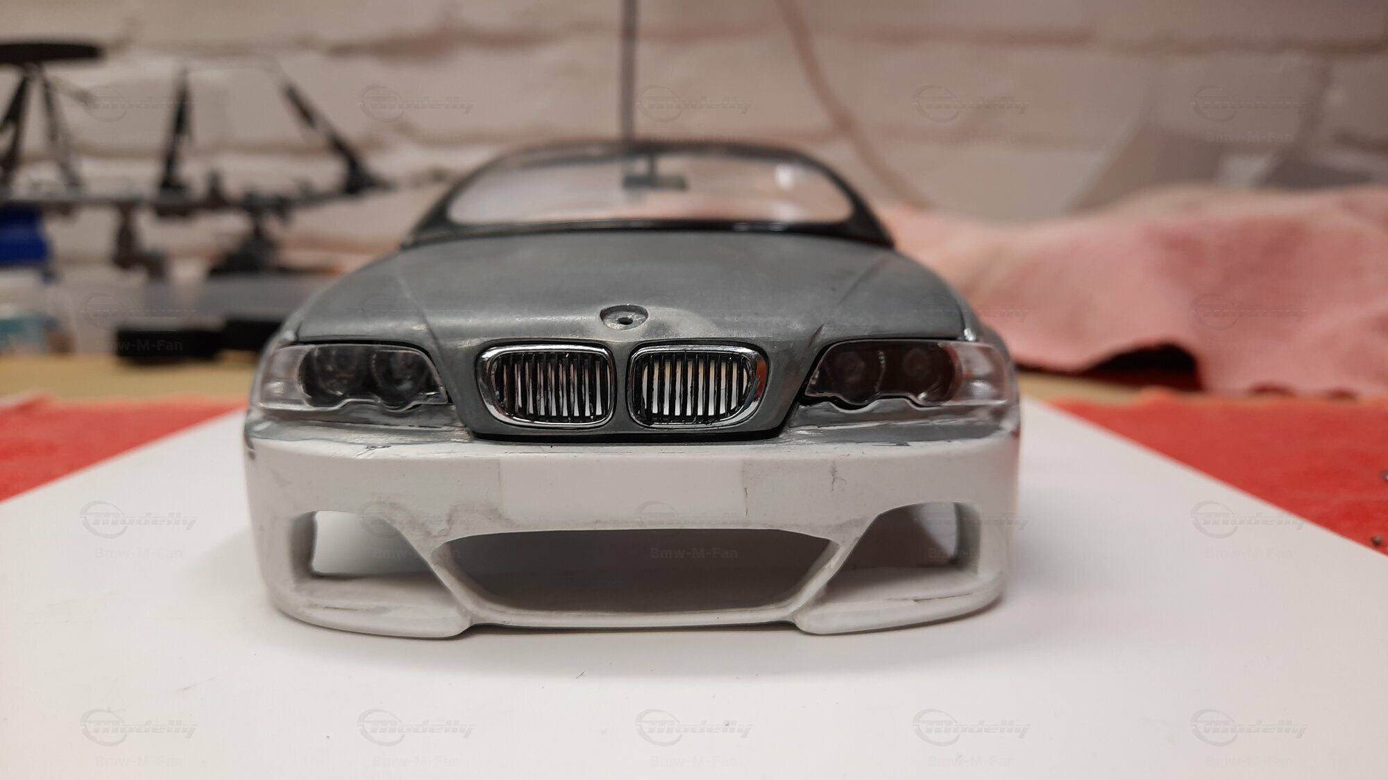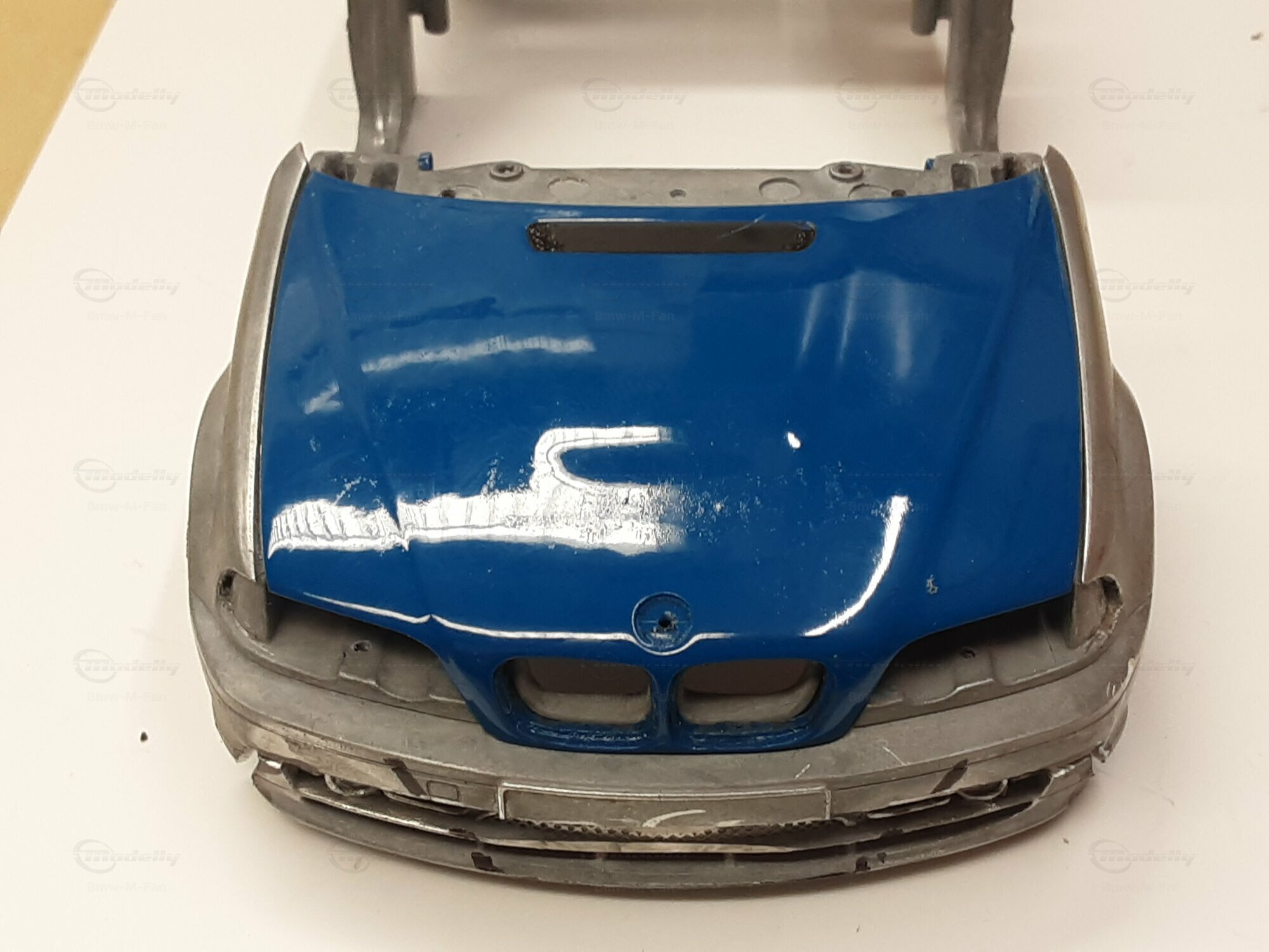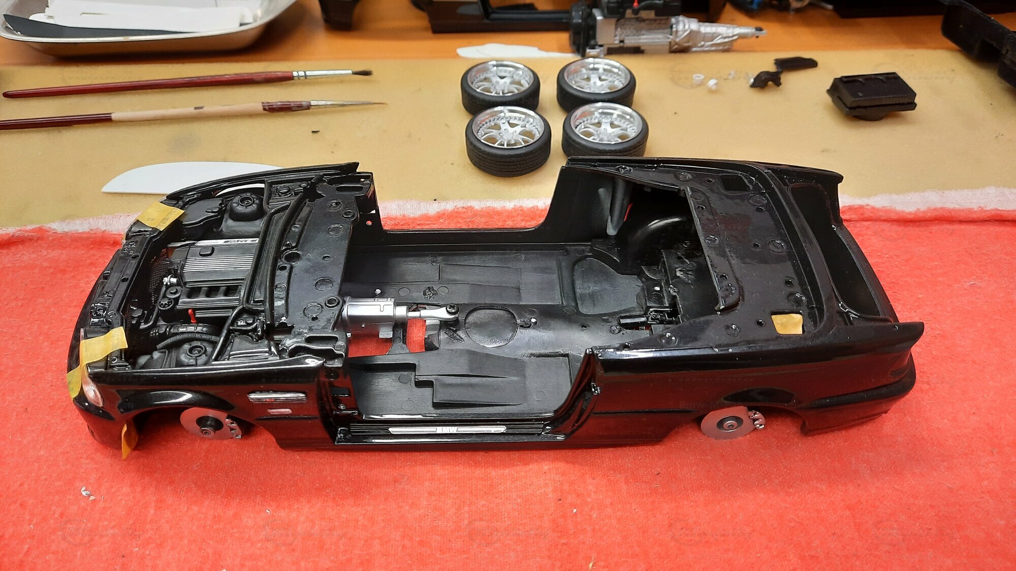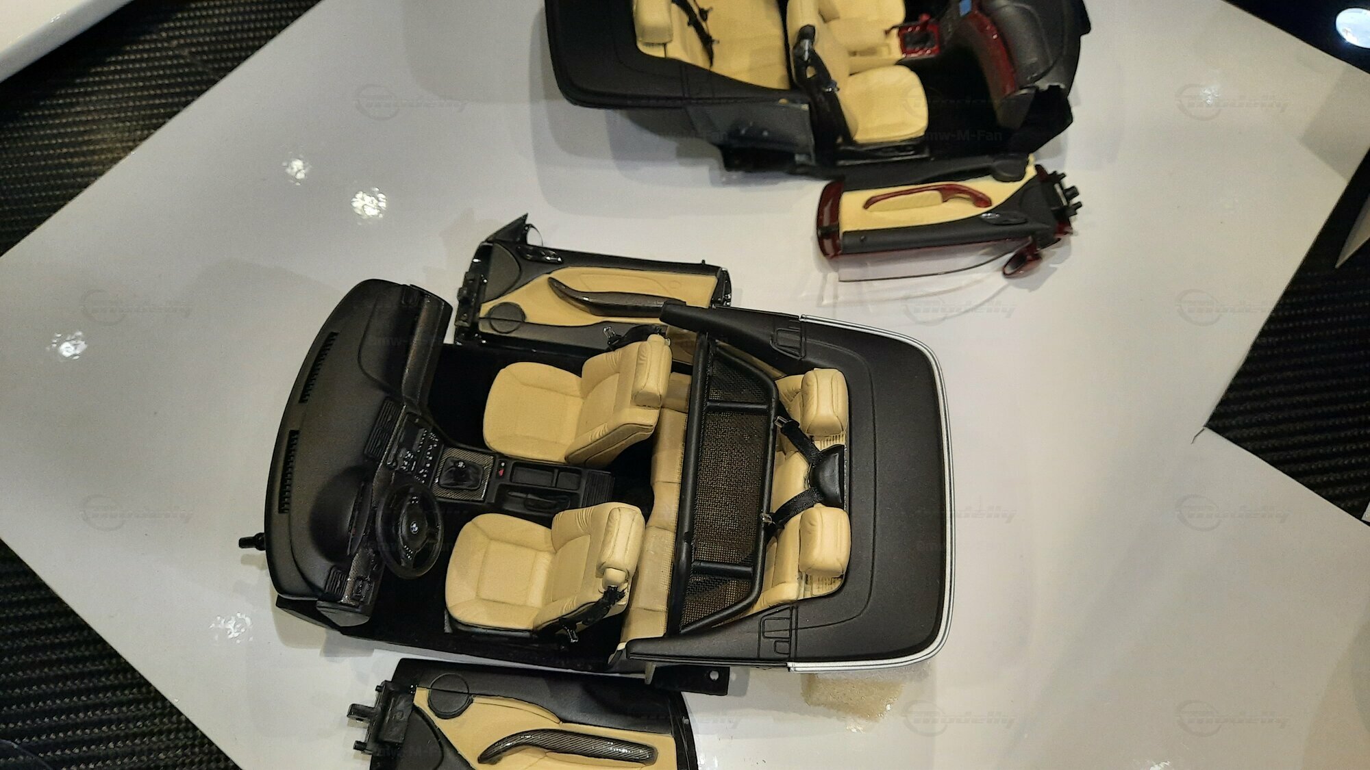 Modelly user "Bmw-M-Fan" proudly showcases this modified model, which stands out for its high level of detail and many true-to-life features. The beige interior stands out and provides a contrast to the black exterior. Even the smallest details like the functional doors, hood latch, and realistically replicated light fixtures are faithfully reproduced. An interesting detail is the wheels, depicted as detachable, which is a rarity in the model world. Overall, this model car is a highlight for any collector and impressively showcases the brilliance of the Kyosho workshop, without neglecting the many individual modifications and special features.