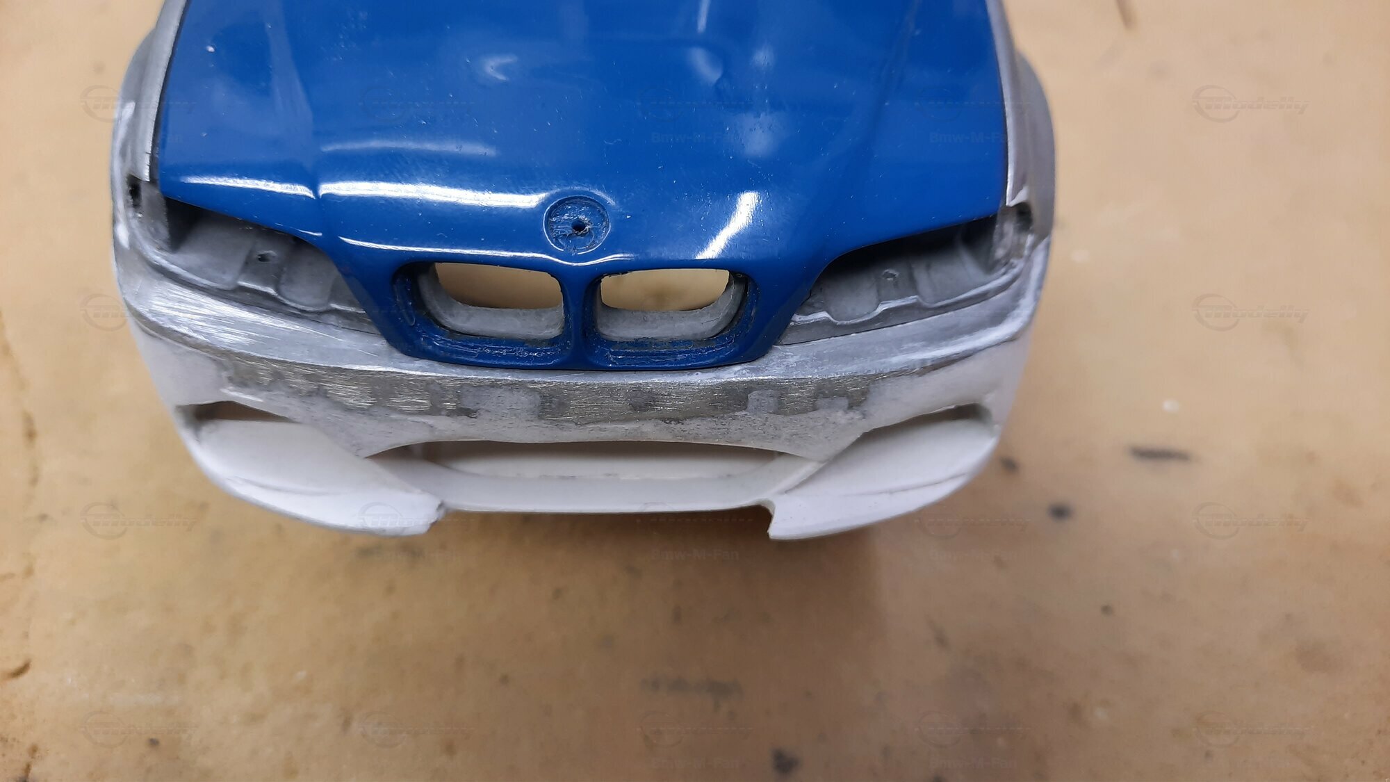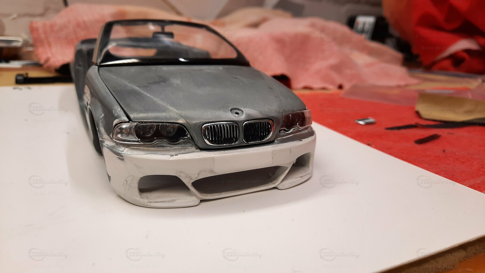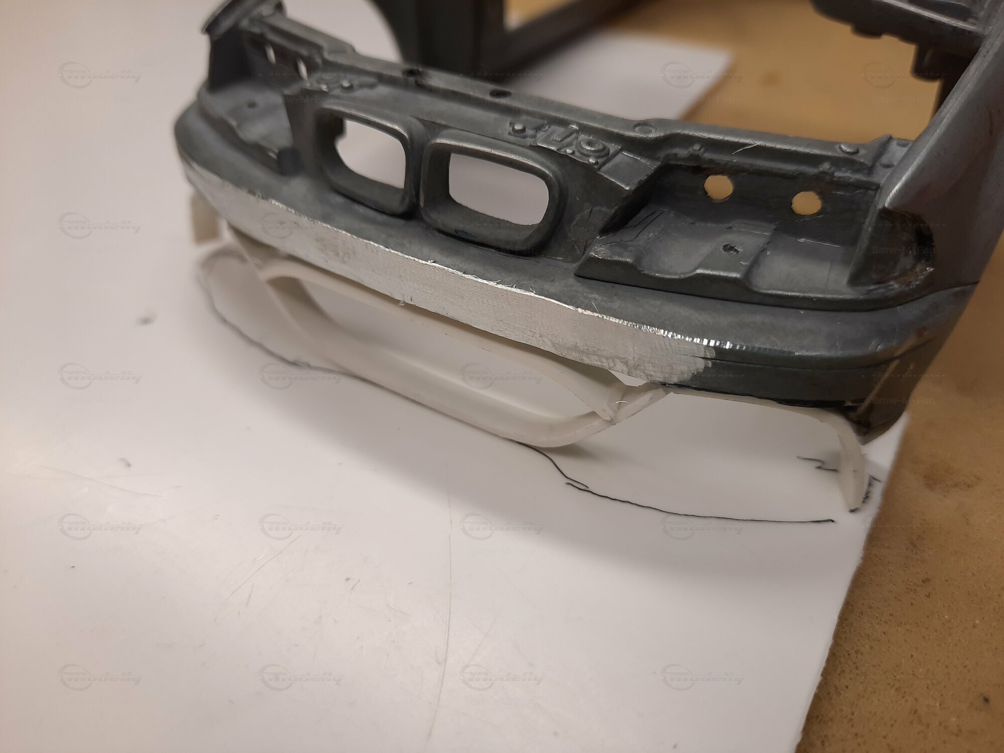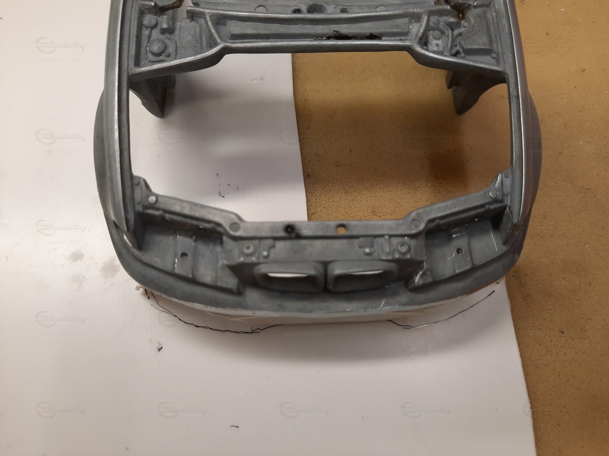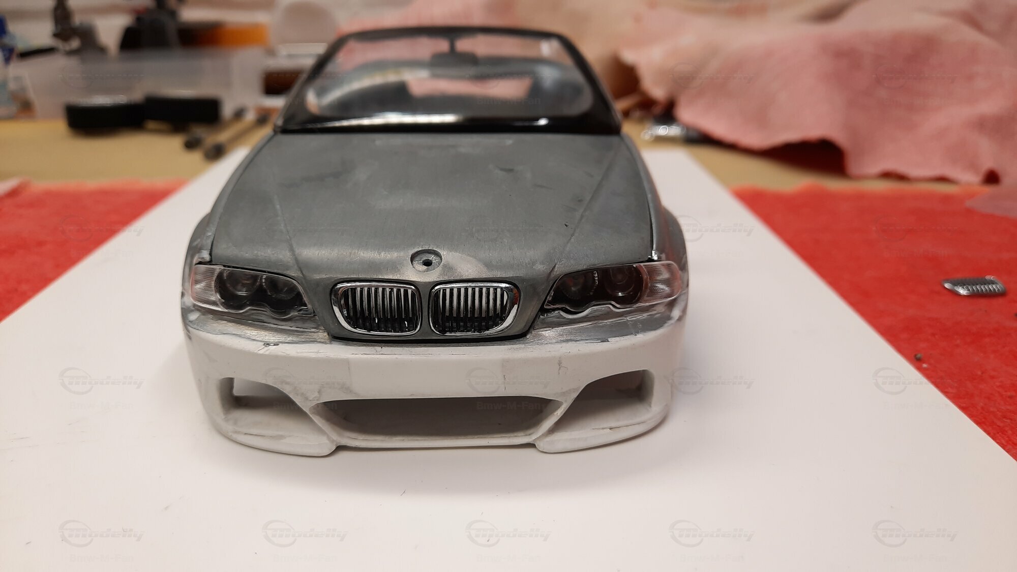 Modelly user "Bmw-M-Fan" proudly showcases this modified model, which stands out for its high level of detail and many true-to-life features. The beige interior stands out and provides a contrast to the black exterior. Even the smallest details like the functional doors, hood latch, and realistically replicated light fixtures are faithfully reproduced. An interesting detail is the wheels, depicted as detachable, which is a rarity in the model world. Overall, this model car is a highlight for any collector and impressively showcases the brilliance of the Kyosho workshop, without neglecting the many individual modifications and special features.