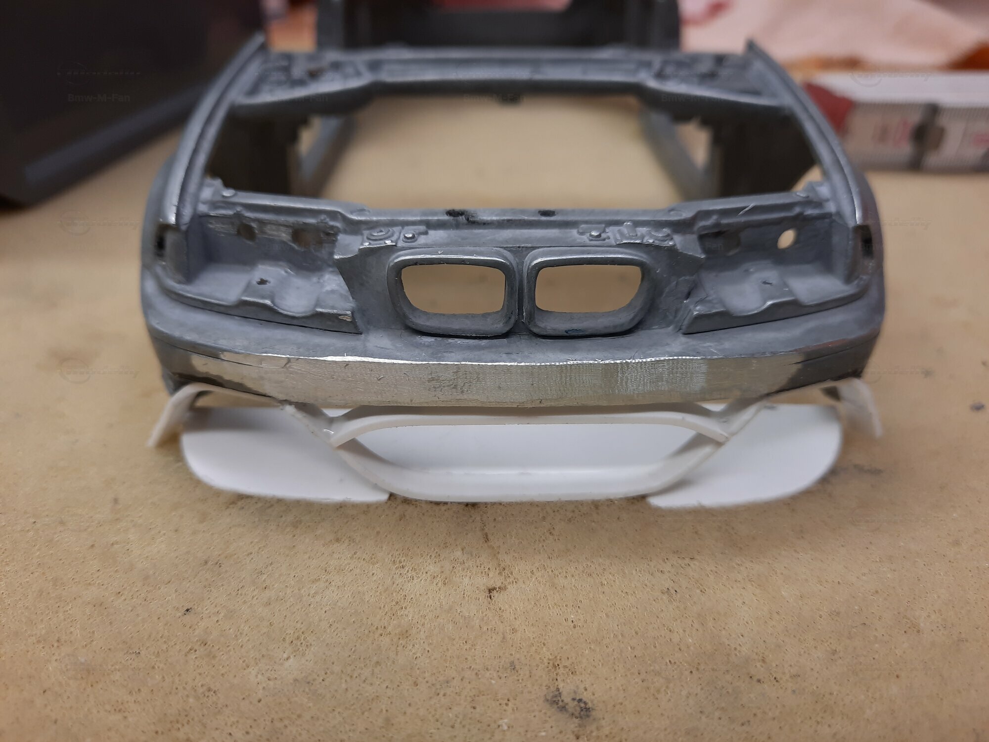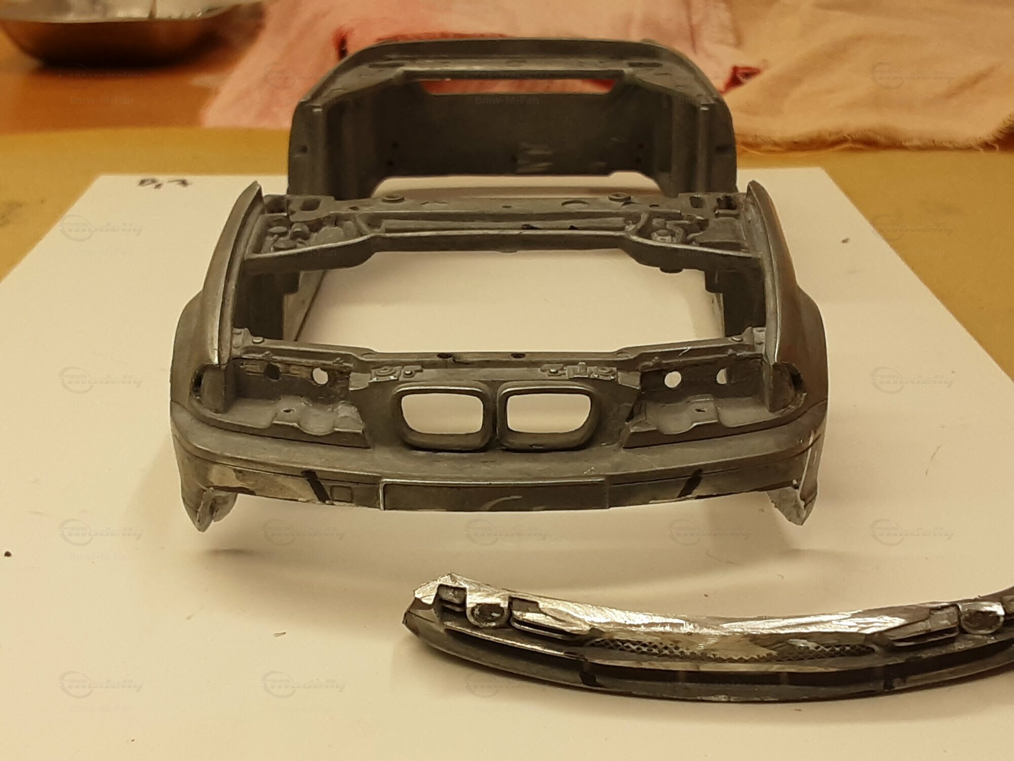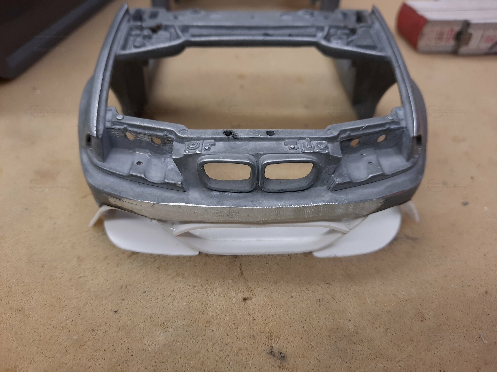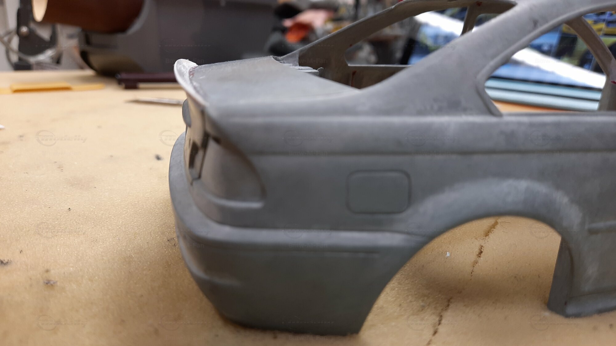 Modelly user "Bmw-M-Fan" proudly showcases this modified model, which stands out for its high level of detail and many true-to-life features. The beige interior stands out and provides a contrast to the black exterior. Even the smallest details like the functional doors, hood latch, and realistically replicated light fixtures are faithfully reproduced. An interesting detail is the wheels, depicted as detachable, which is a rarity in the model world. Overall, this model car is a highlight for any collector and impressively showcases the brilliance of the Kyosho workshop, without neglecting the many individual modifications and special features.