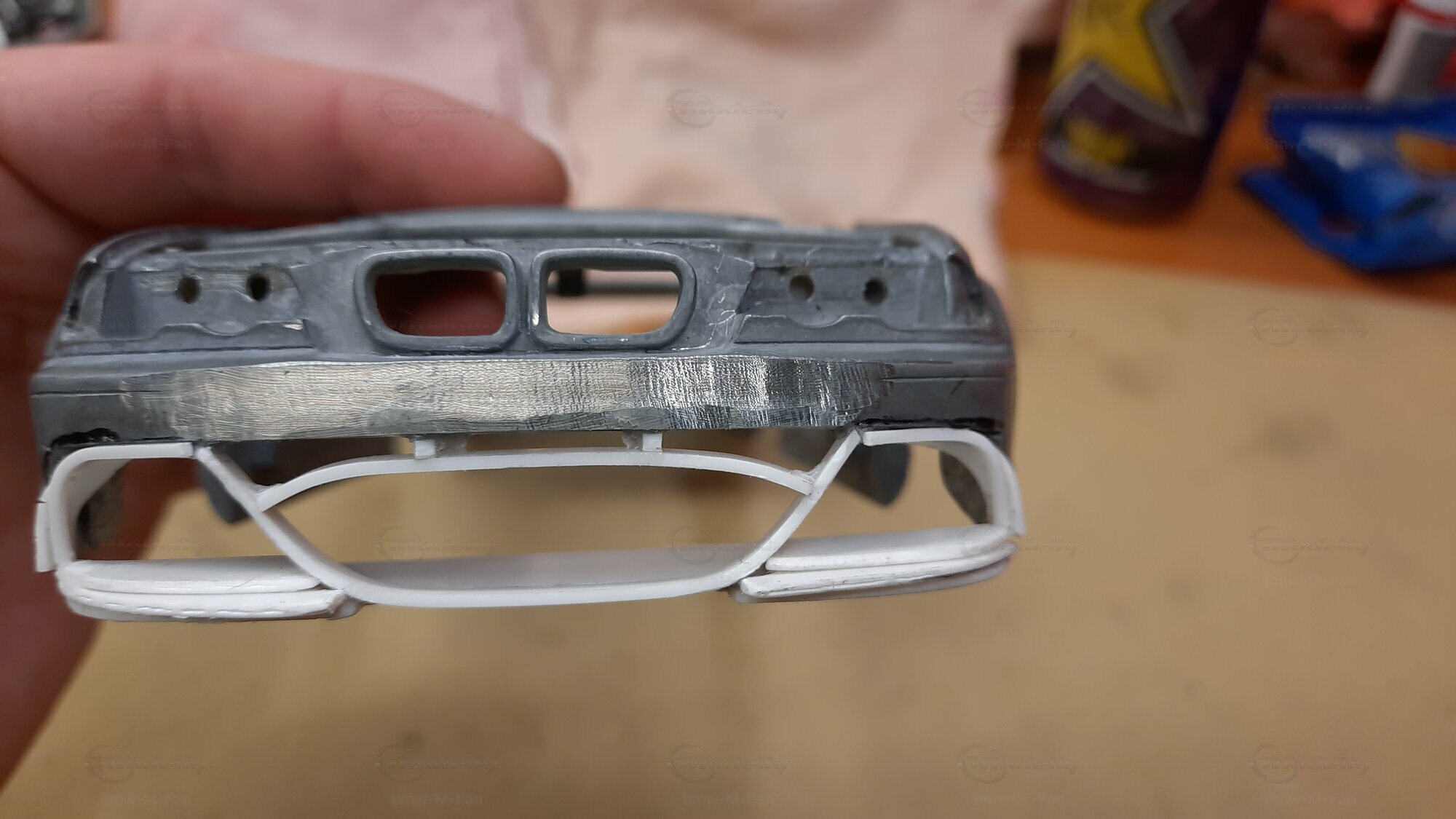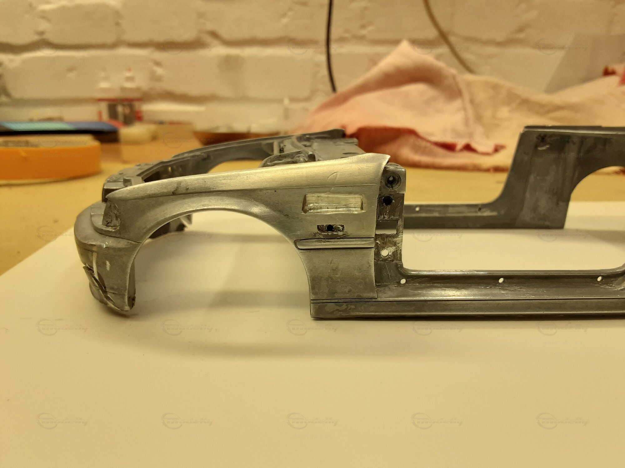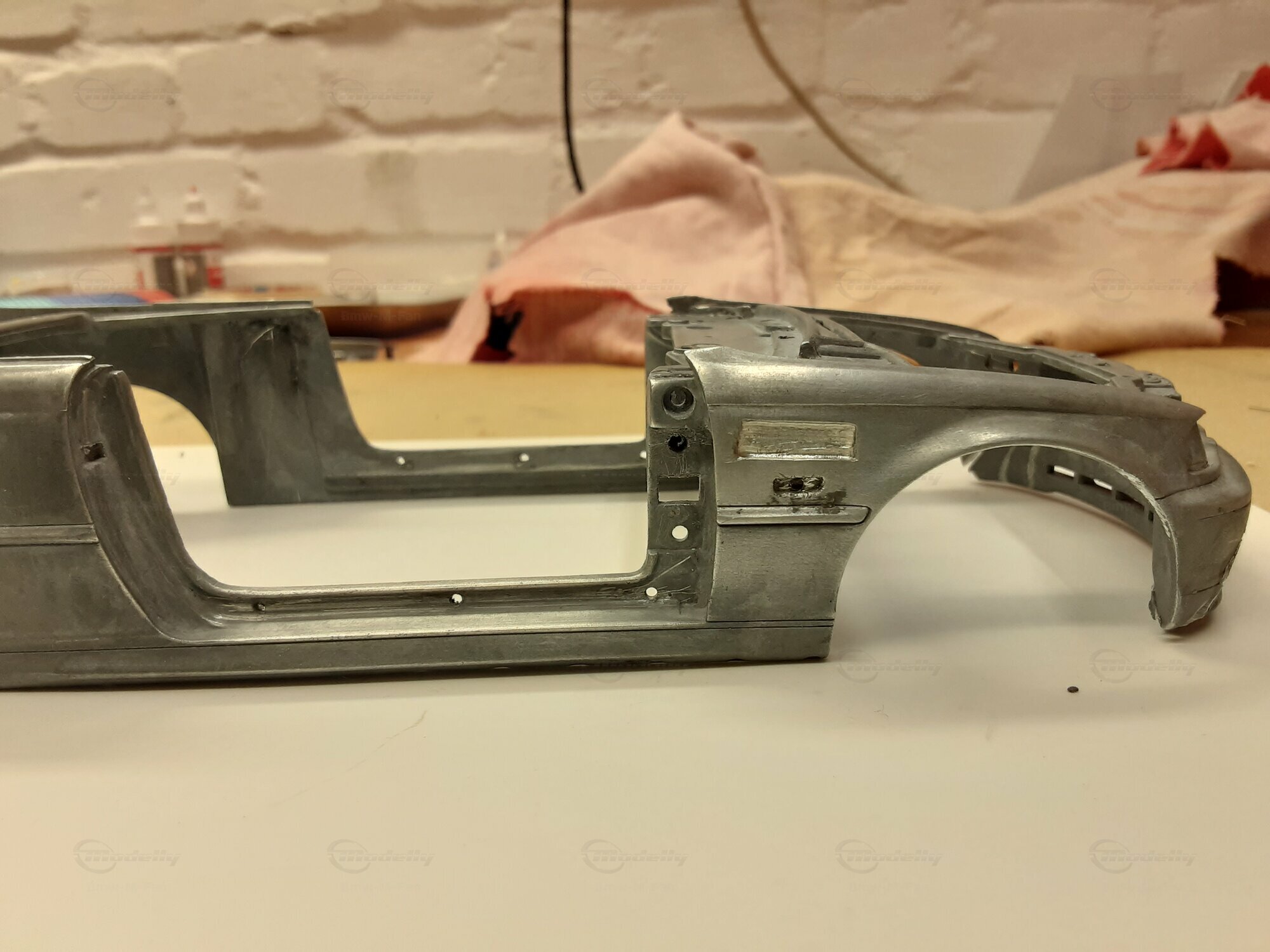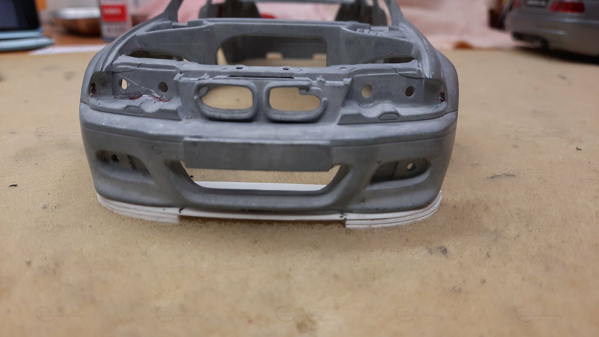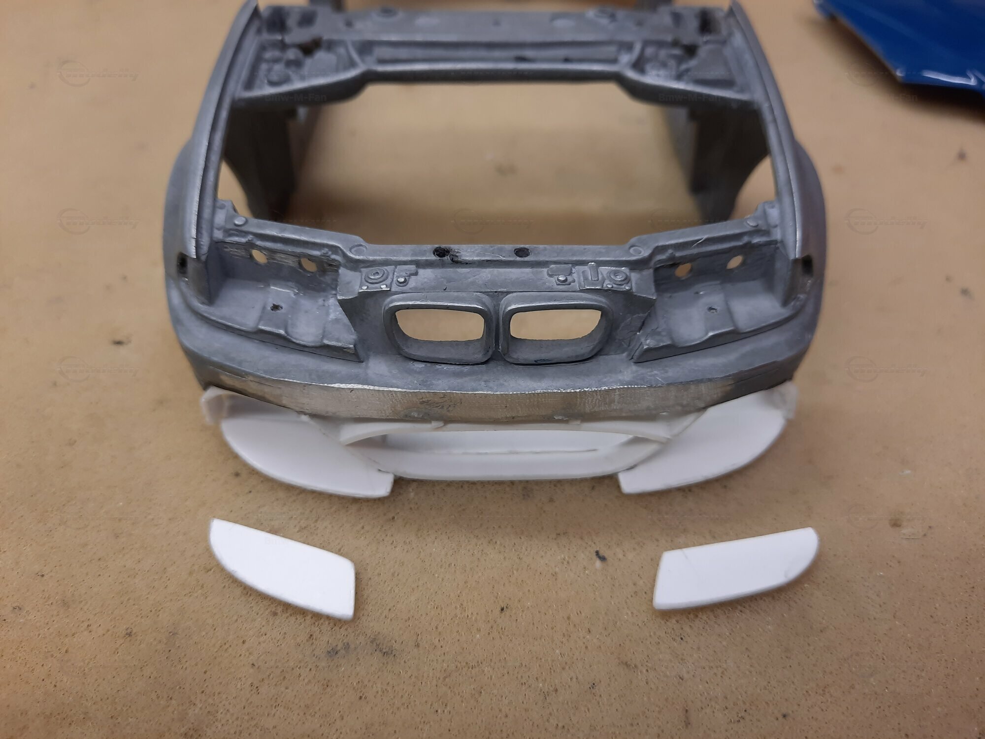 Modelly user "Bmw-M-Fan" proudly showcases this modified model, which stands out for its high level of detail and many true-to-life features. The beige interior stands out and provides a contrast to the black exterior. Even the smallest details like the functional doors, hood latch, and realistically replicated light fixtures are faithfully reproduced. An interesting detail is the wheels, depicted as detachable, which is a rarity in the model world. Overall, this model car is a highlight for any collector and impressively showcases the brilliance of the Kyosho workshop, without neglecting the many individual modifications and special features.