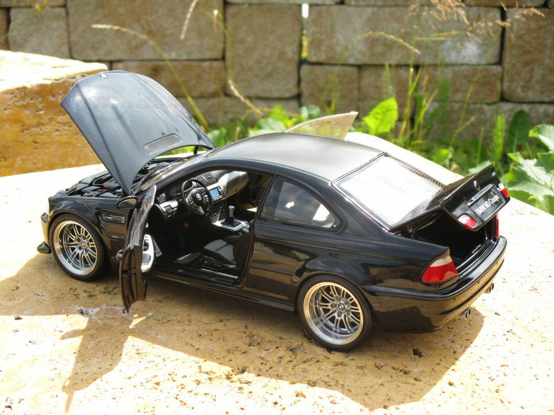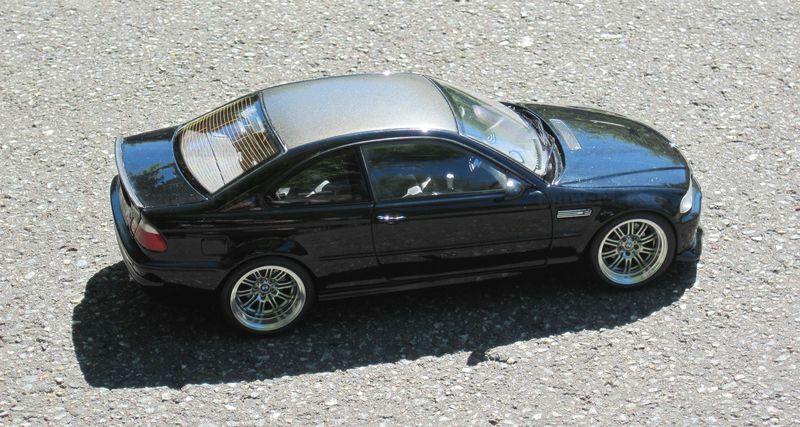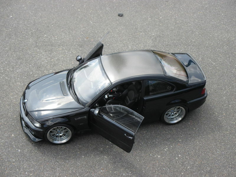 For collectors and enthusiasts, the model shown here is a special addition to the collection. Manufactured by Kyosho, it is a scale reproduction in 1/18 scale of the BMW E46 M3 Coupe. The precise craftsmanship and attention to detail make this model car a remarkable representation of the original. Please note that this is a modified model and not the product originally produced by Kyosho. Visible modifications include customized parts such as wheels and likely changes to the bodywork.