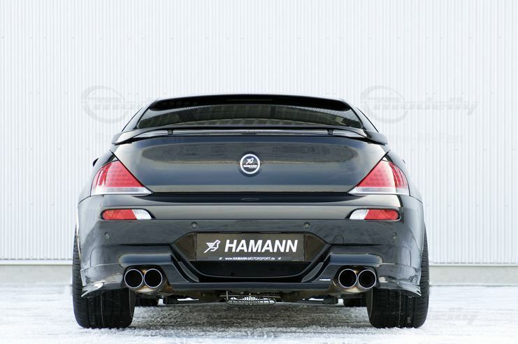 The model showcases a glossy black paint job that gives the original vehicle an elegant yet sporty appearance. Other striking details include the fine contours of the bodywork and the precise replication of the openings and grilles in the front area. Additionally, small, realistic labels such as the HAMANN logo on the side skirts and wheel arches are visible, further emphasizing authenticity. The interior detailing has also been meticulously executed, with the red accents in the cabin clearly visible. This focus on details makes this model a coveted collector's item for model car enthusiasts worldwide.