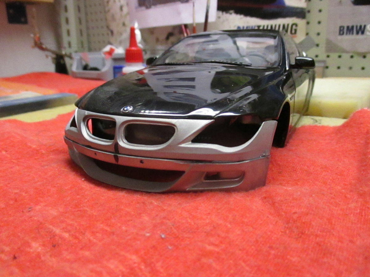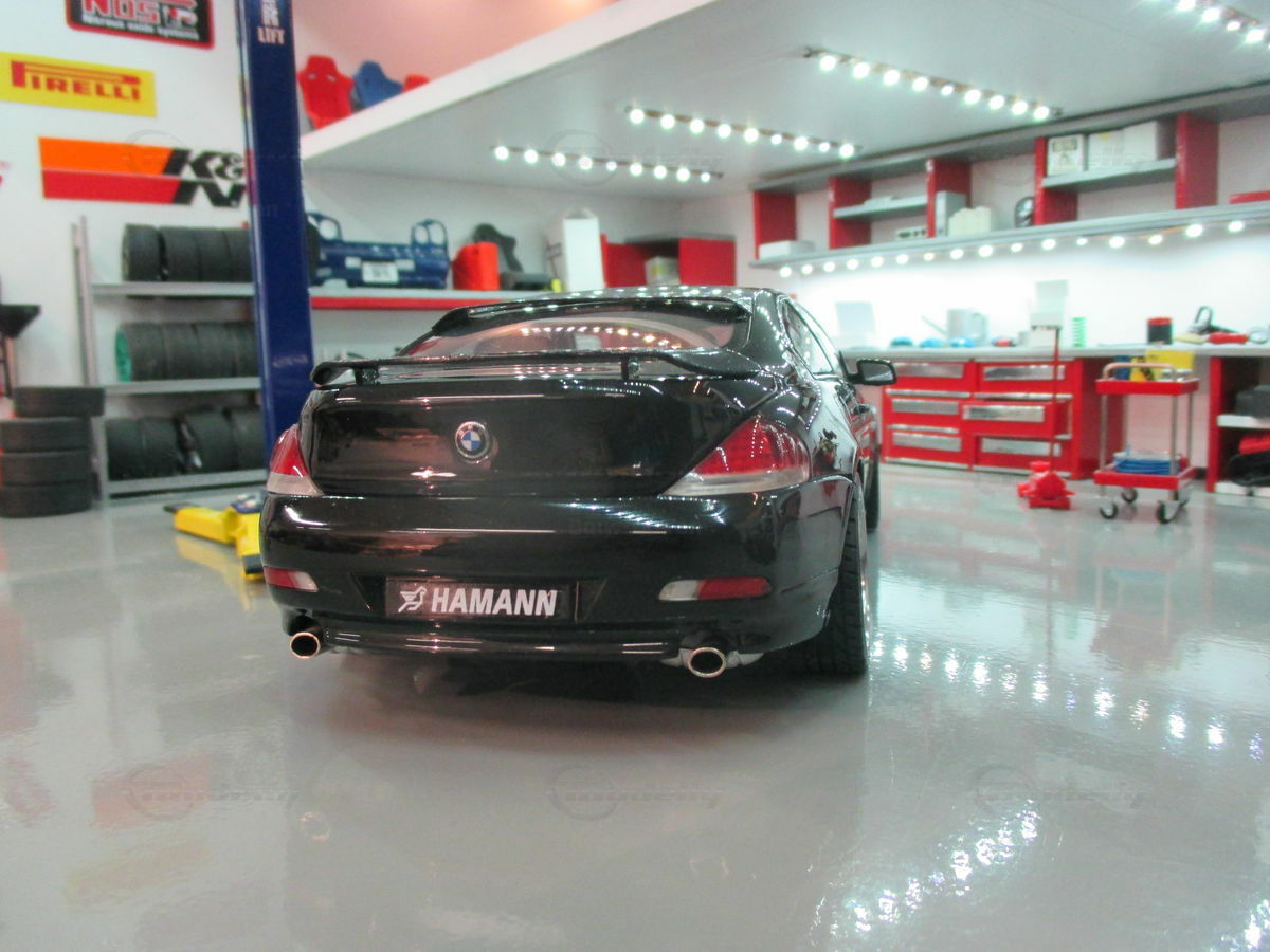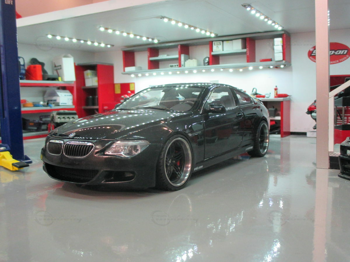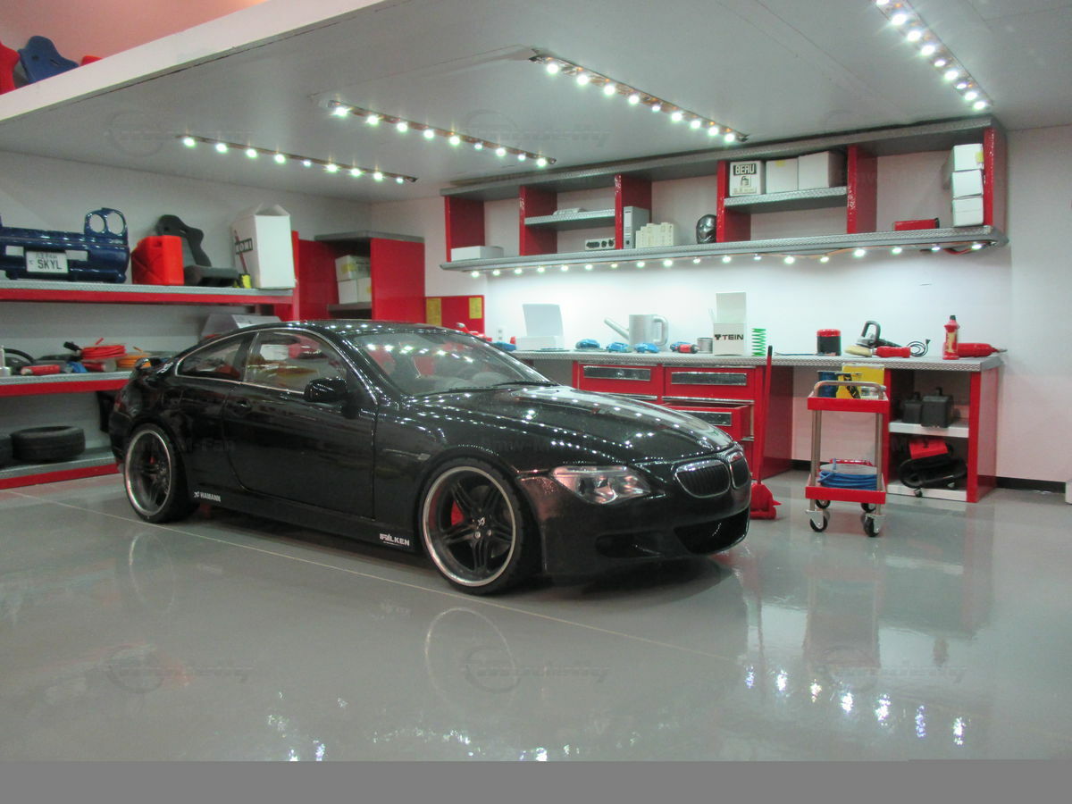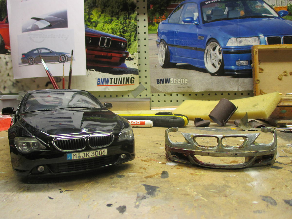 The miniature presented here is a model of a BMW E63 650i, crafted in a 1/18 scale. This model from the collection of Modelly member "Bmw-M-Fan" was originally manufactured by Kyosho. This is a modified version and does not represent the original product produced by Kyosho. The model car is made of high-quality diecast material, providing remarkable detail accuracy and durability. Displayed in a realistically designed miniature car workshop setting, the model showcases its impressive aesthetics and the faithful reproduction of the original.