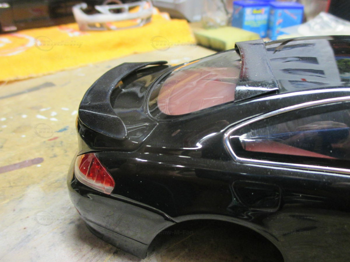 The model features suggest that it is a HAMANN look version, indicating exclusive tuning modifications. HAMANN, a renowned tuning company founded by Richard Hamann in 1986, is known for enhancing BMW models. The model displays distinctive features like tuned bumpers, widened side skirts, and a prominent rear spoiler accentuating the sporty and aggressive aesthetics of the original. The wheels depicted on the model could correspond to HAMANN wheels, known for their high quality and exclusive design. These elements draw attention to the meticulous detailing and precision in crafting this model car.