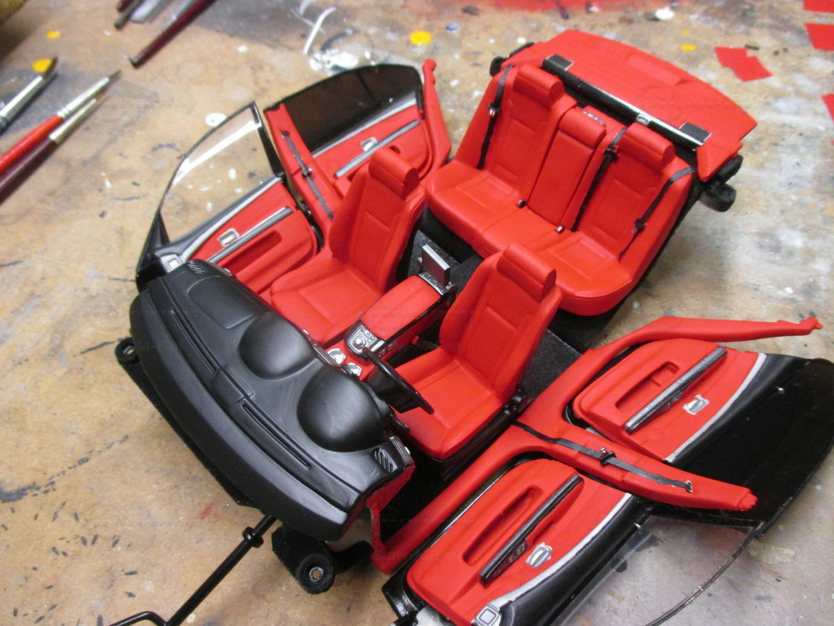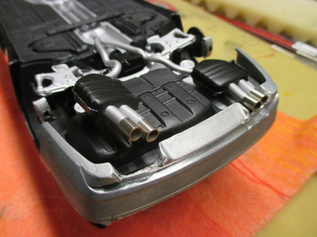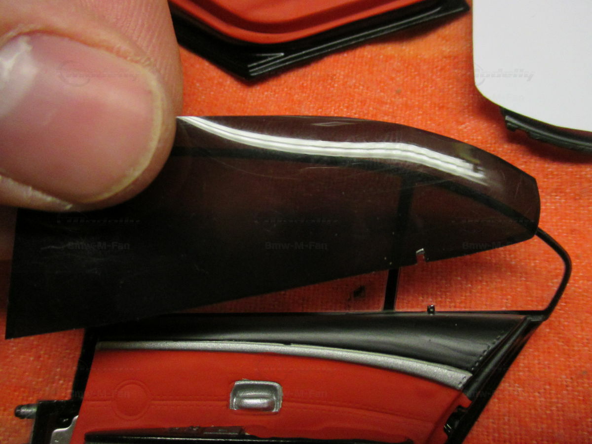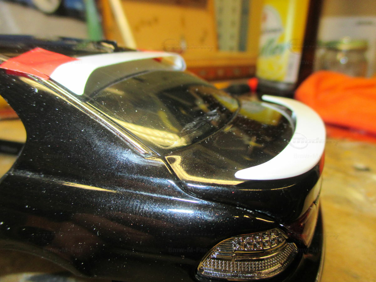 The miniature model stands out for its modified appearance that deviates from the original. This includes the striking Hamann grille, special front and rear bumpers, as well as side skirts. Additionally, the wheels have also been changed noticeably, sourced from BBS, giving the model a sportier look. The interior of the miniature model has also undergone modifications, with the red seats particularly standing out. These modifications make the model unique and highly desirable for collectors.