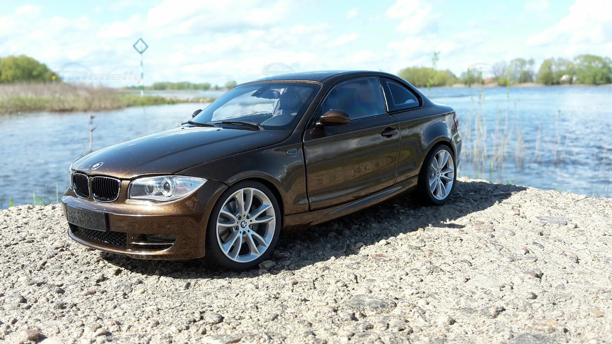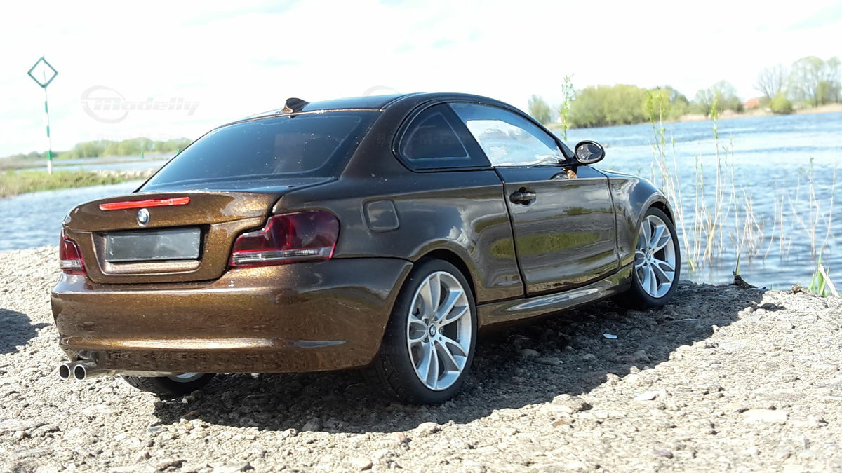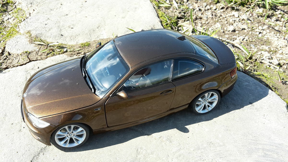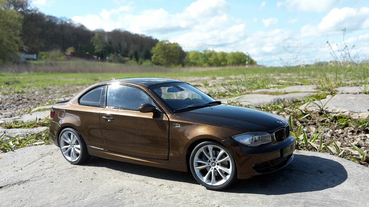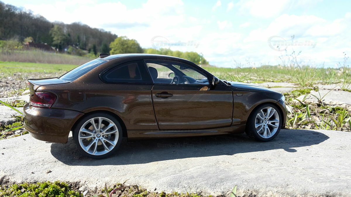 The showcased model car is a 1/18 replica manufactured by Kyosho. Crafted from durable die-cast material, ensuring longevity and high quality. This model is not just a replica but a modified version, specifically a unique creation personalized by Modelly member "Bmw-M-Fan". This means it may not have the exact features as the original Kyosho stock model. A standout highlight is the visible rims that accentuate the typical characteristics of the BMW 125i. The model boasts a detailed interior, reflecting the elegant and sporty nature of the original. The distinctive Marrakesh Brown color scheme lends an upscale and individual touch.
