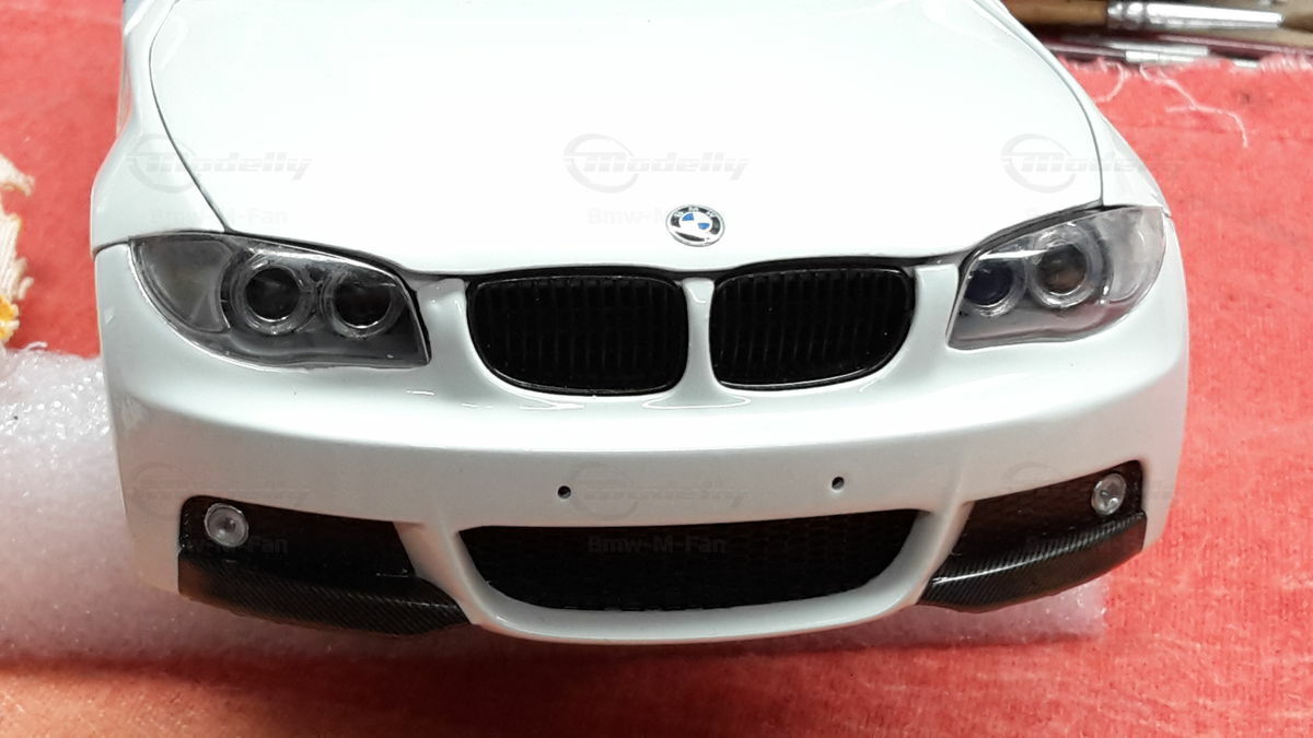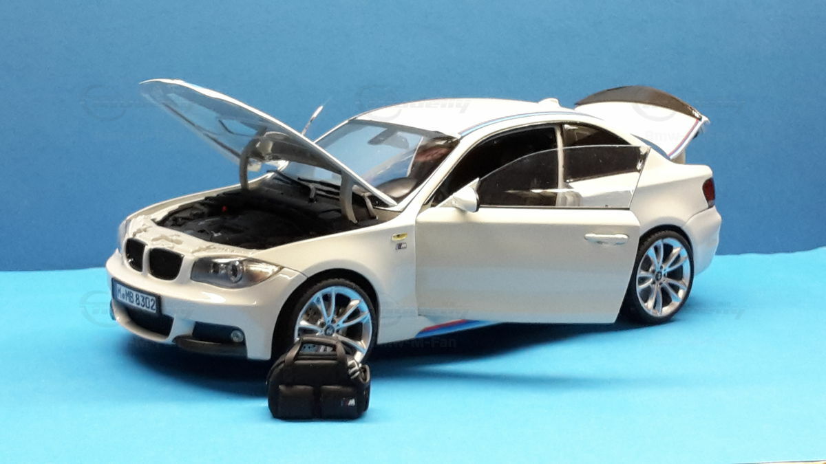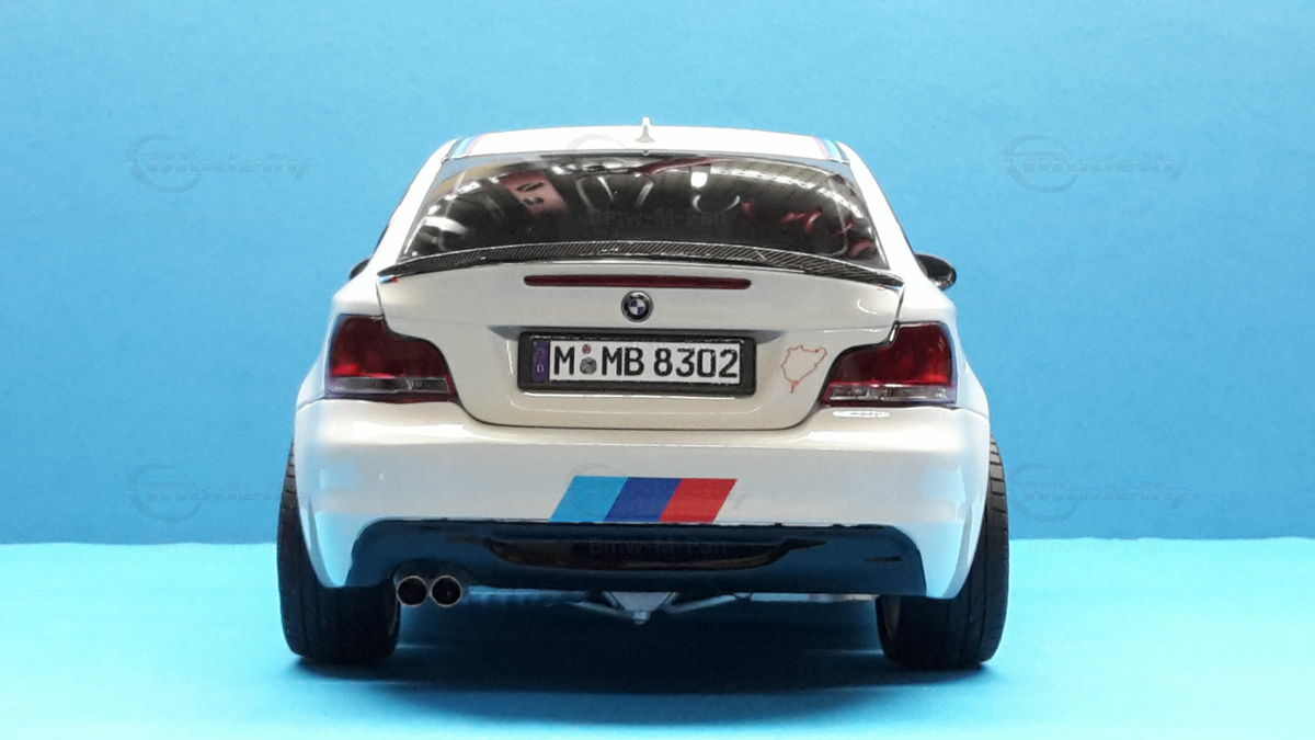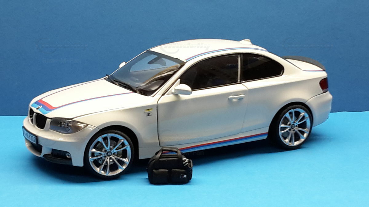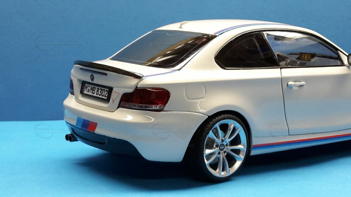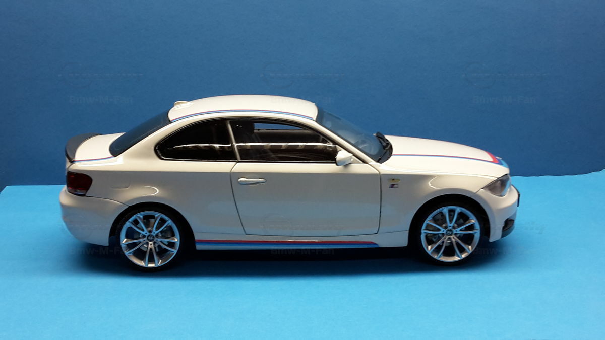 The model car presented here in a 1/18 scale, manufactured by Kyosho, showcases a modified version of the BMW E82 135i. It is important to note that this model does not represent the original product from Kyosho but has been altered by a collector. This particular model is constructed from diecast, a high-quality material known for its durability and detailed representation. The modifications include the special paintwork and added details visible in the photos.