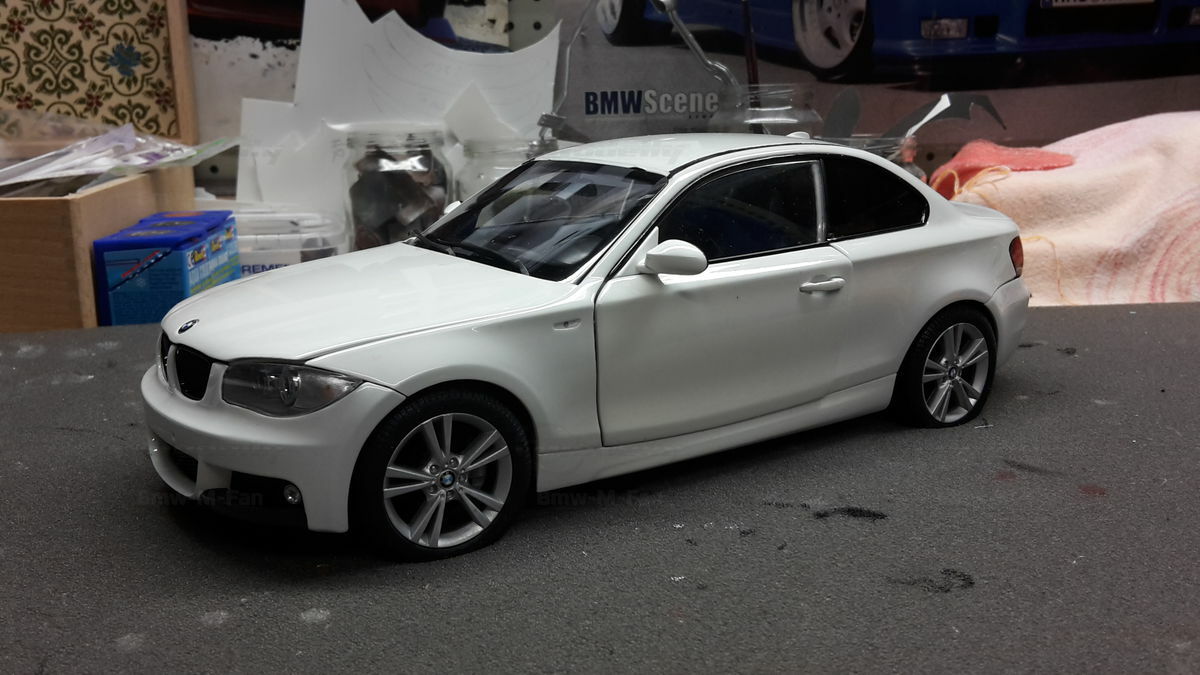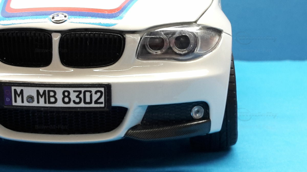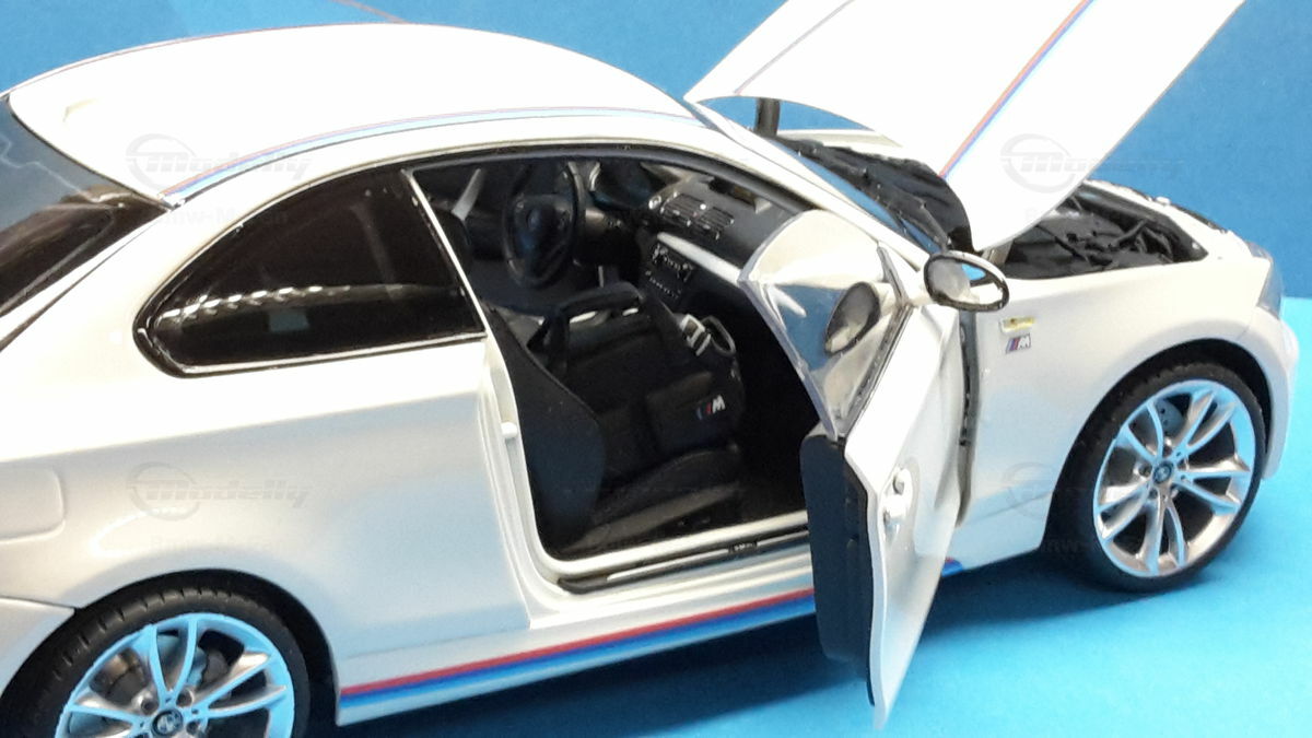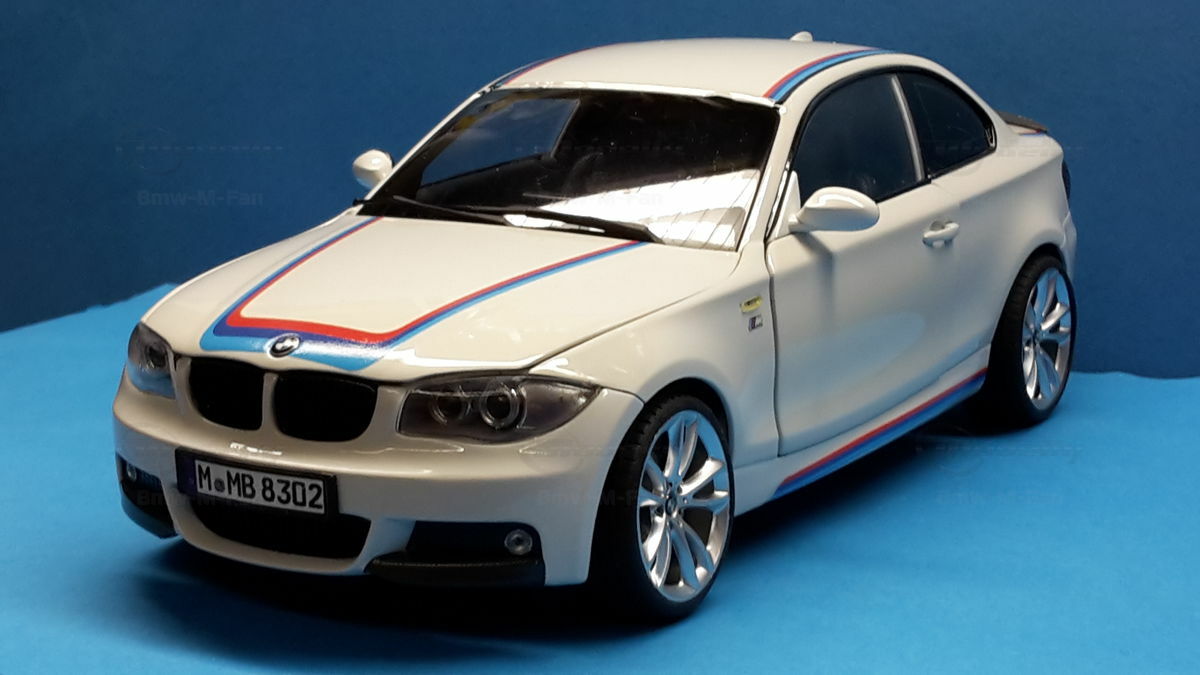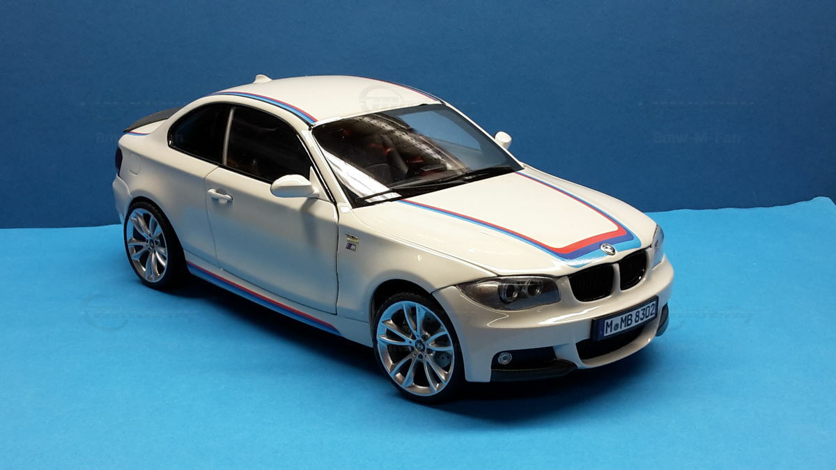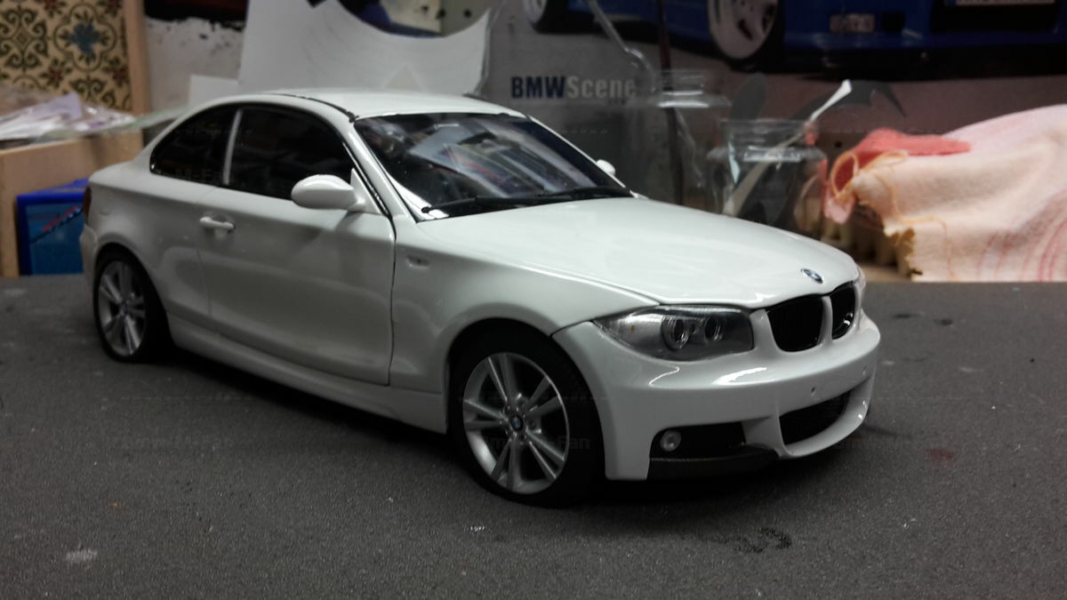The model car presented here in a 1/18 scale, manufactured by Kyosho, showcases a modified version of the BMW E82 135i. It is important to note that this model does not represent the original product from Kyosho but has been altered by a collector. This particular model is constructed from diecast, a high-quality material known for its durability and detailed representation. The modifications include the special paintwork and added details visible in the photos.
