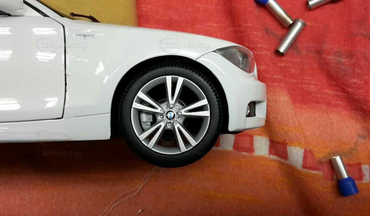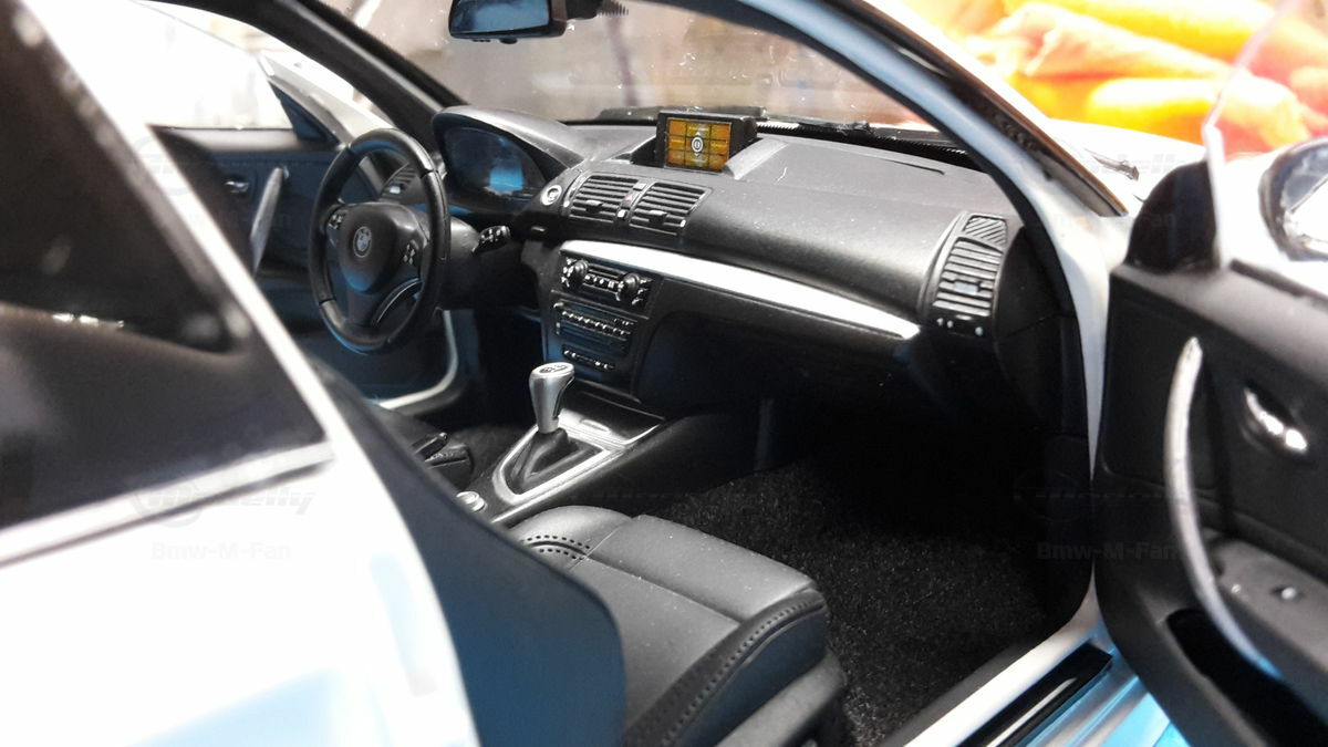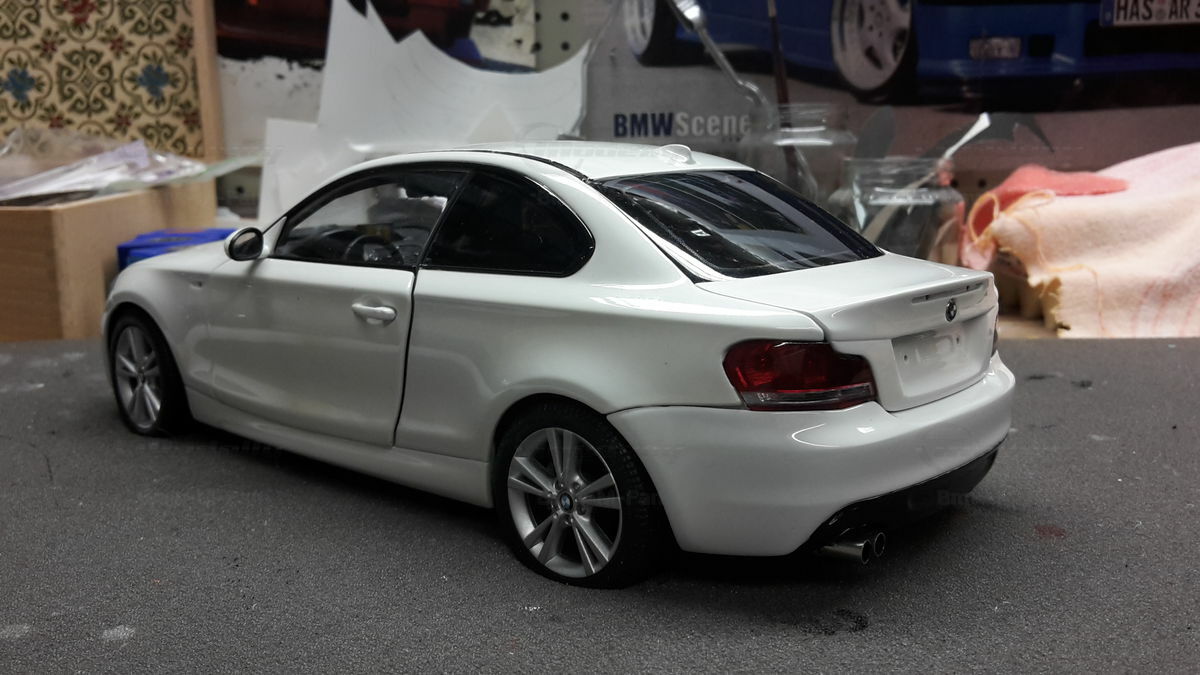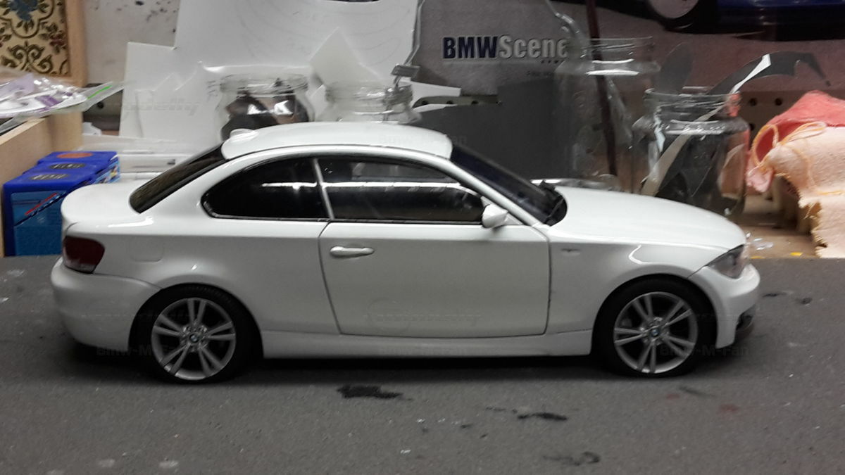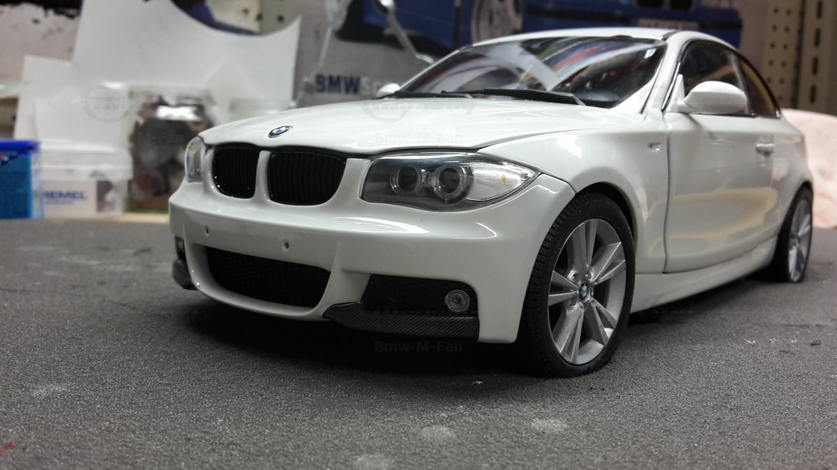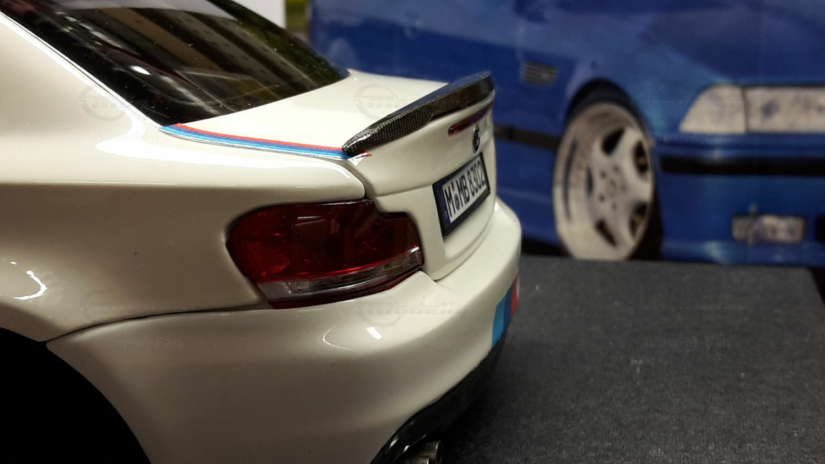 The model car presented here in a 1/18 scale, manufactured by Kyosho, showcases a modified version of the BMW E82 135i. It is important to note that this model does not represent the original product from Kyosho but has been altered by a collector. This particular model is constructed from diecast, a high-quality material known for its durability and detailed representation. The modifications include the special paintwork and added details visible in the photos.