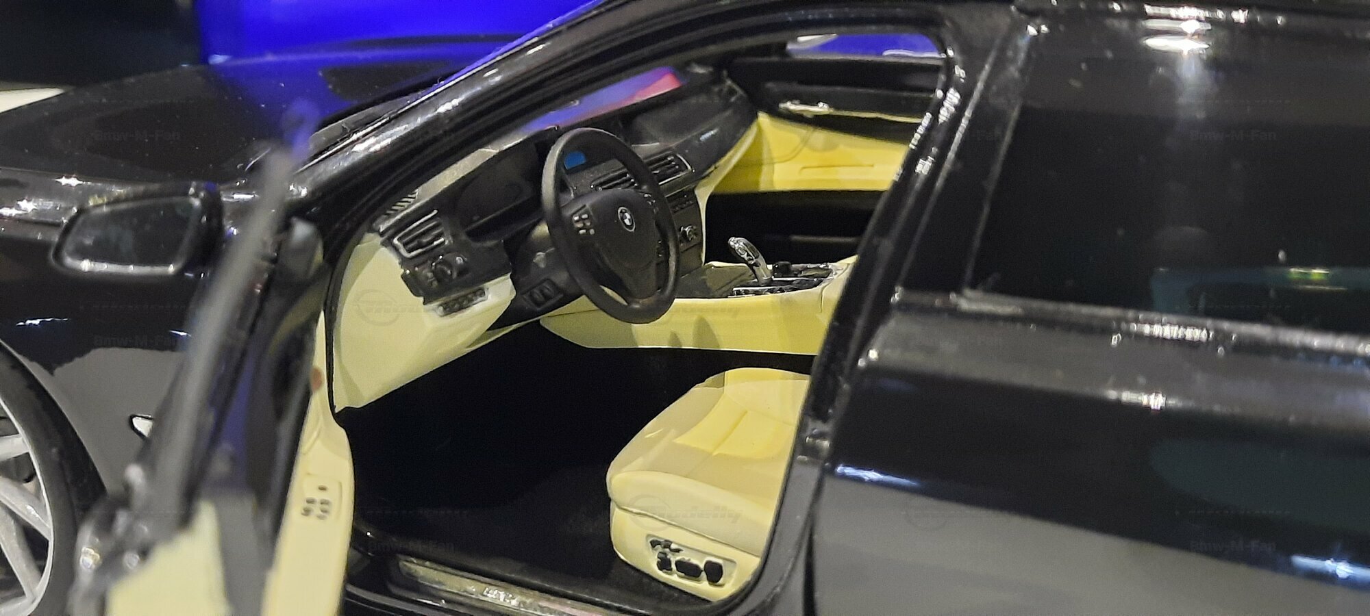 Specifications of the 1/18 model by KyoshoThis 1/18 diecast miniature model portrays various details of the original vehicle. The distinctive black paintwork mirrors the elegant and understated style typical of the BMW F02. The interior of the miniature model is intricately crafted, with every gauge and control faithfully reproduced from the original. While this model is manufactured by Kyosho, it is a modified version and does not represent the exact product originally produced by Kyosho.