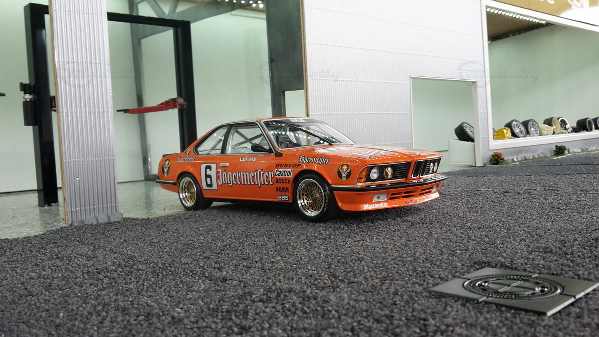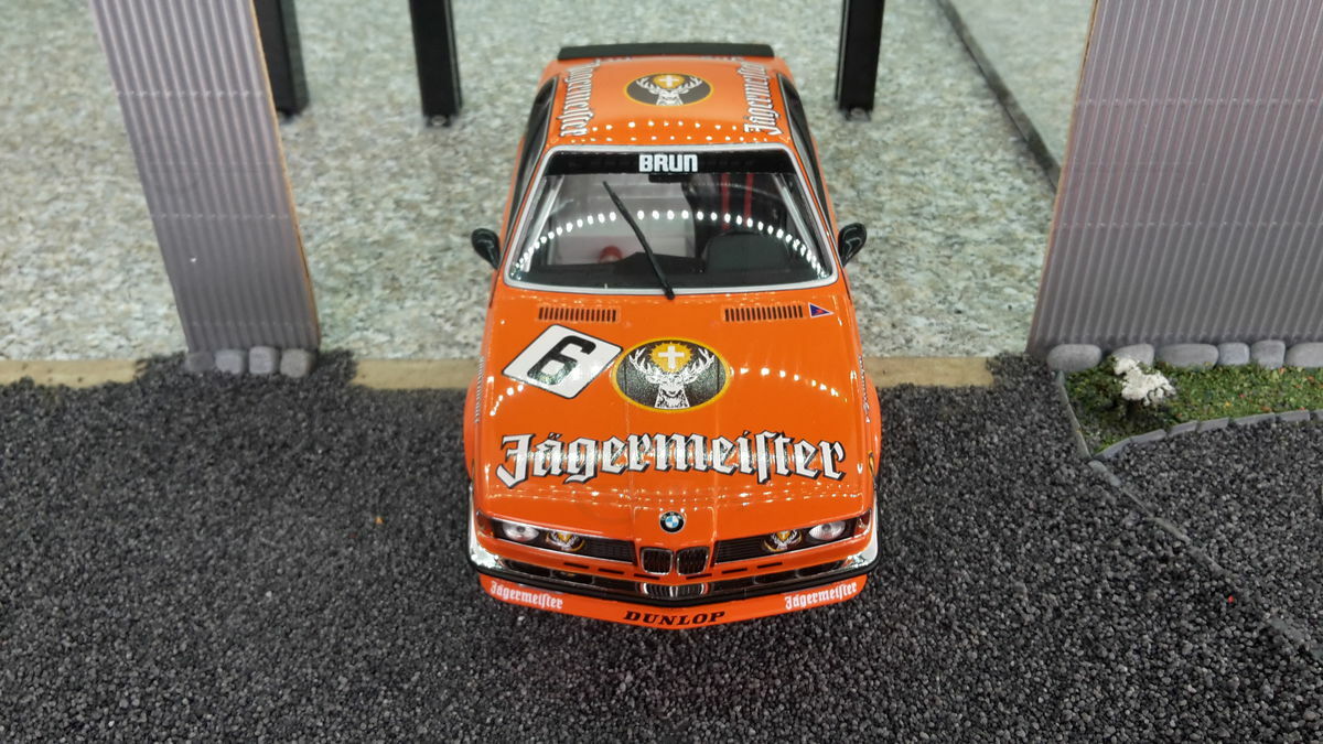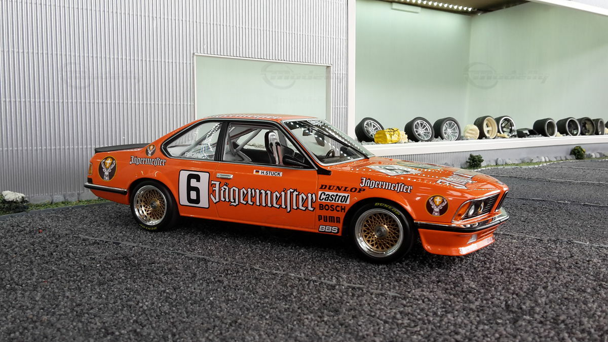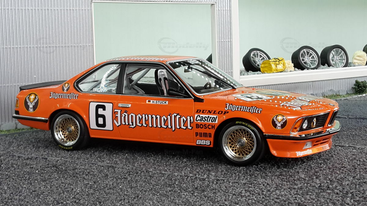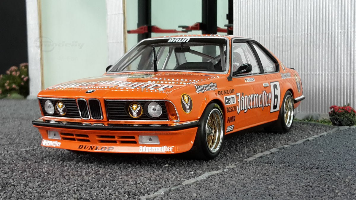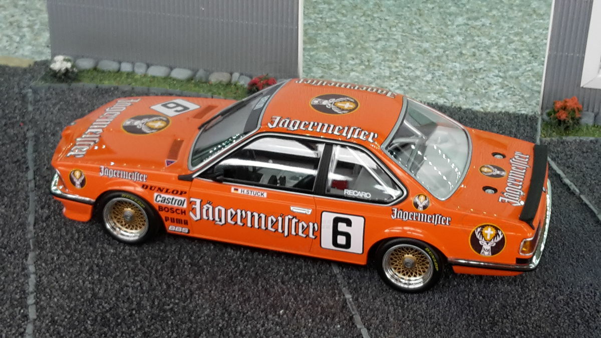The 1/18 scale model presented here from Minichamps is a detailed replica of the BMW E24 635CSI driven by Hans-Joachim Stuck from the Jägermeister Team. The diecast miniature stands out for its precise craftsmanship and attention to detail – from the accurately replicated Jägermeister sponsor decals to the authentic racing numbers and delicate wheel details. The distinctive Jägermeister orange tone and logos of sponsors such as Jägermeister, Dunlop, Castrol, Bosch, and PUMA have been accurately placed, making the model a highlight in any collection. The model captures the typical shape and color scheme of the original, impressively reflecting the aesthetics and design of the historic race car.