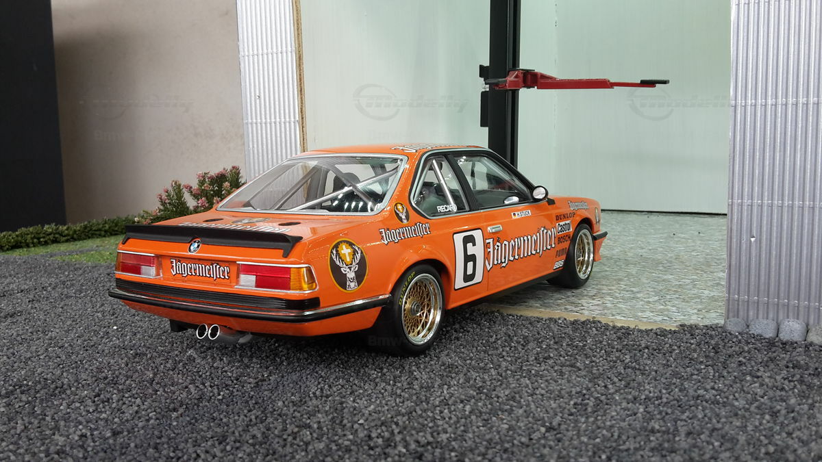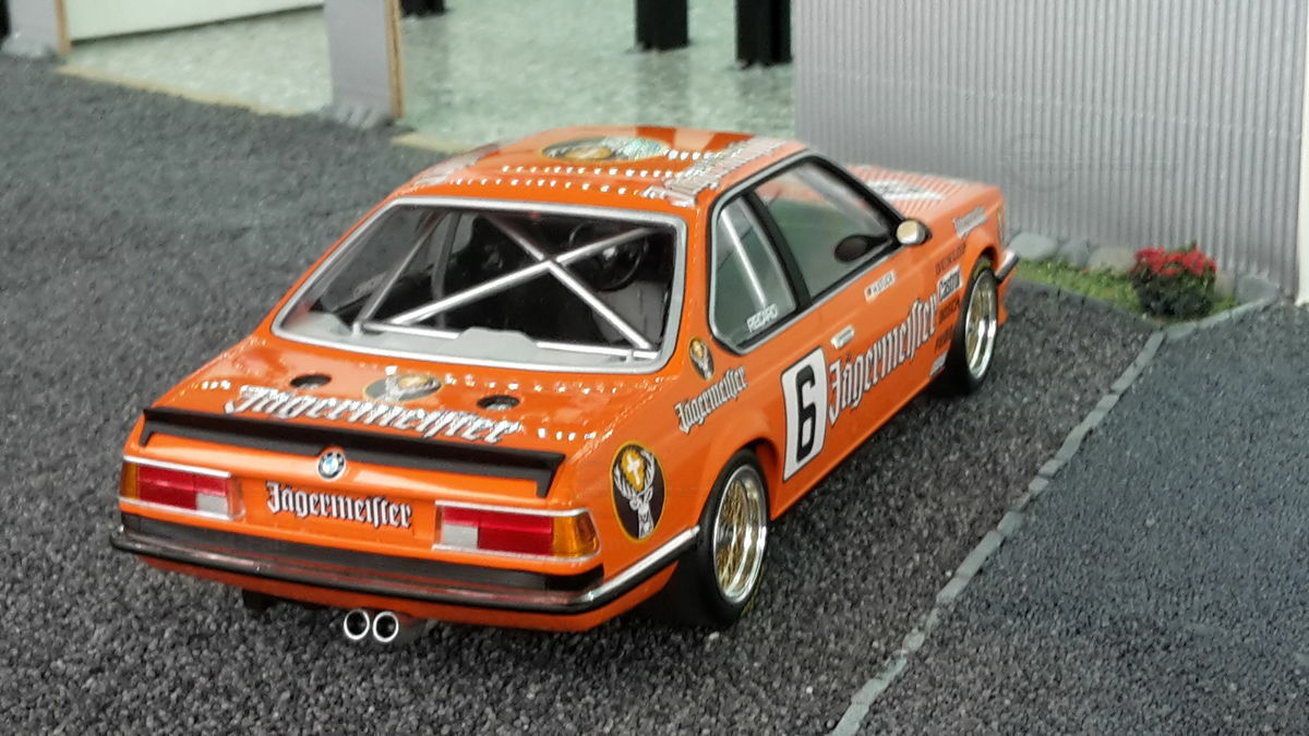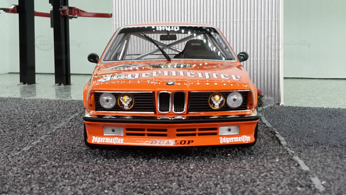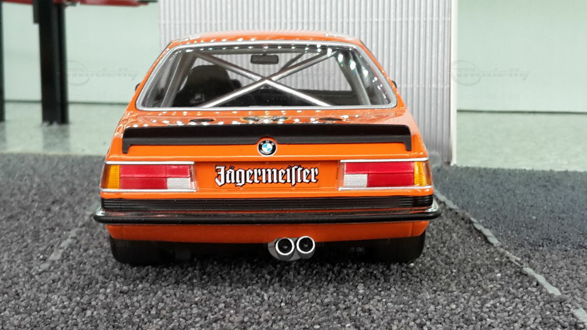 The 1/18 scale model by Minichamps stands out for its high level of detail. The front of the model showcases the classic BMW kidney grilles and the distinctive double headlights, complemented by finely replicated air intakes and racing stickers. On the side of the vehicle, all relevant sponsor logos are visible, embedded in the orange Jägermeister design that gives the car a striking appearance. The golden wheels, racing tires, and realistic brakes are additional highlights. All these details make the model especially attractive to collectors like "Bmw-M-Fan" and provide a comprehensive insight into the design and history of the race car.