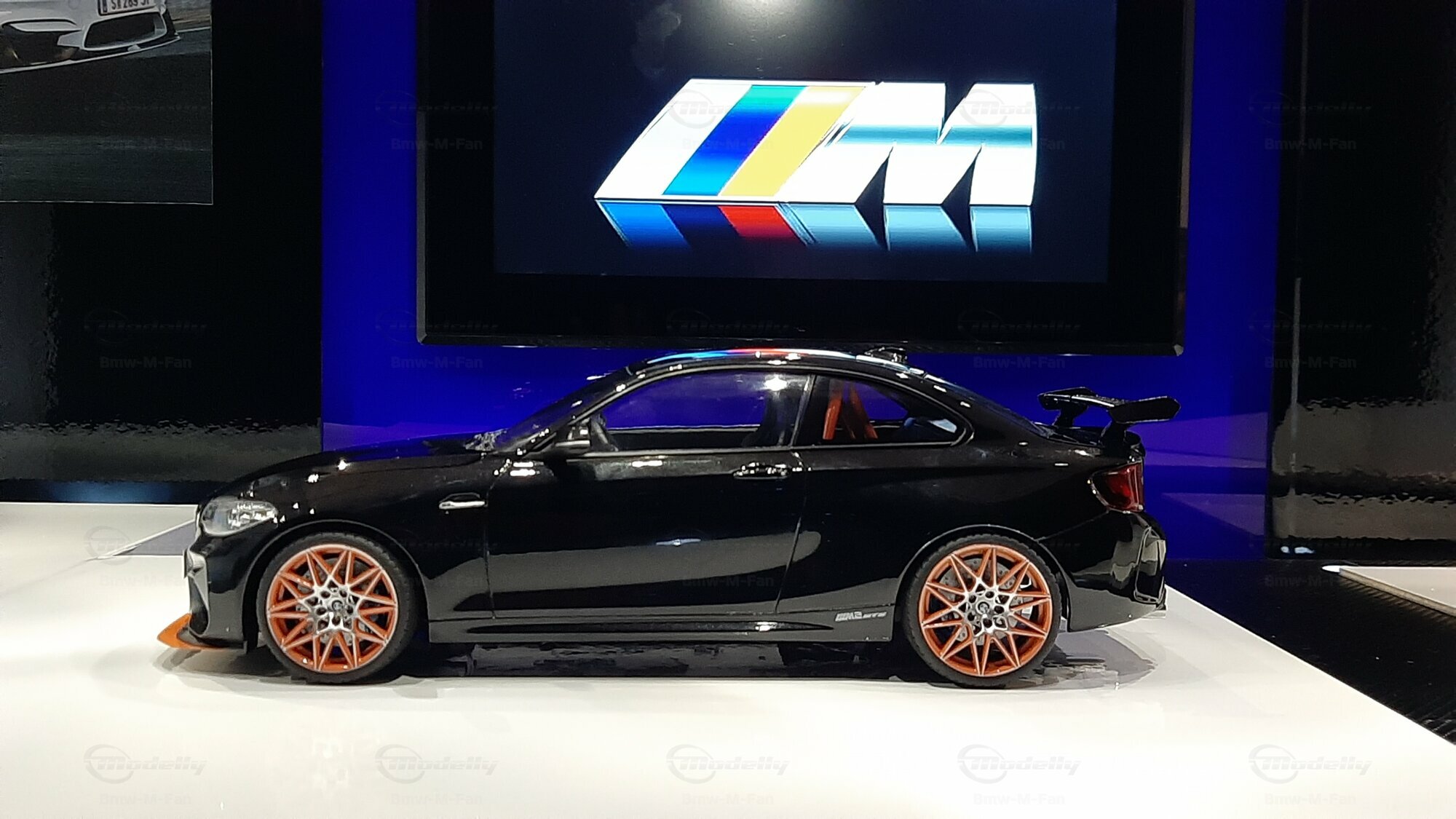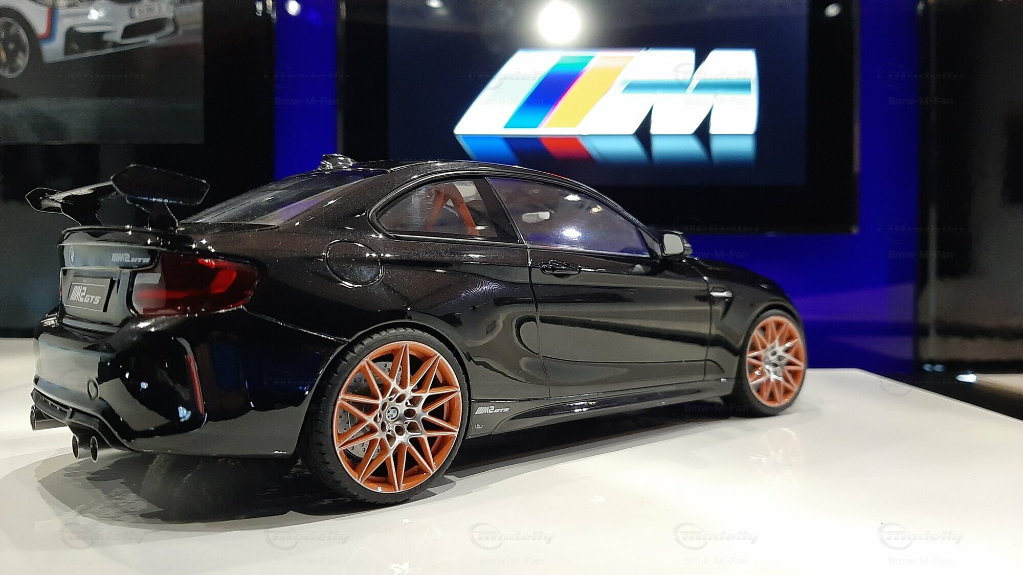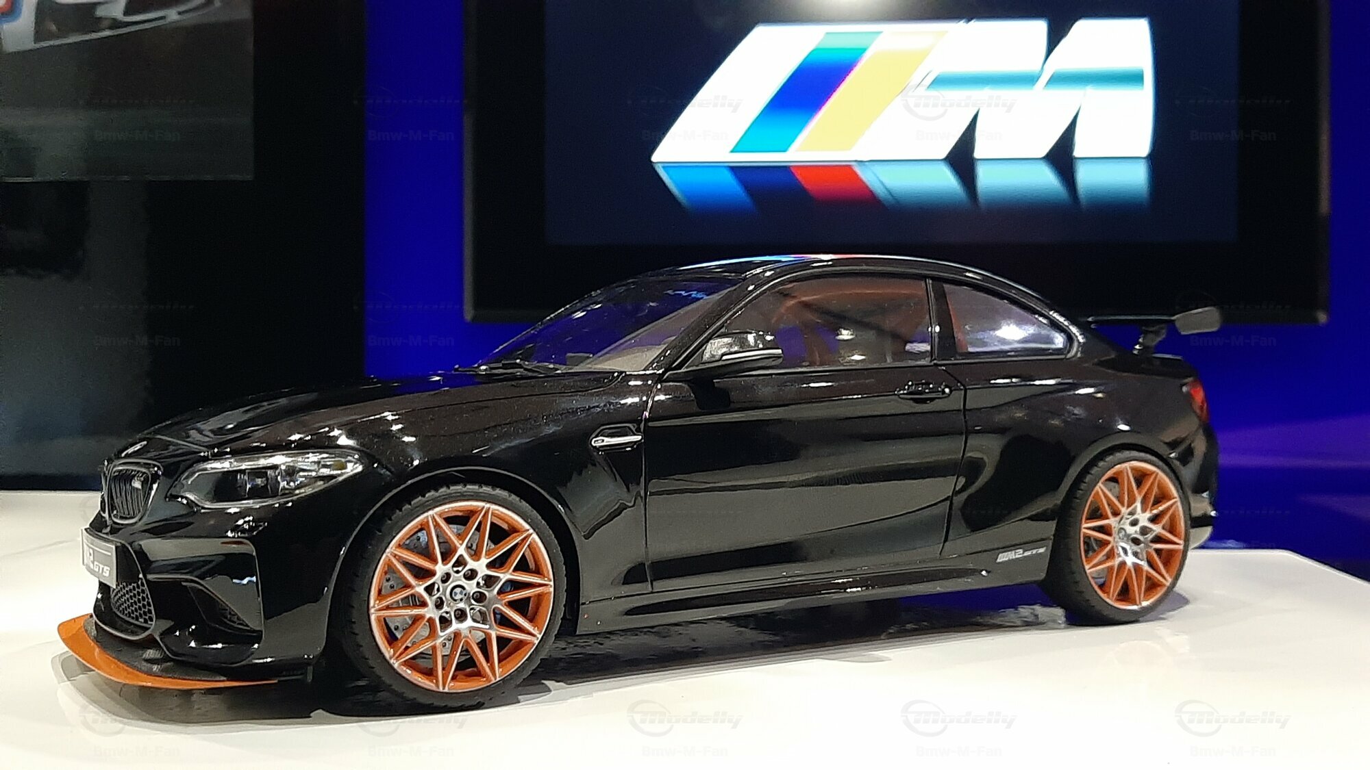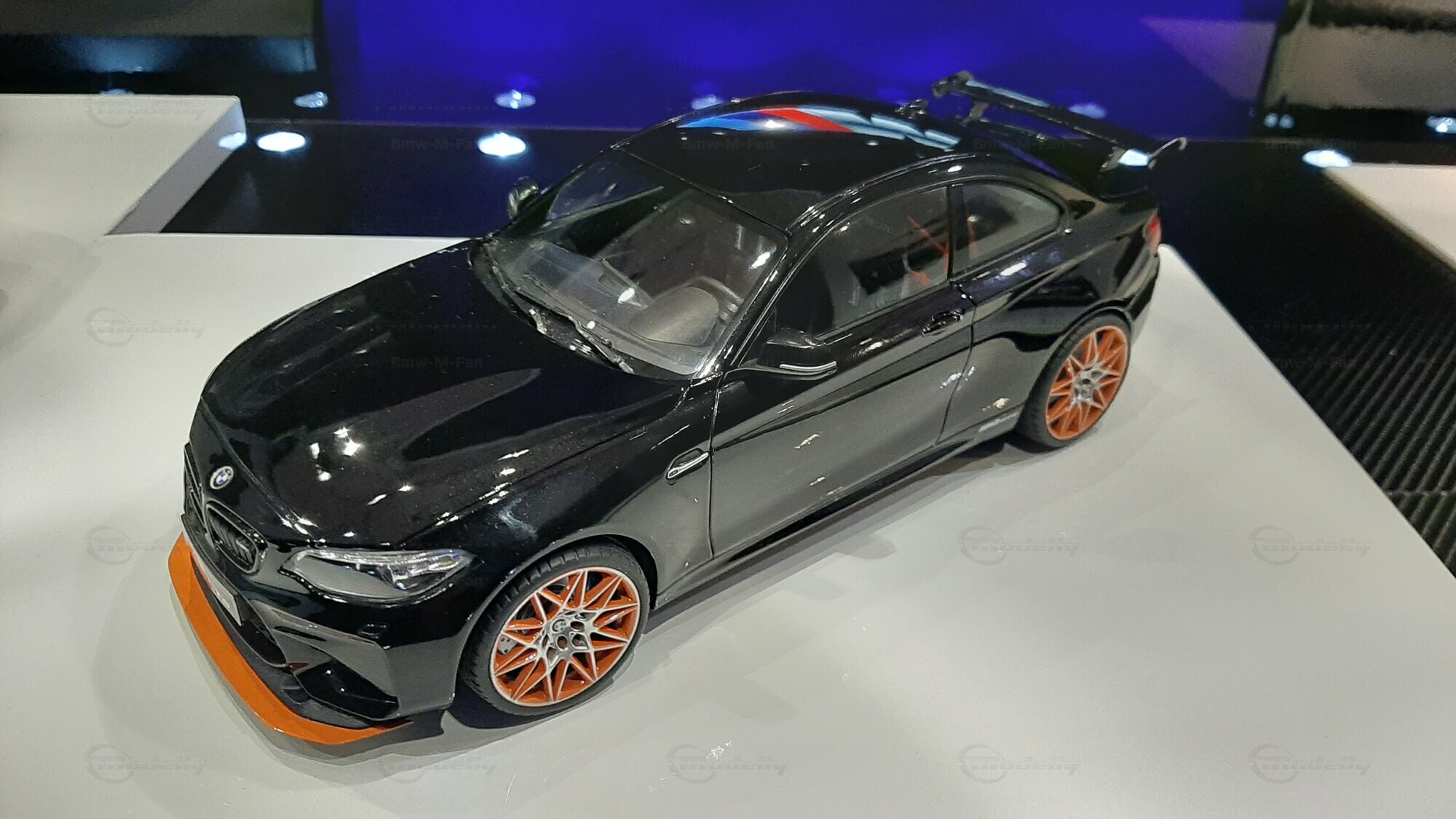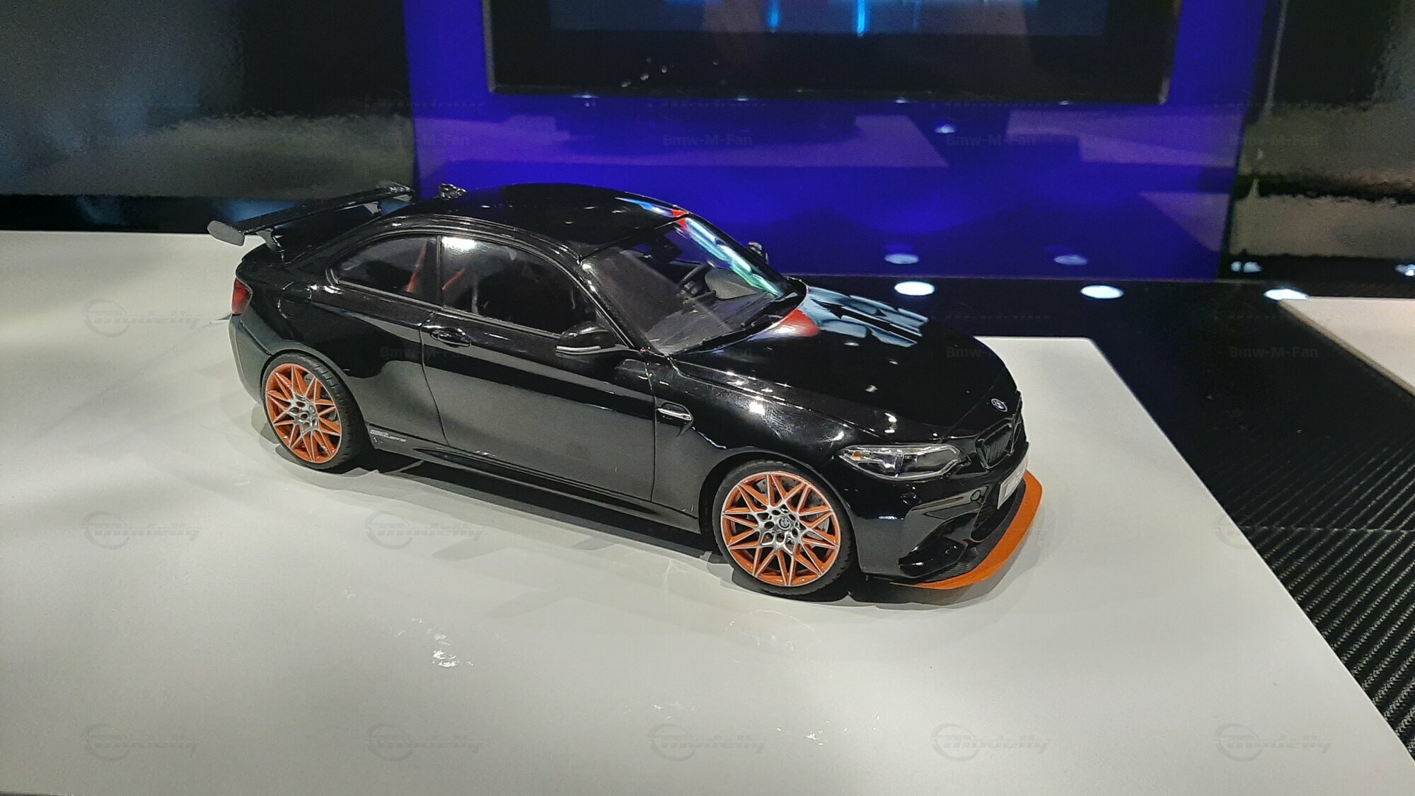 The model presented here is a modified version, not representing the original Minichamps product, but altered through individual adjustments and additions. This miniature is part of the collection of Modelly member "Bmw-M-Fan" and stands out with precise details that highlight the uniqueness of the model. The striking aerodynamic design of the original BMW F87 M2 GTS has been carefully replicated, along with the brightly orange wheels and rear wing, adding exciting accents. The presentation of the model on the display platform with the large M logo in the background gives the model a professional and glamorous appearance, attracting the attention of collectors worldwide.