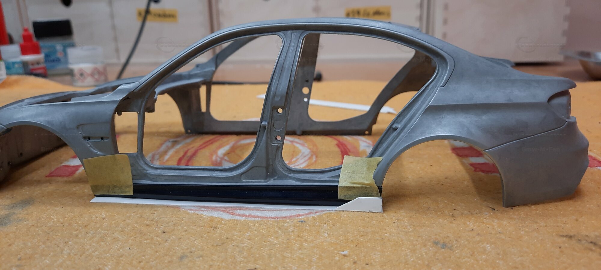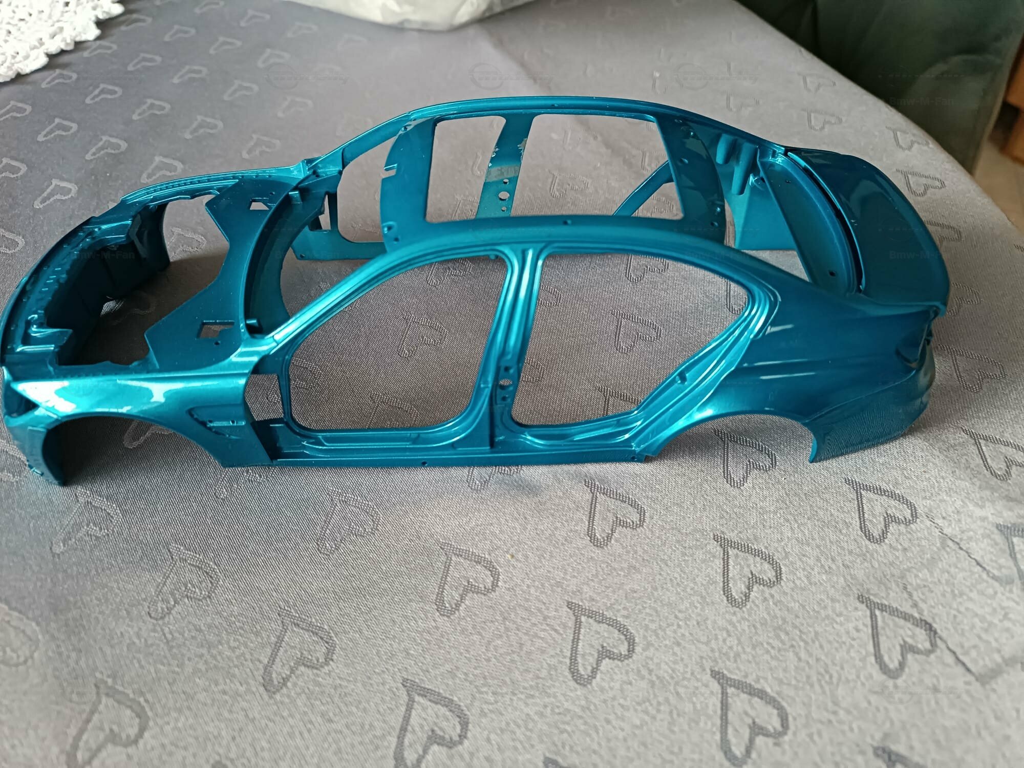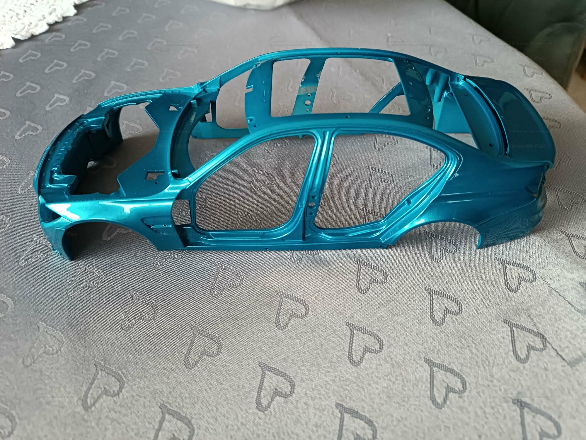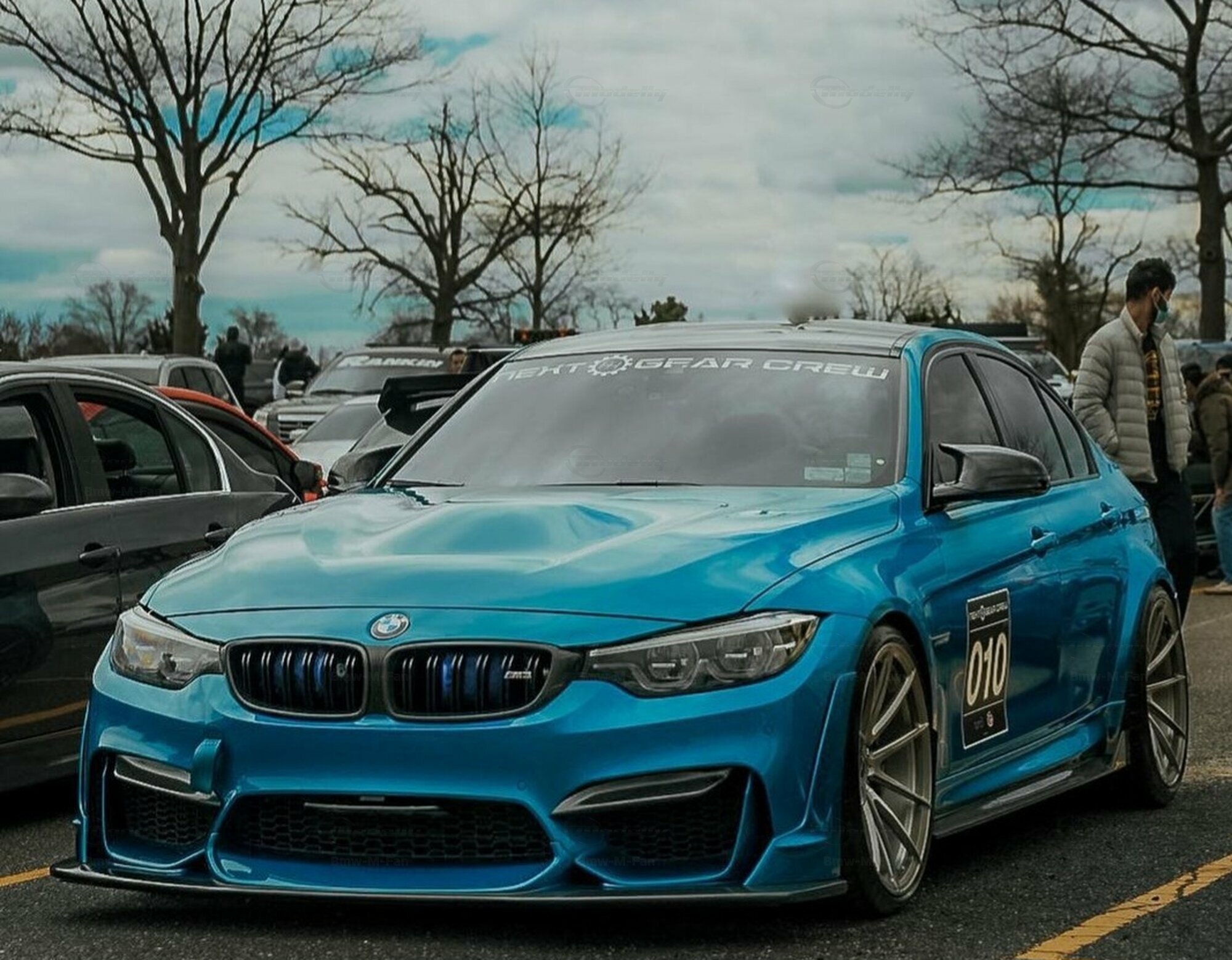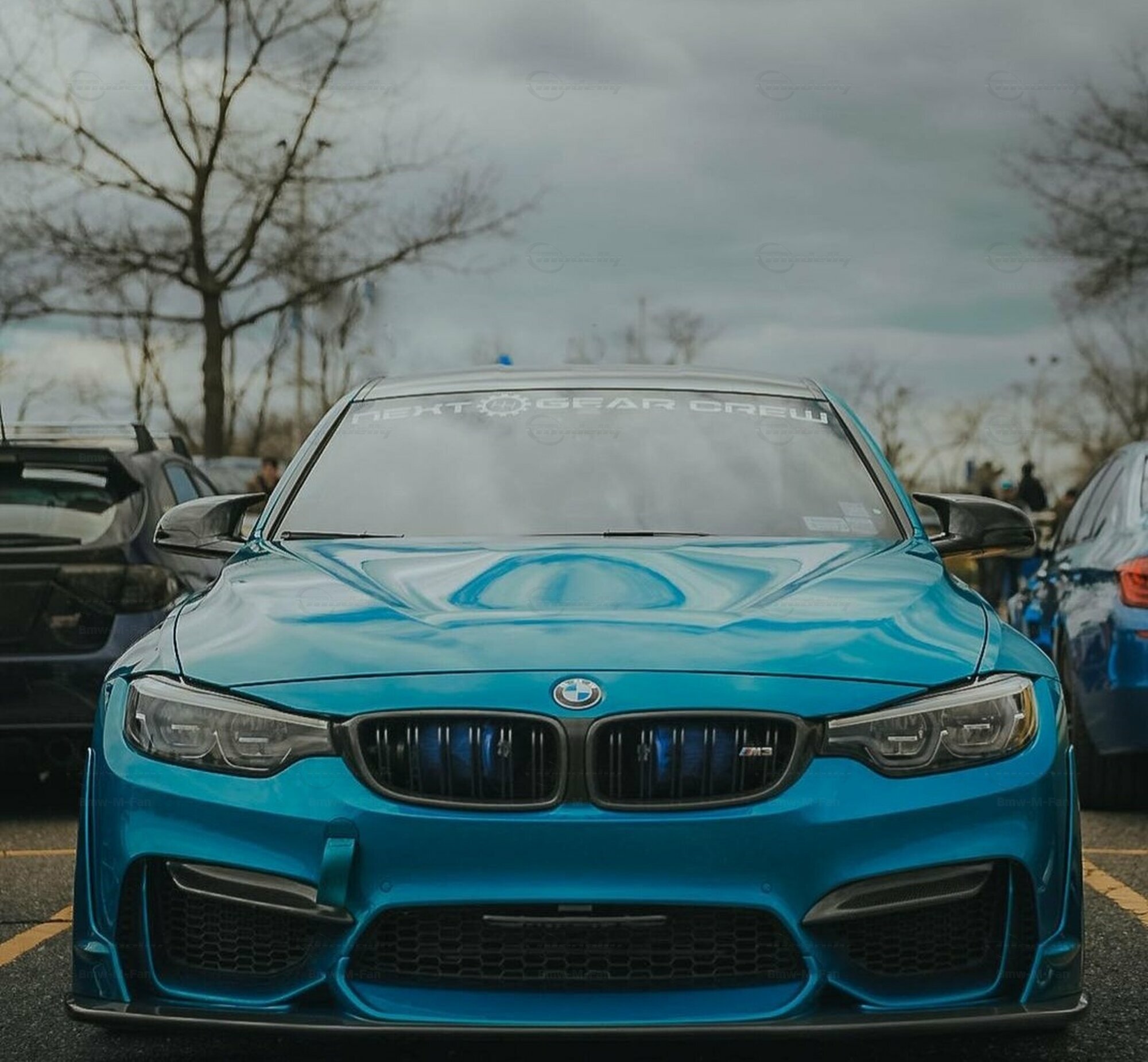 The model here is a modified replica of the BMW F80 M3 Competition in 1/18 scale. Originally made by Norev, a well-known model car manufacturer, this model is crafted from high-quality diecast material. However, it was extensively customized by a collector known as "Bmw-M-Fan." It's essential to point out that this version doesn’t represent the original model from Norev. Clearly, this vehicle features a unique paint job and tuning elements. The striking blue metallic paint really makes the model stand out, and the color has an impressive depth and reflection. You can spot a “Next Gear Crew” sticker on the windows, hinting at a possible community or team it represents.