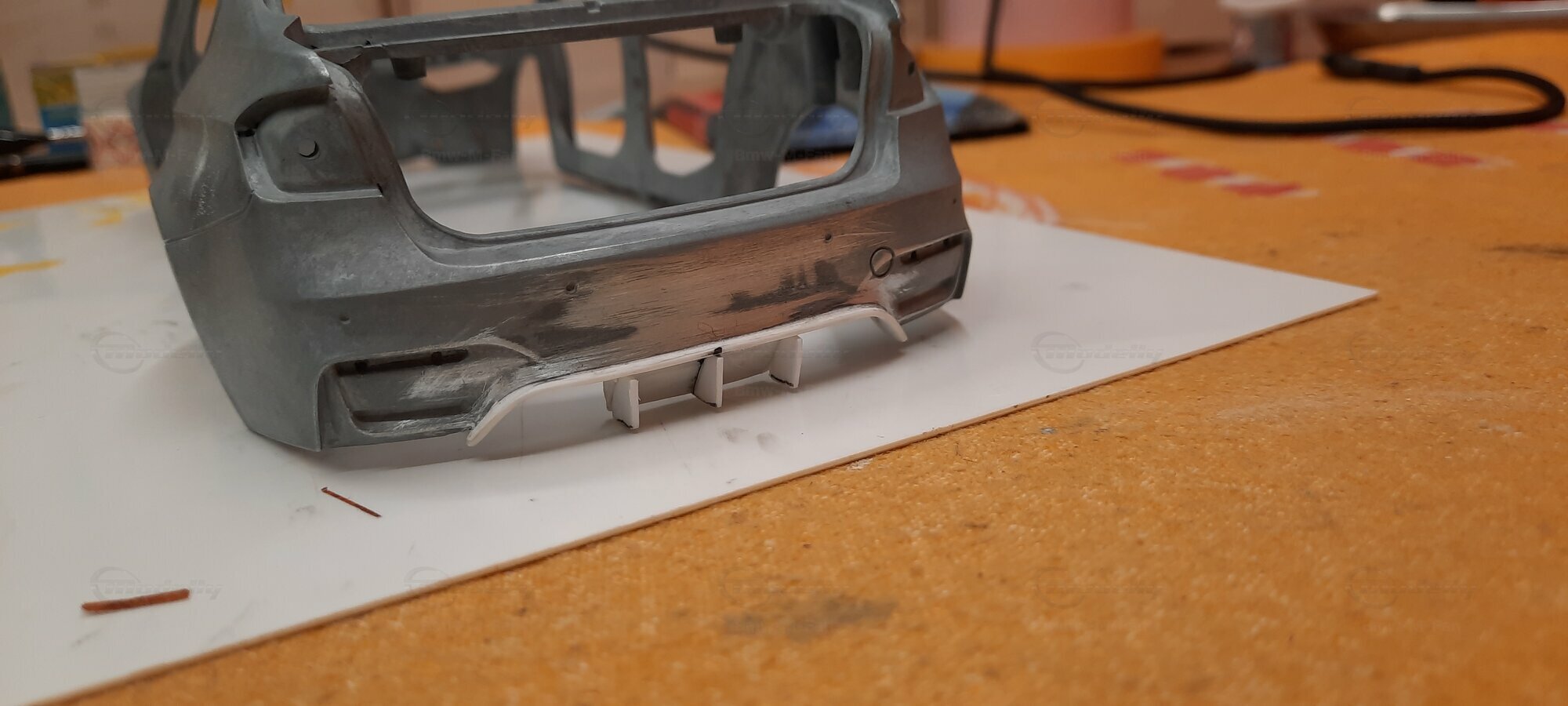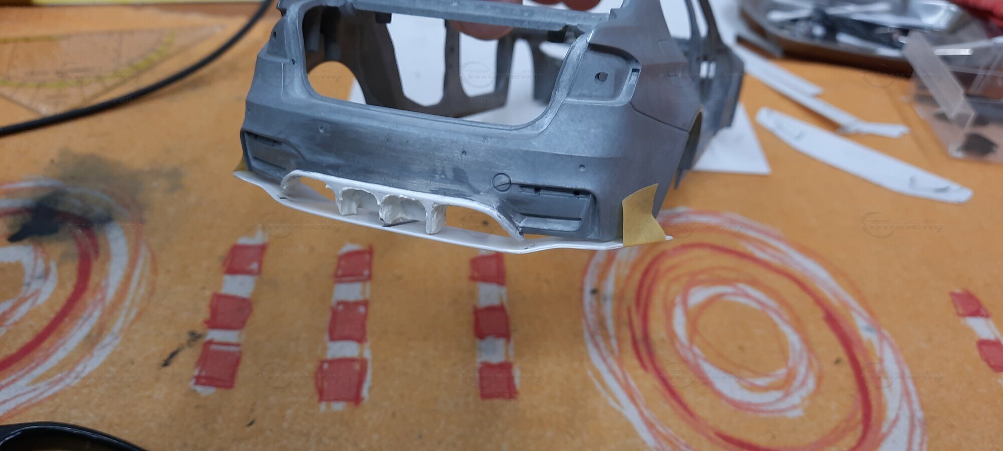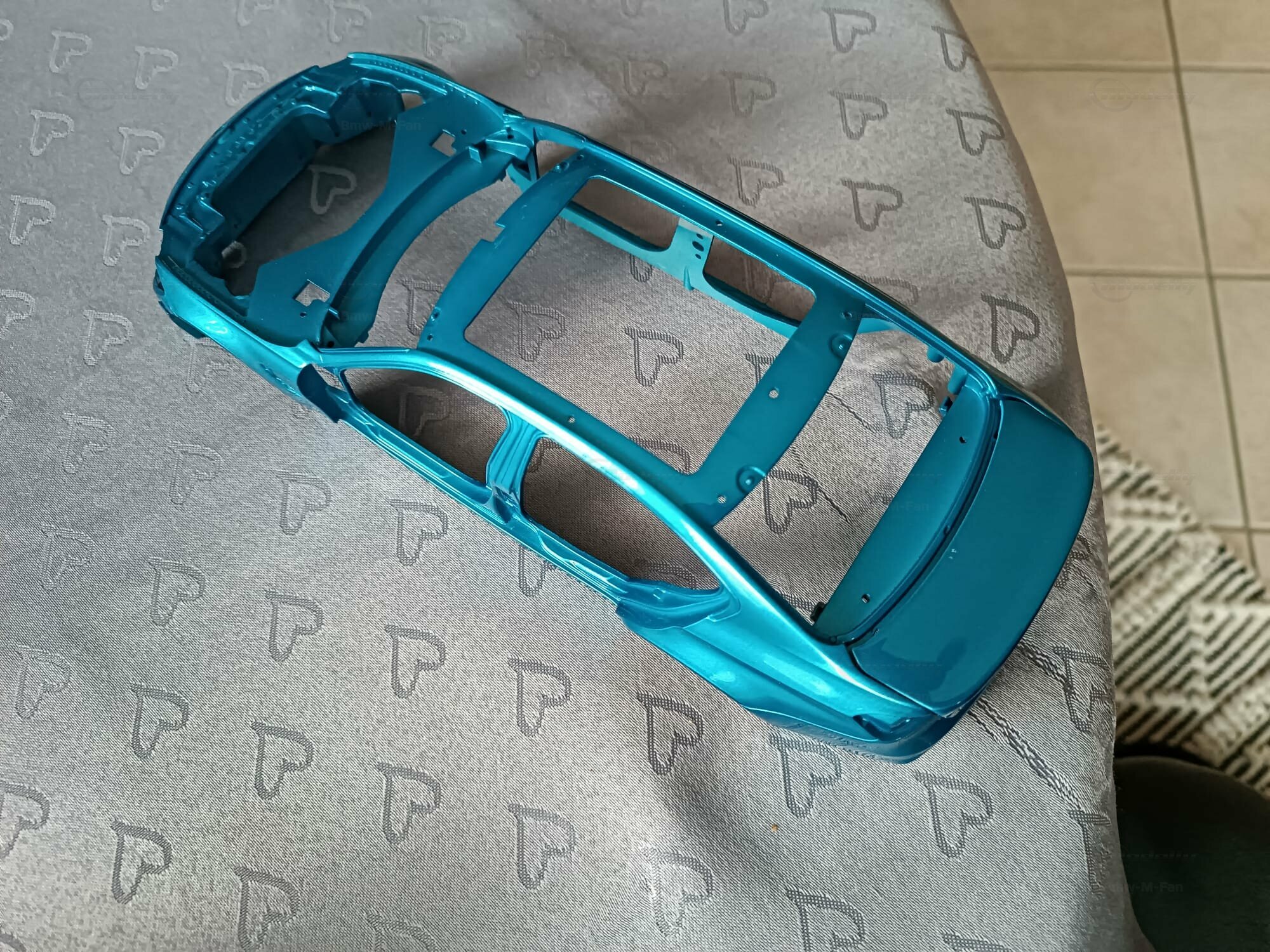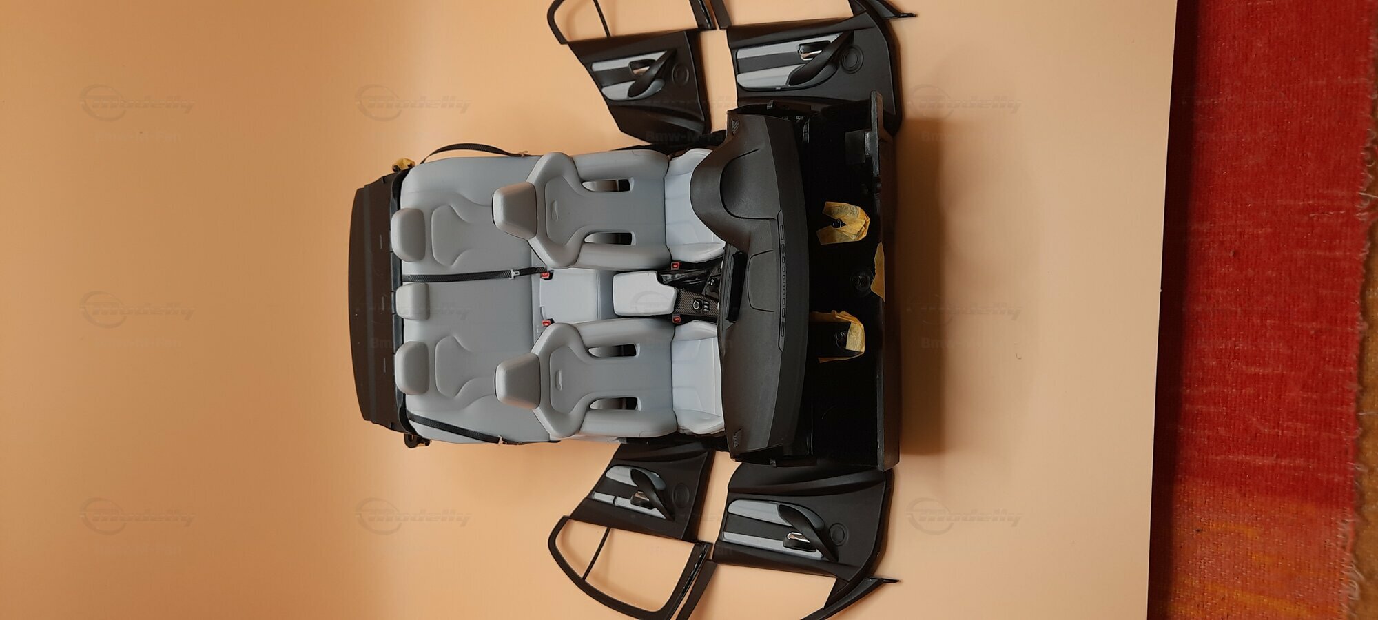 From the photos, you can see several modifications on the miniature, including a specially designed aerodynamic kit with large air vents and a front splitter. The wheels also look like they’ve been upgraded. Those forged rims could be from a European tuning company, even though the brand and model details are missing for now. The flared fenders and hinted “widebody” look of the model really catch your eye. The tiny antenna on the roof and the fine details on the mirrors add to the authenticity. Every tuning element and modification seems to have been transferred onto the model with high precision, making it super appealing to collectors.