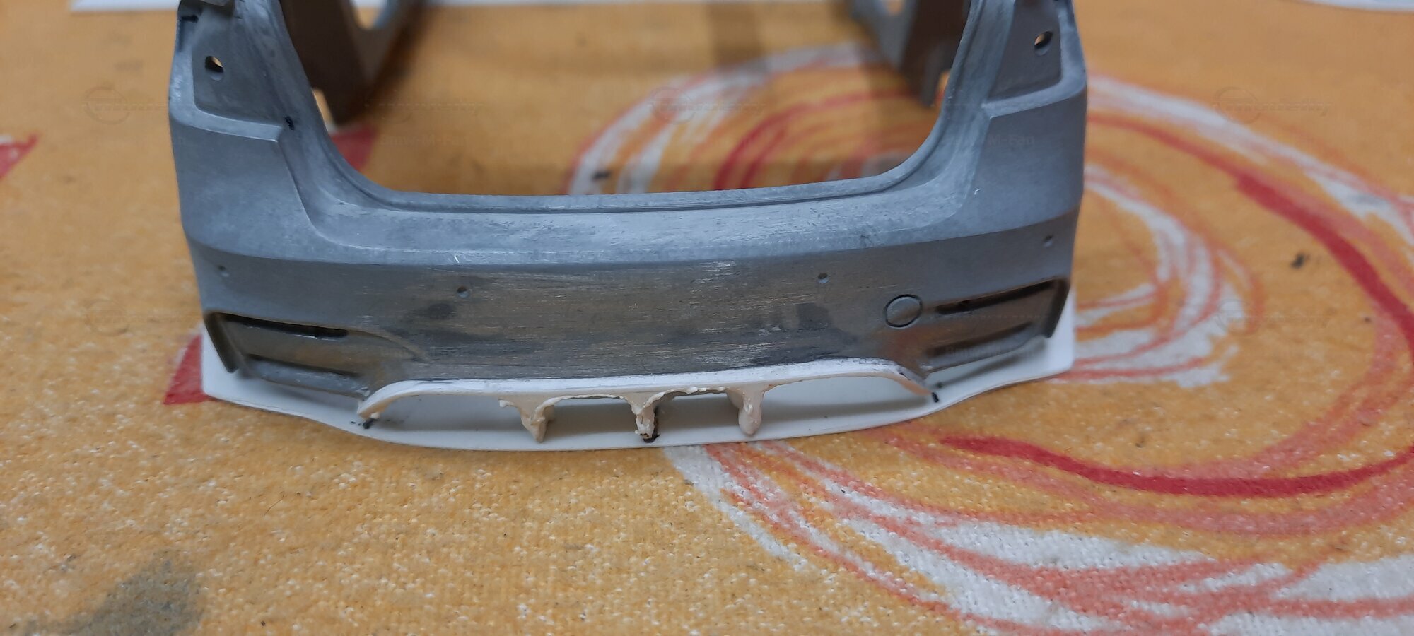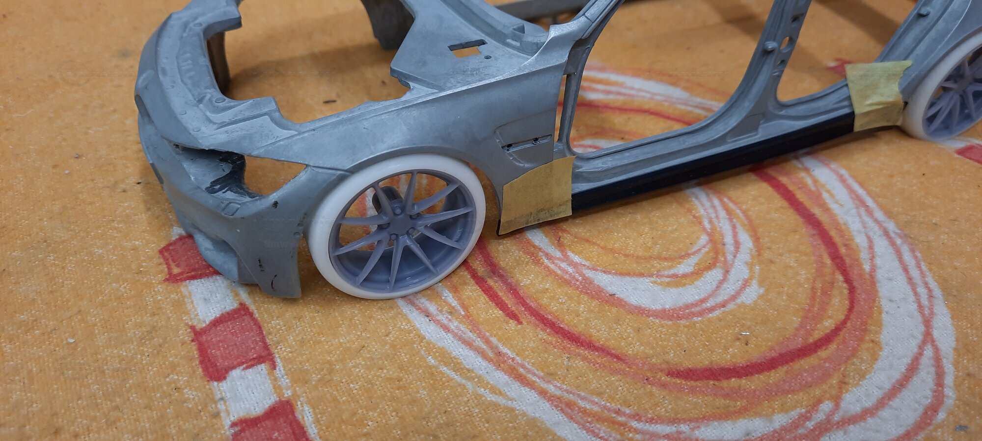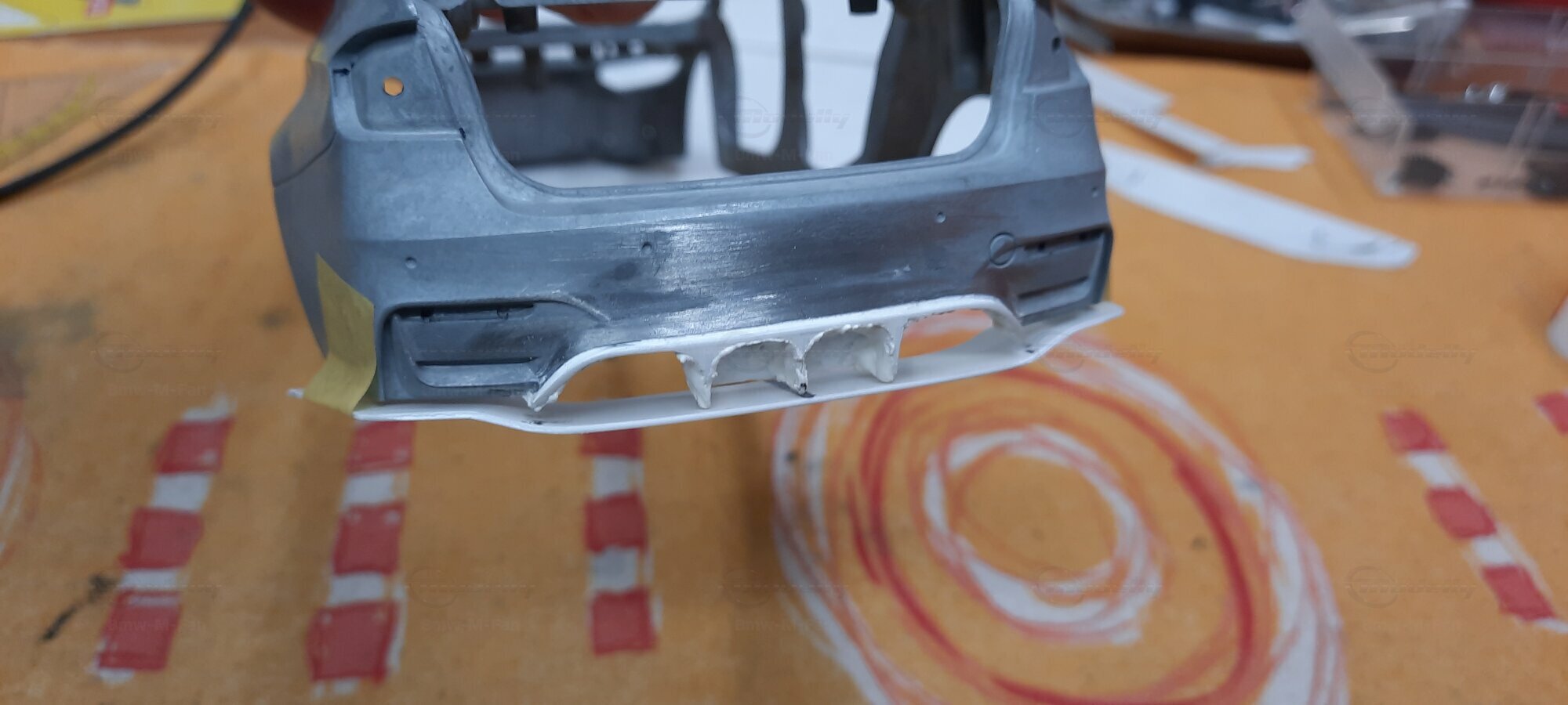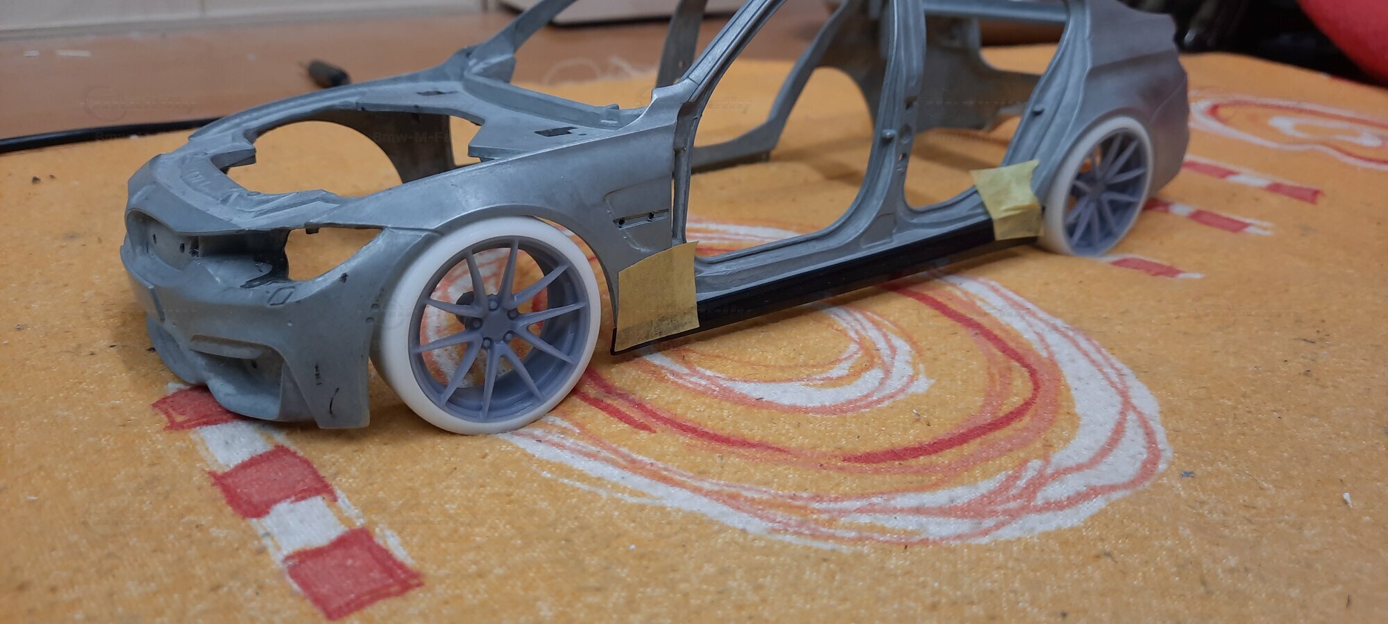 From the photos, you can see several modifications on the miniature, including a specially designed aerodynamic kit with large air vents and a front splitter. The wheels also look like they’ve been upgraded. Those forged rims could be from a European tuning company, even though the brand and model details are missing for now. The flared fenders and hinted “widebody” look of the model really catch your eye. The tiny antenna on the roof and the fine details on the mirrors add to the authenticity. Every tuning element and modification seems to have been transferred onto the model with high precision, making it super appealing to collectors.