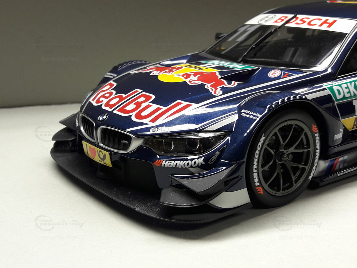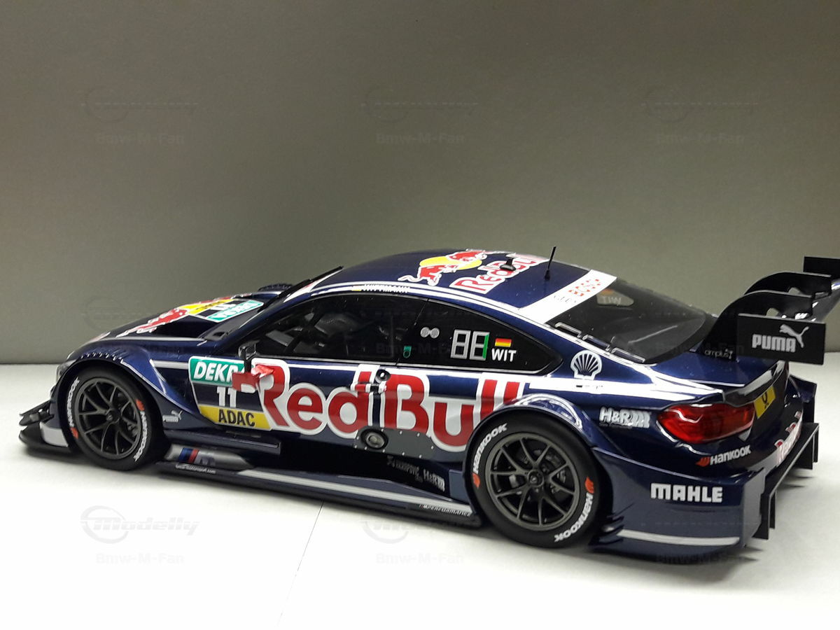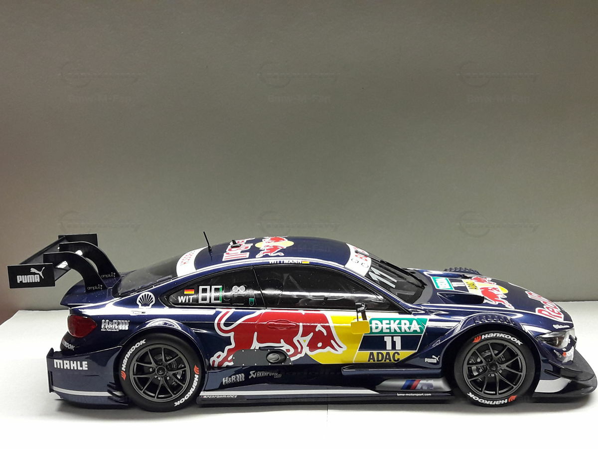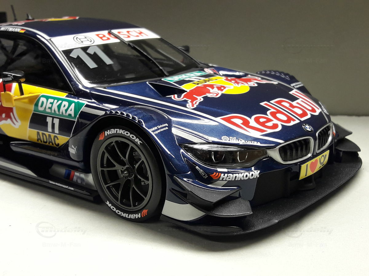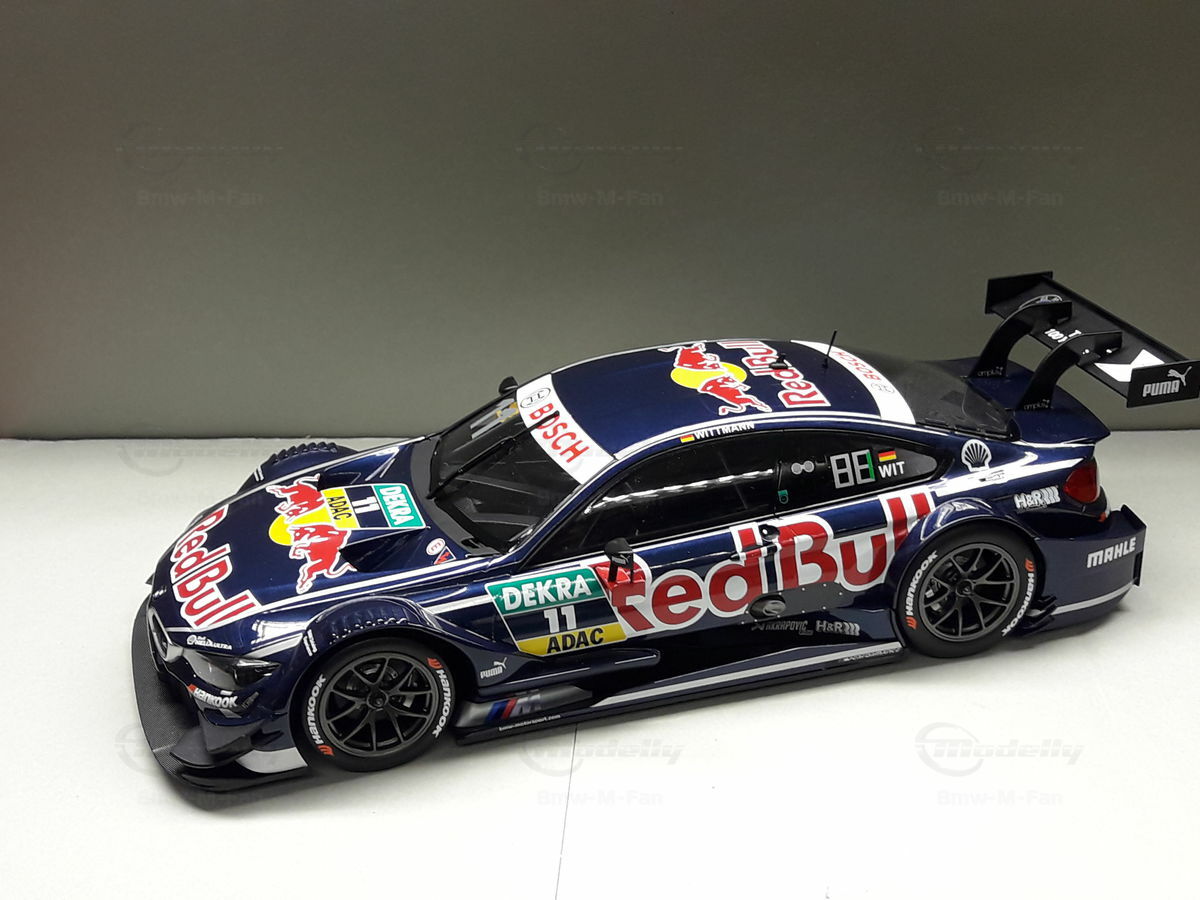 The Norev 1/18 scale model of the BMW F82 M4 DTM is a true collector's item and impresses with impressive attention to detail. This modeling was made based on diecast material, known for its durability and longevity. The model's wheels are accurately replicated, and the precise paintwork provides an authentic racing experience in miniature. The model car in the collection of Modelly member "Bmw-M-Fan" represents the 2016 DTM champion and is adorned with sponsorships like Red Bull, DEKRA, and ADAC, which are clearly visible in the photos.