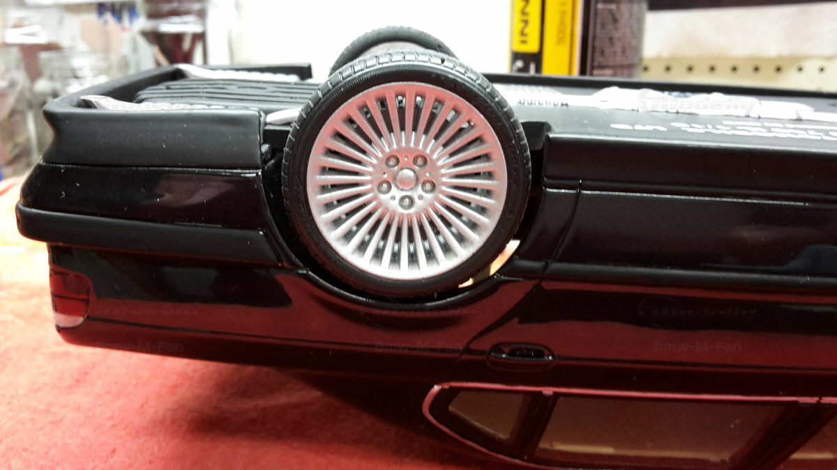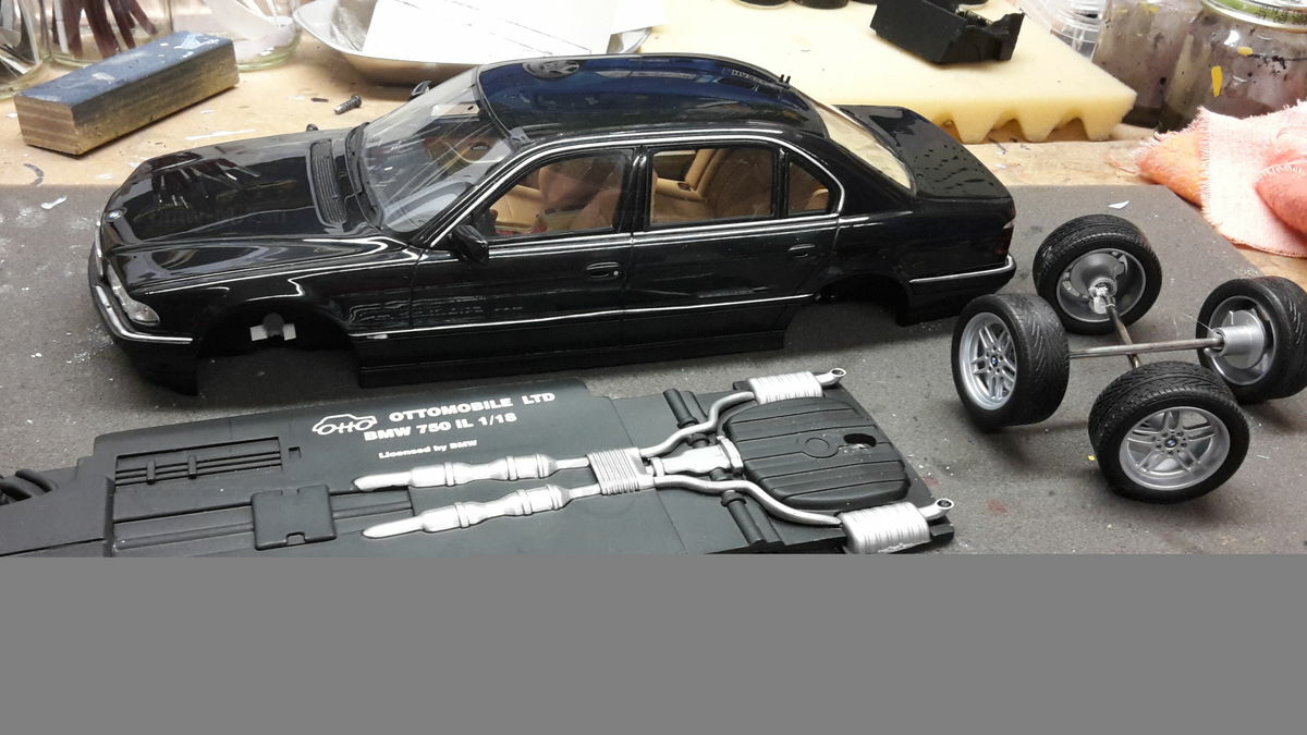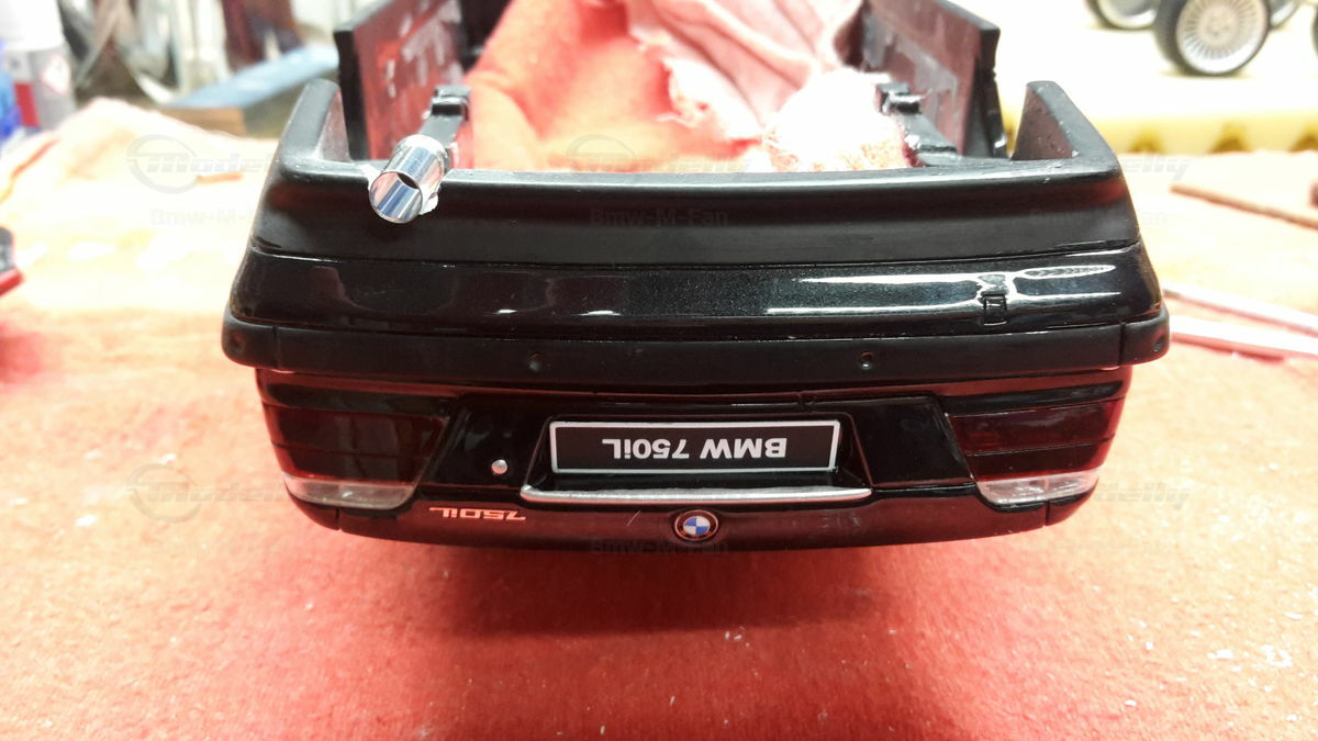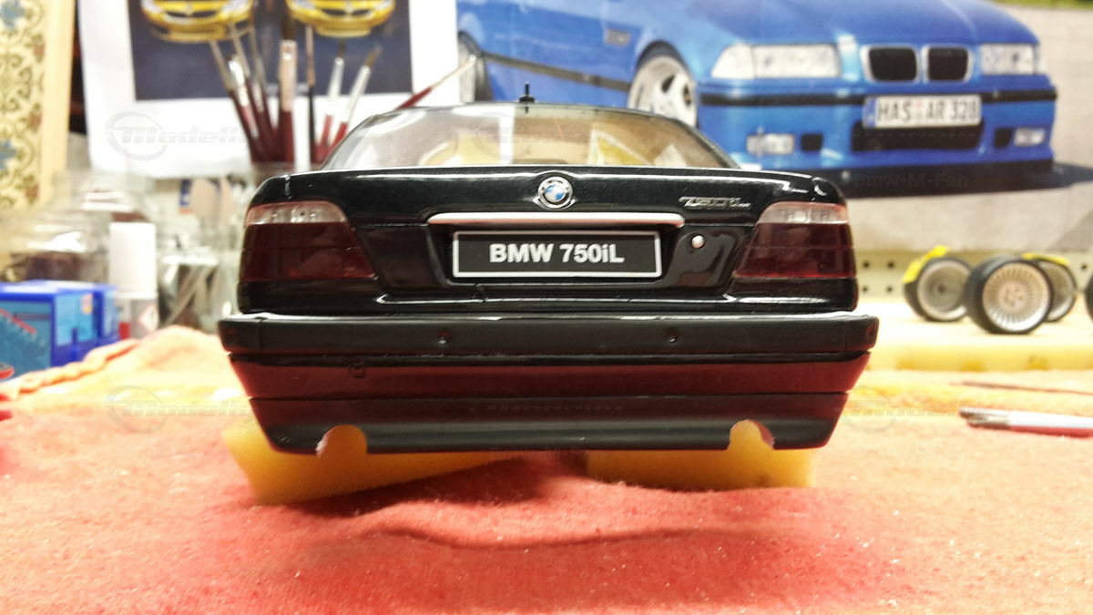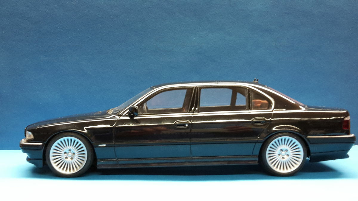 This 1/18 scale collectible model of the BMW E38 750iL is manufactured by Otto Models and is popular among model enthusiasts worldwide. Crafted from high-quality resin, the miniature allows for precise detailing and high authenticity. Owned by Modelly member "Bmw-M-Fan," this particular miniature showcases exceptional craftsmanship and attention to detail. It is important to note that this model has been modified and does not represent the original product produced by Otto Models.The Carbon Black paint finish of the model pays homage to the original color of the BMW E38. The glossy surface and accurately sculpted lines give the model an impressive aesthetic appeal. The precise replication of the headlights and the iconic BMW kidney grille immediately catch the eye. The model's wheels are also a highlight; they have been replaced with tuning wheels that further enhance the vehicle's sporty-elegant appearance.
