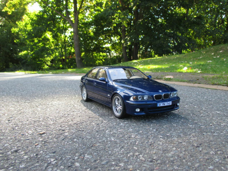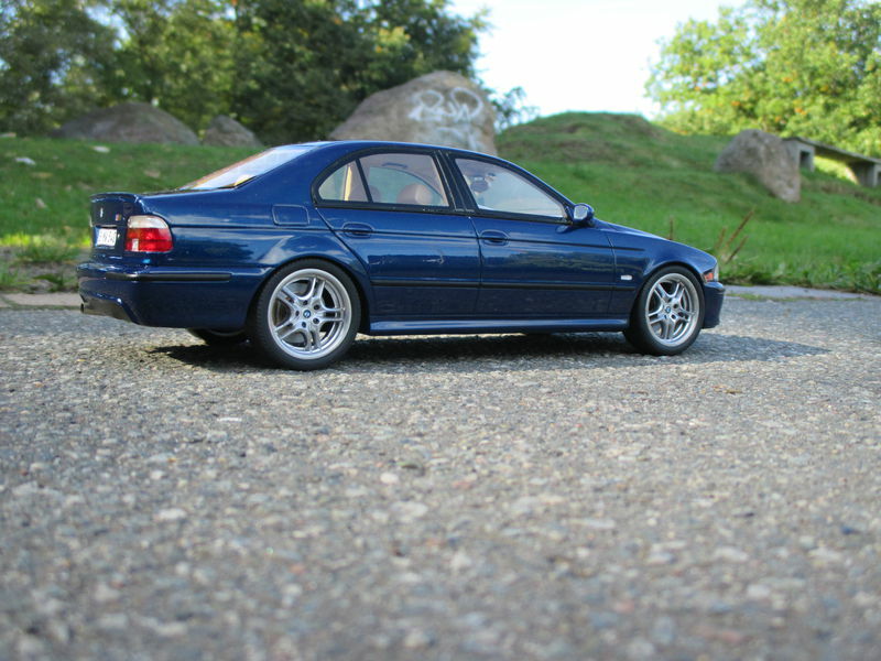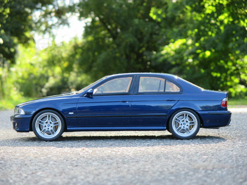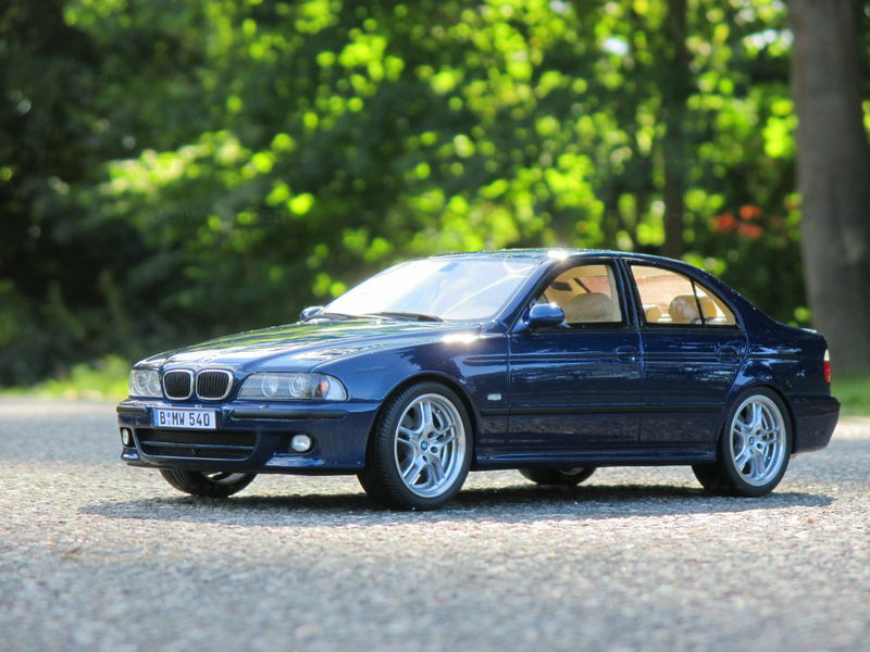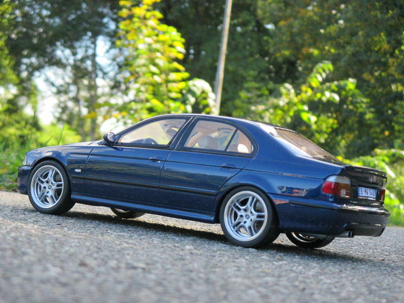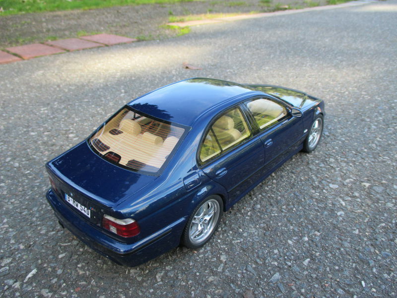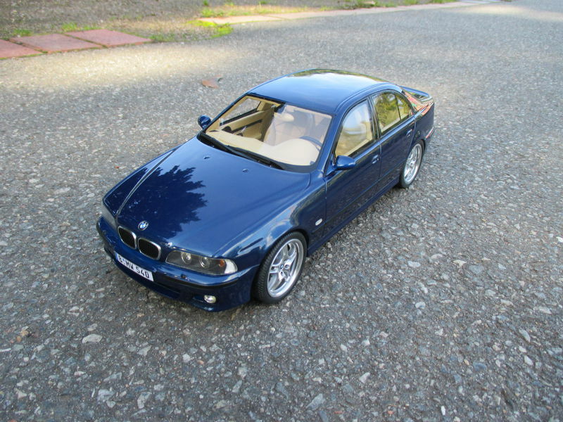 The miniature of the BMW E39 540i M-Sport Package has been modified by "Bmw-M-Fan." Various details such as the paint job and specific attachments may not align 100% with the original Otto Models product. The depicted miniature showcases a deep blue paint, possibly indicating a custom color. The silver BMW Style 32 wheels reflect the sporty character of the vehicle. Inside, the standout beige interior exudes a luxurious and authentic feel. The model impresses with its precise attention to detail, making it a special collector's item.