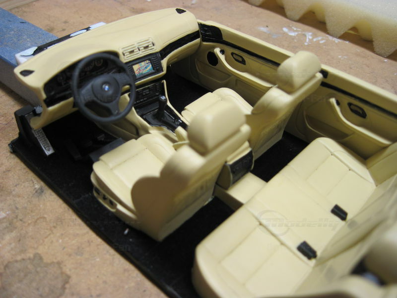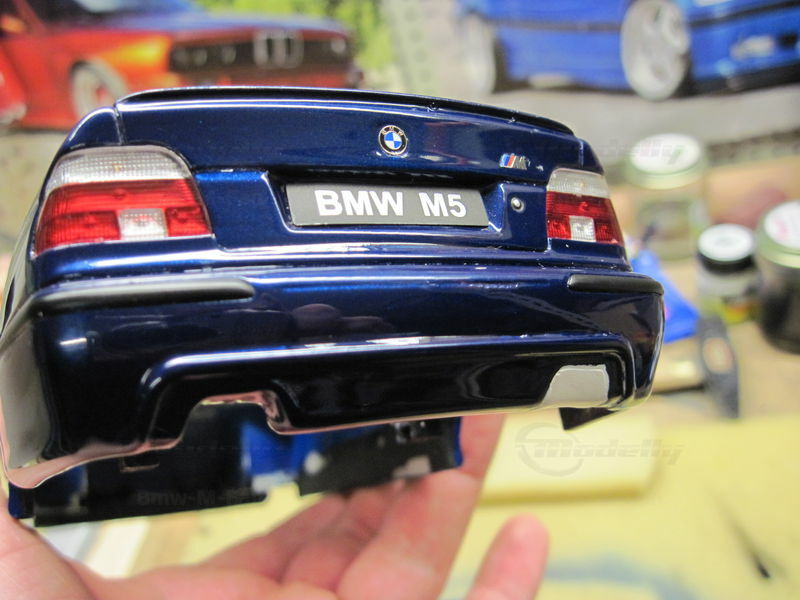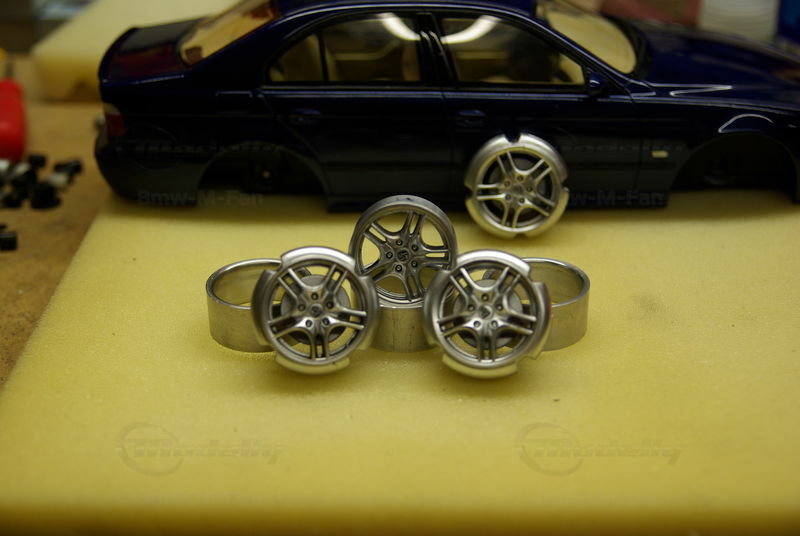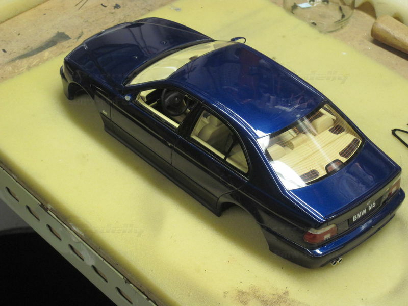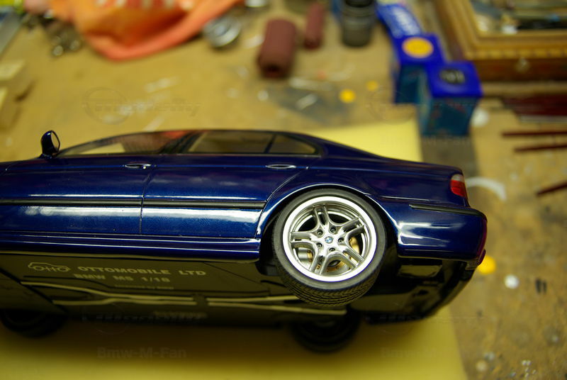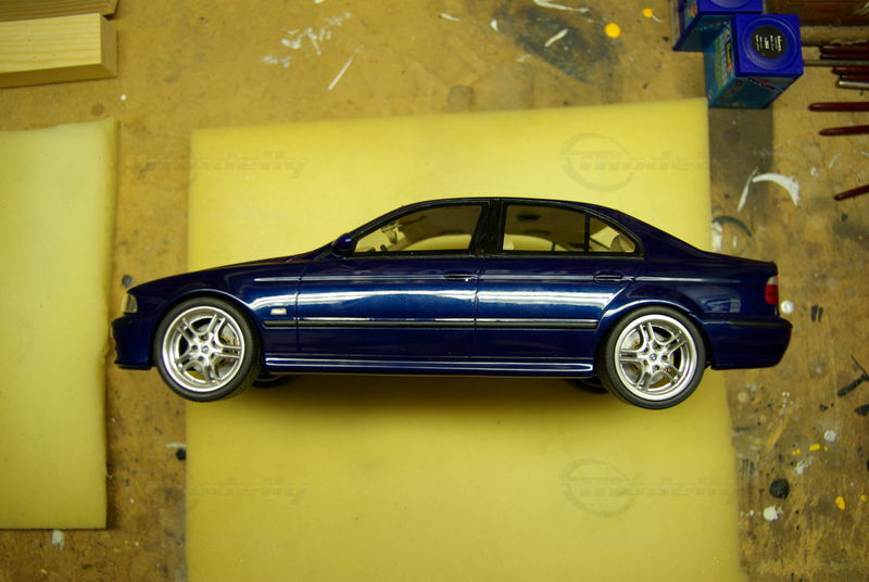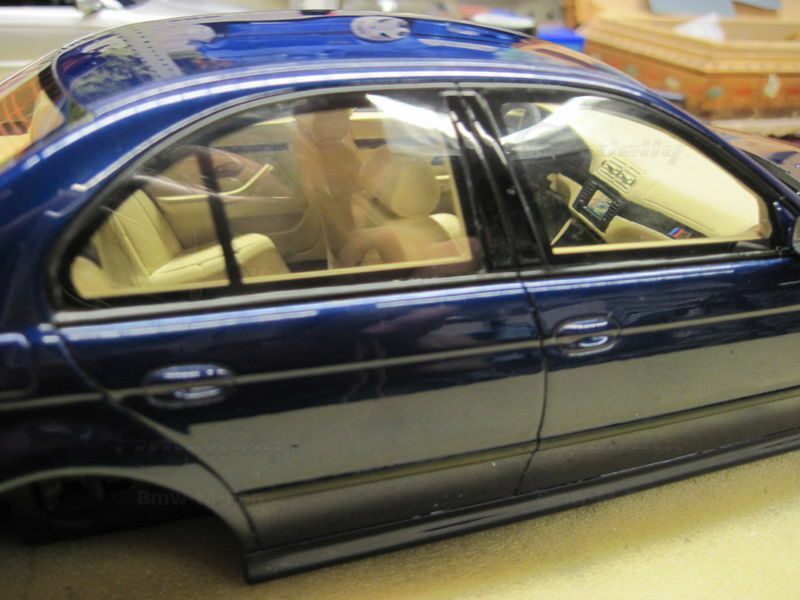 The miniature of the BMW E39 540i M-Sport Package has been modified by "Bmw-M-Fan." Various details such as the paint job and specific attachments may not align 100% with the original Otto Models product. The depicted miniature showcases a deep blue paint, possibly indicating a custom color. The silver BMW Style 32 wheels reflect the sporty character of the vehicle. Inside, the standout beige interior exudes a luxurious and authentic feel. The model impresses with its precise attention to detail, making it a special collector's item.