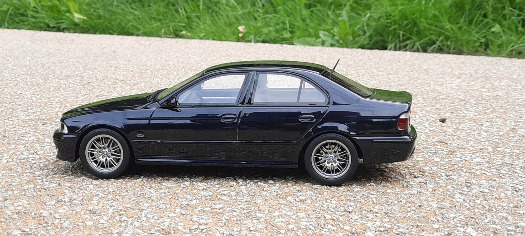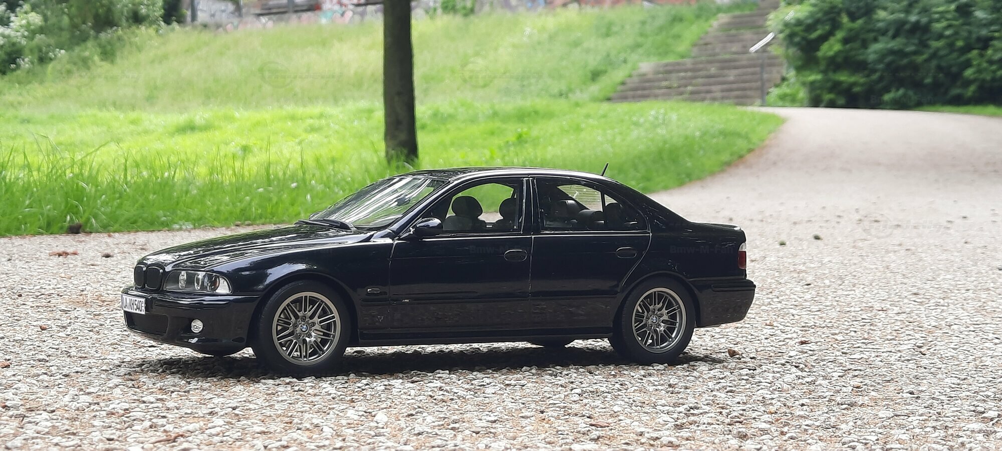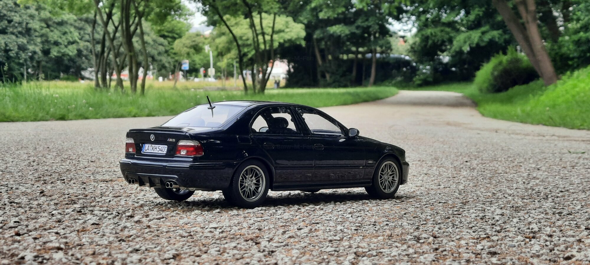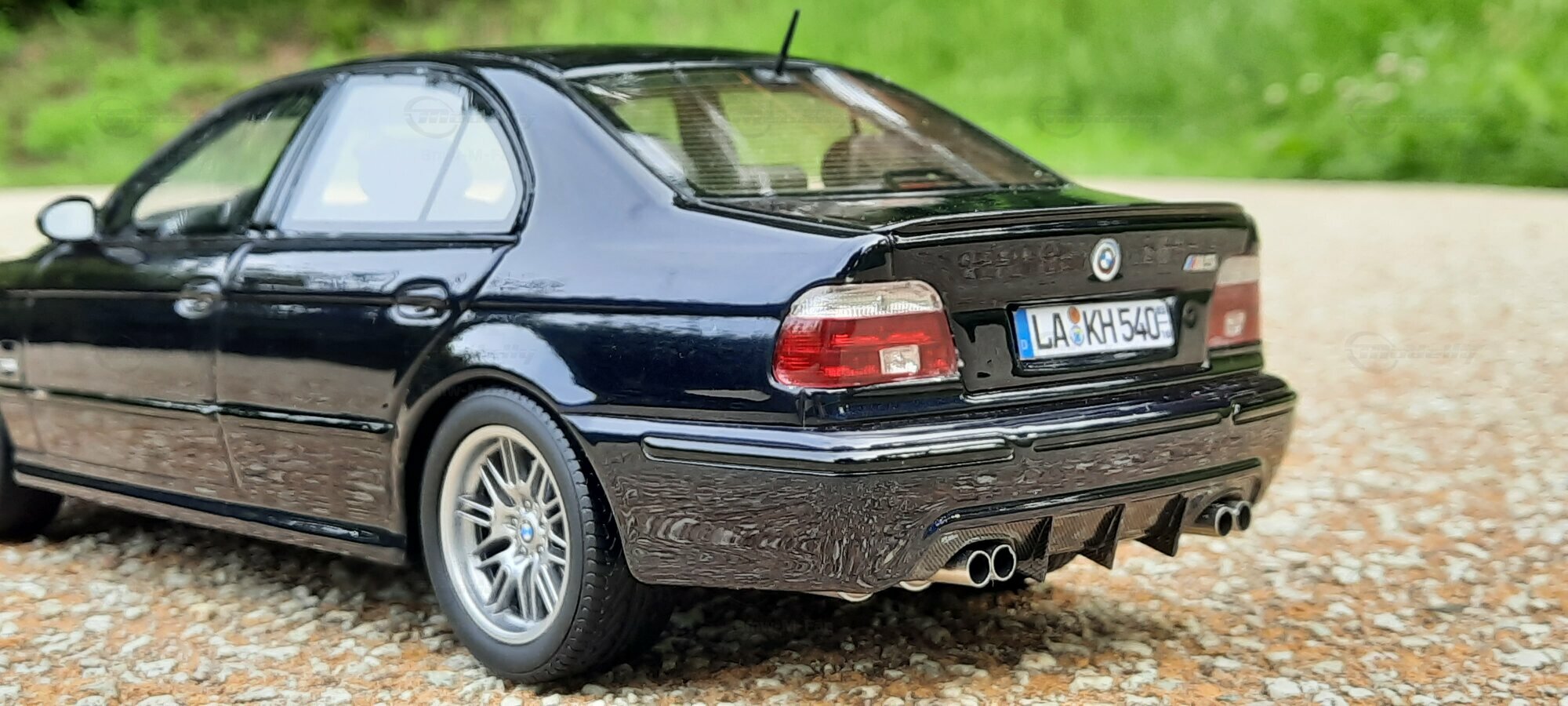 The model of the BMW E39 M5 displayed in the pictures by Modelly member "Bmw-M-Fan" showcases specific modifications that were not included in the original Otto Models package. The special deep black paint job gives the model an extra shine and highlights the clean lines and sporty features of the vehicle. The bumper adjustments and choice of license plates are particularly eye-catching, giving the model a personal touch. This attention to detail also extends to the interior, subtly showcased through the tinted windows.