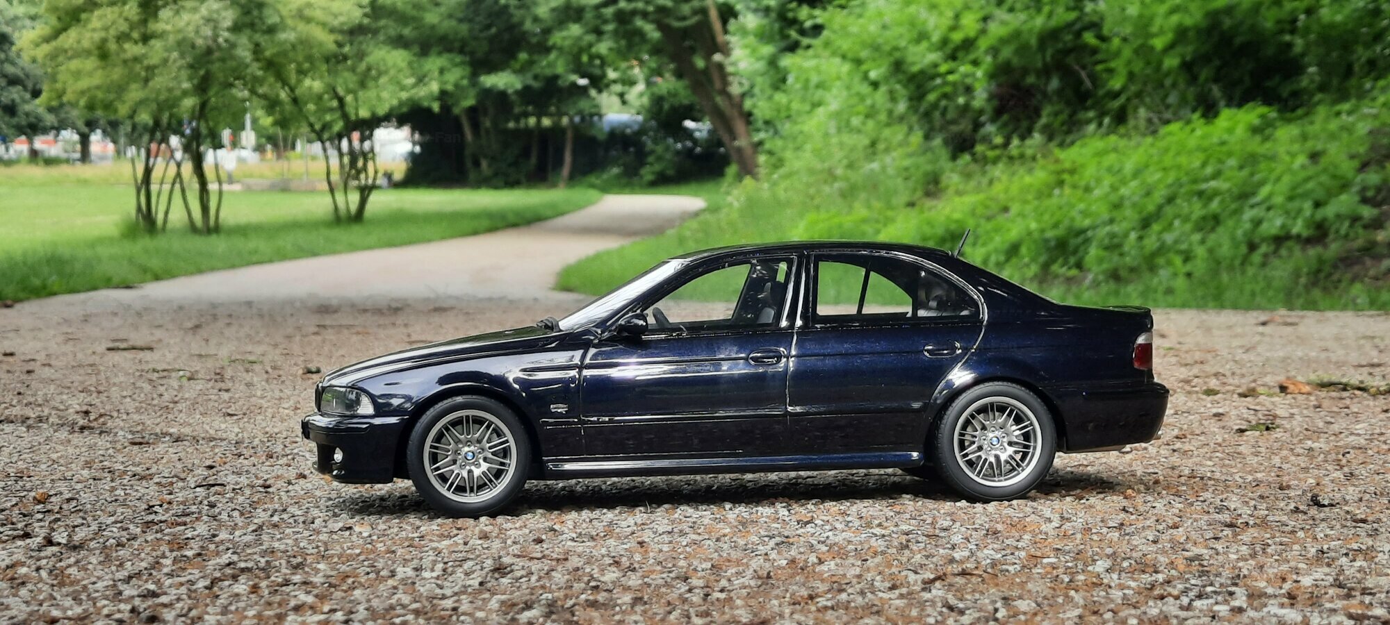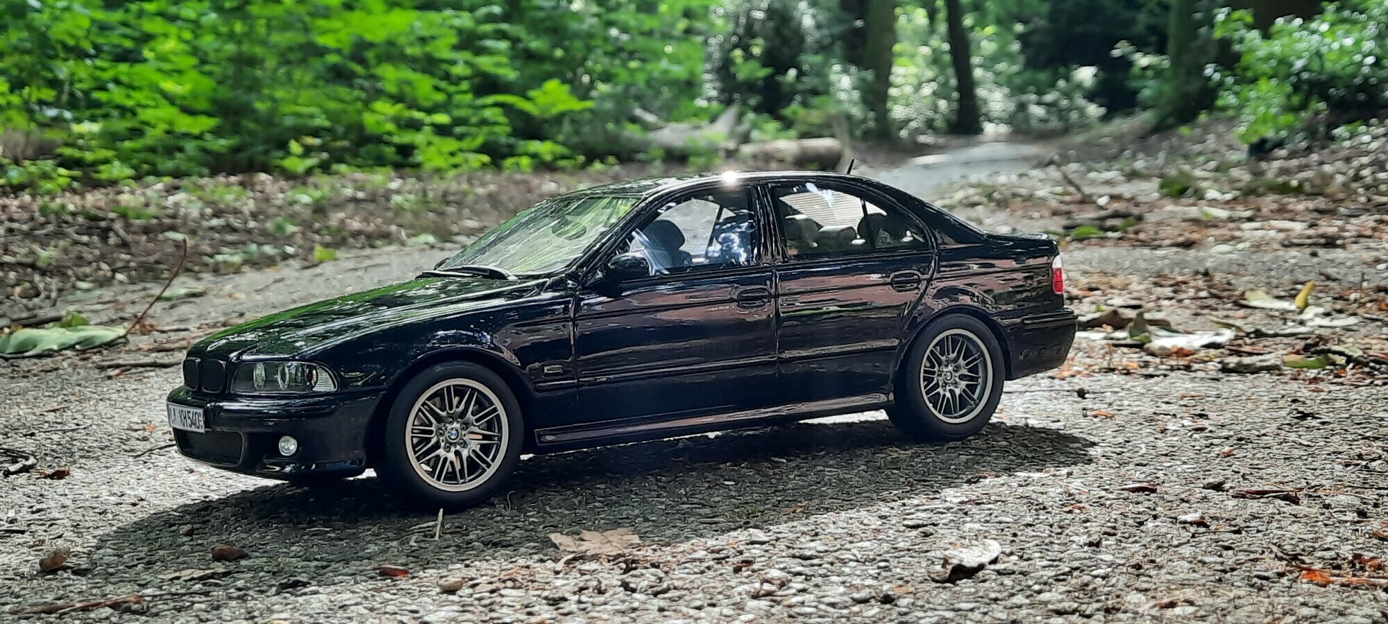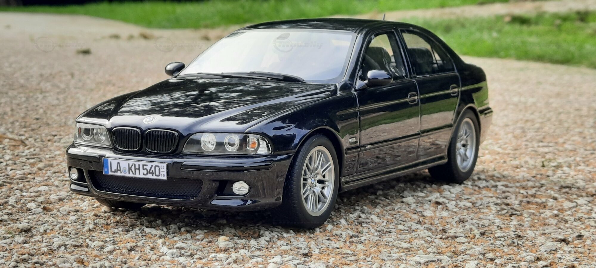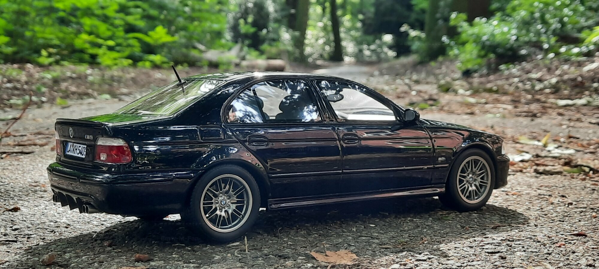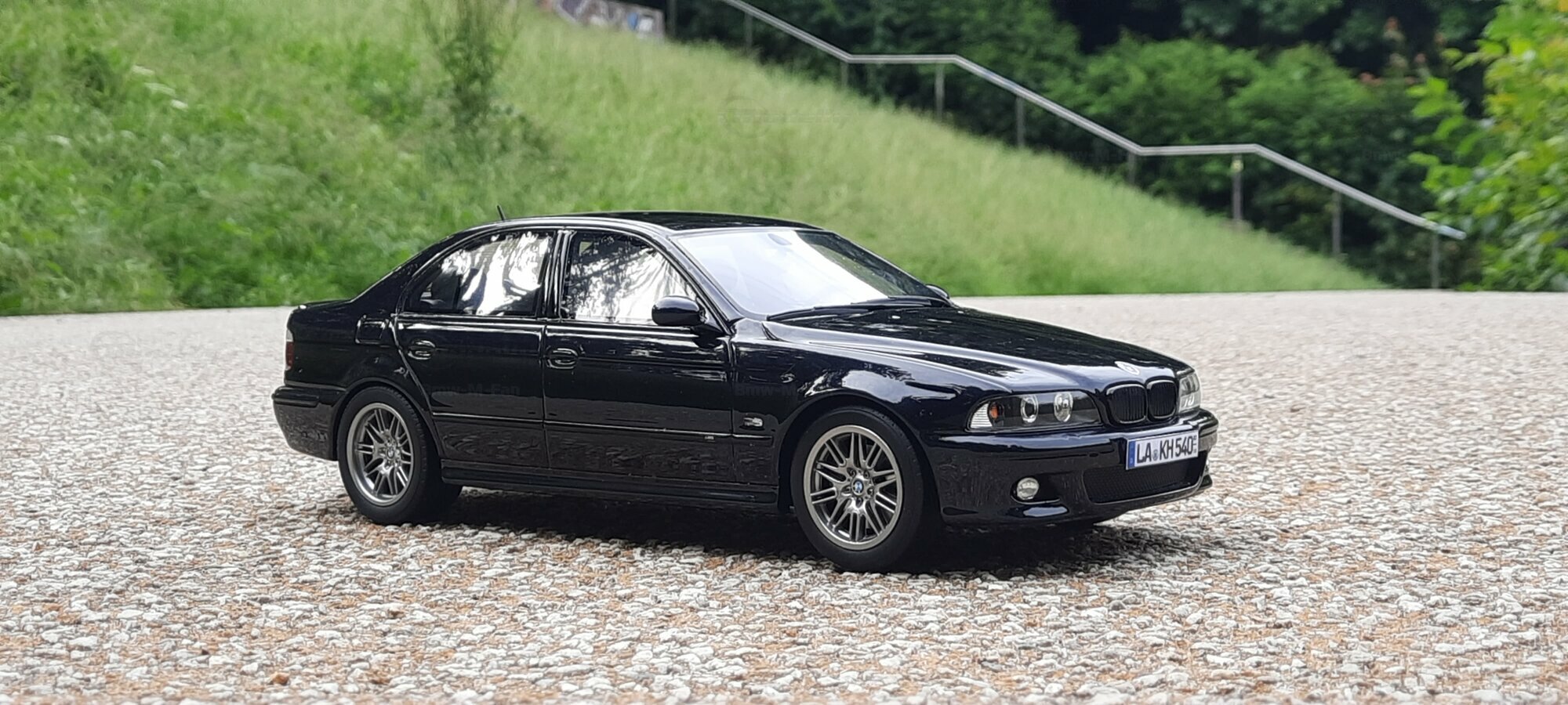 The model of the BMW E39 M5 displayed in the pictures by Modelly member "Bmw-M-Fan" showcases specific modifications that were not included in the original Otto Models package. The special deep black paint job gives the model an extra shine and highlights the clean lines and sporty features of the vehicle. The bumper adjustments and choice of license plates are particularly eye-catching, giving the model a personal touch. This attention to detail also extends to the interior, subtly showcased through the tinted windows.