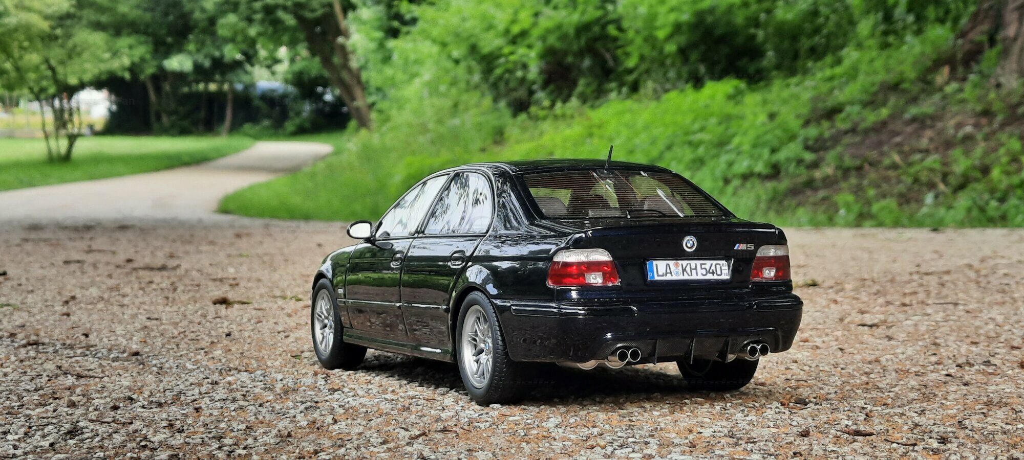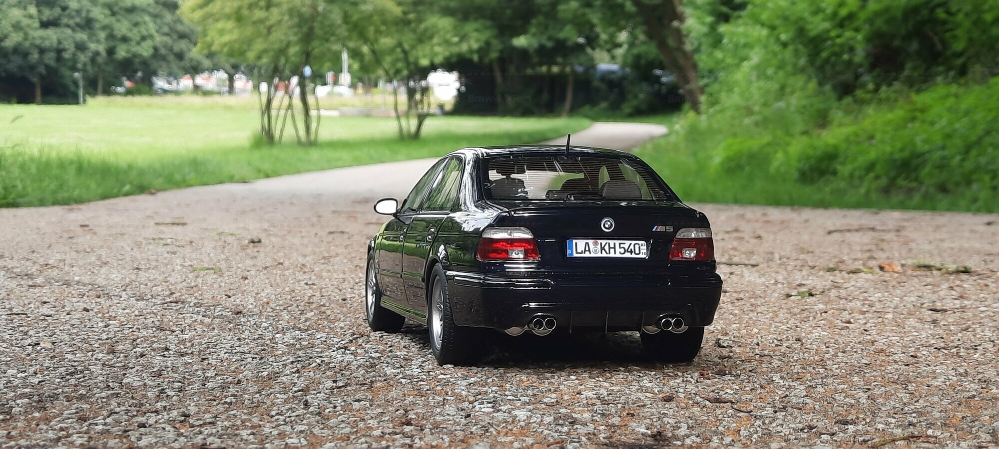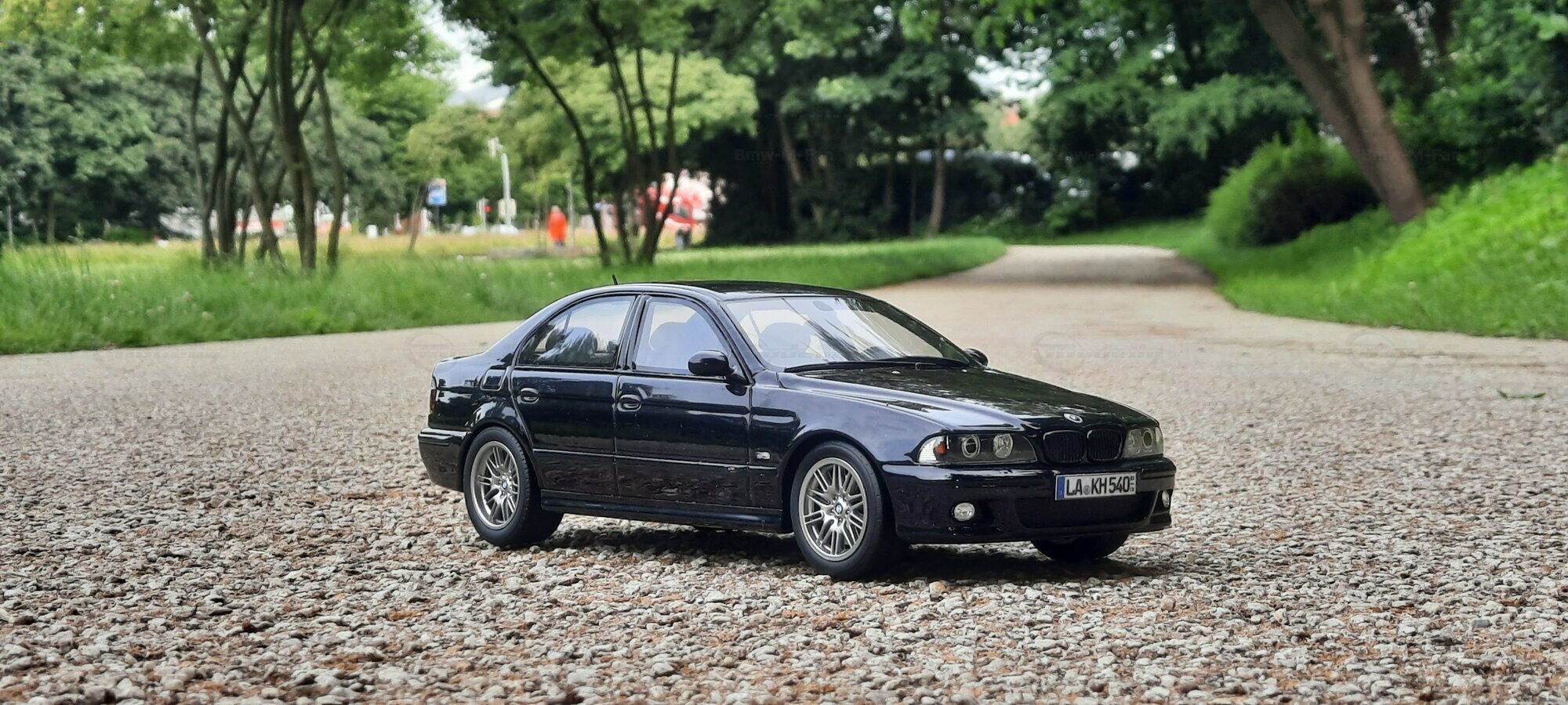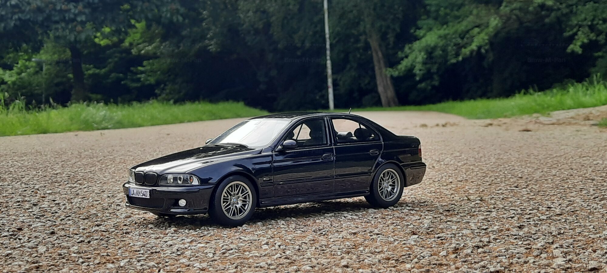 The model of the BMW E39 M5 displayed in the pictures by Modelly member "Bmw-M-Fan" showcases specific modifications that were not included in the original Otto Models package. The special deep black paint job gives the model an extra shine and highlights the clean lines and sporty features of the vehicle. The bumper adjustments and choice of license plates are particularly eye-catching, giving the model a personal touch. This attention to detail also extends to the interior, subtly showcased through the tinted windows.
