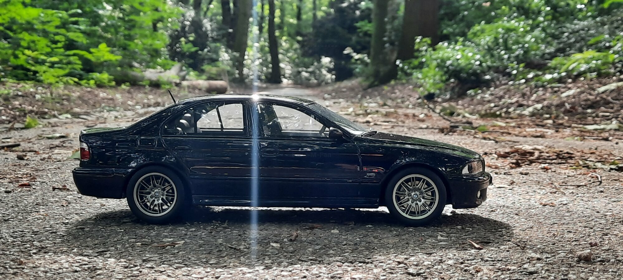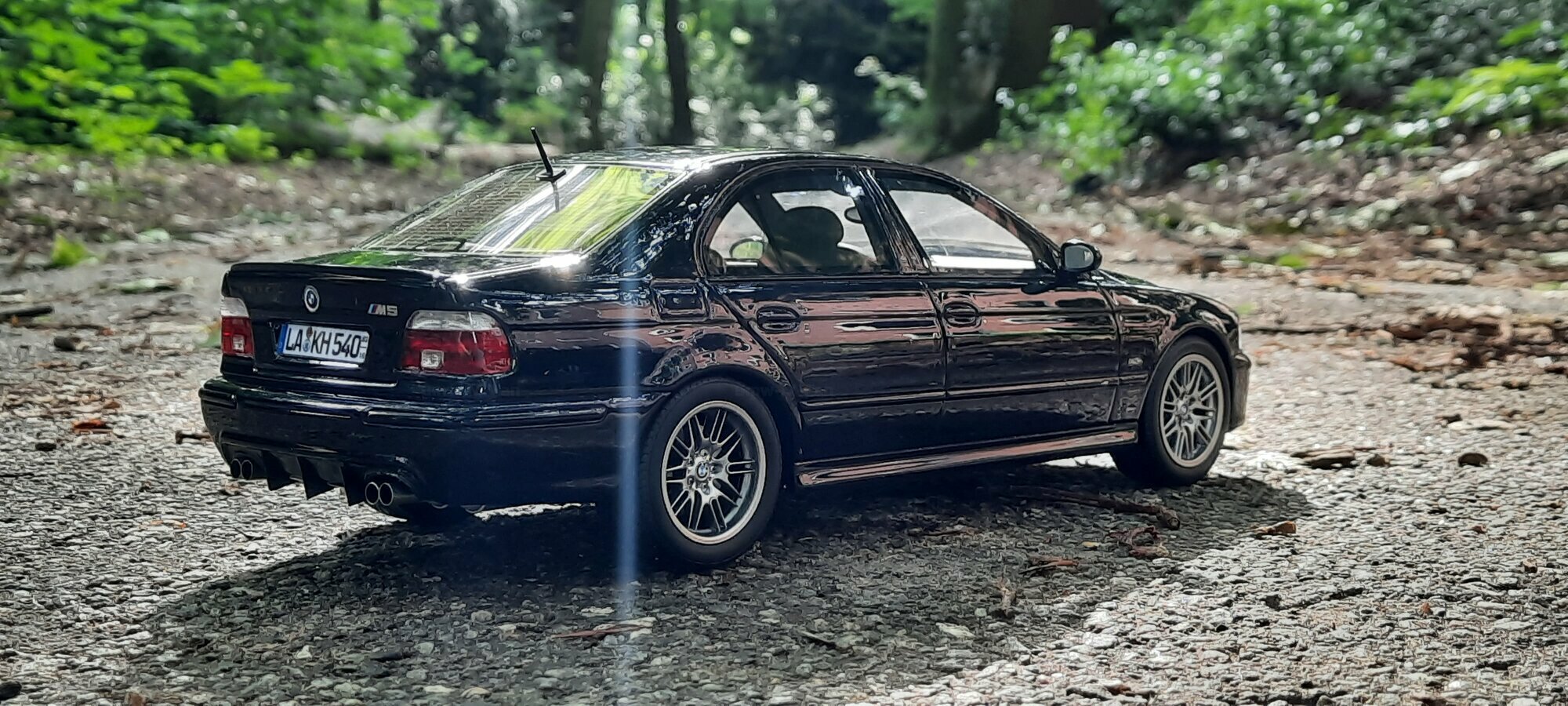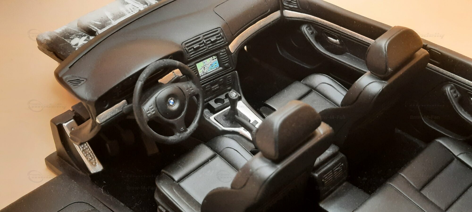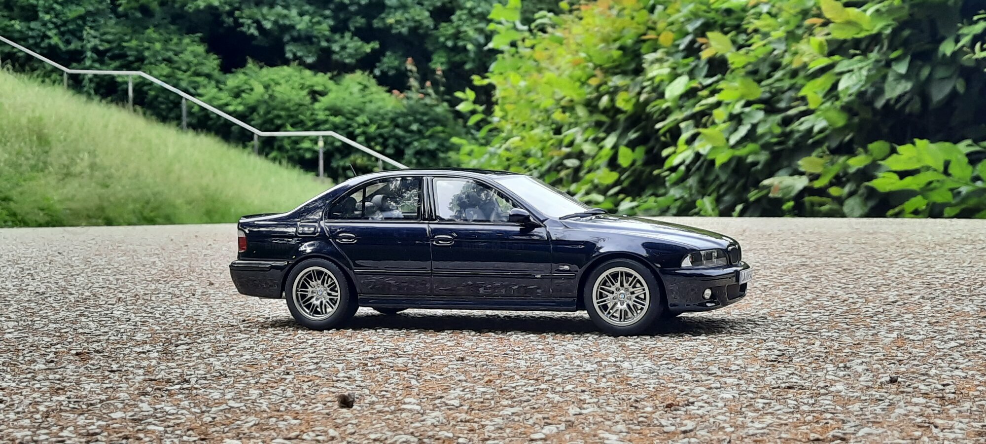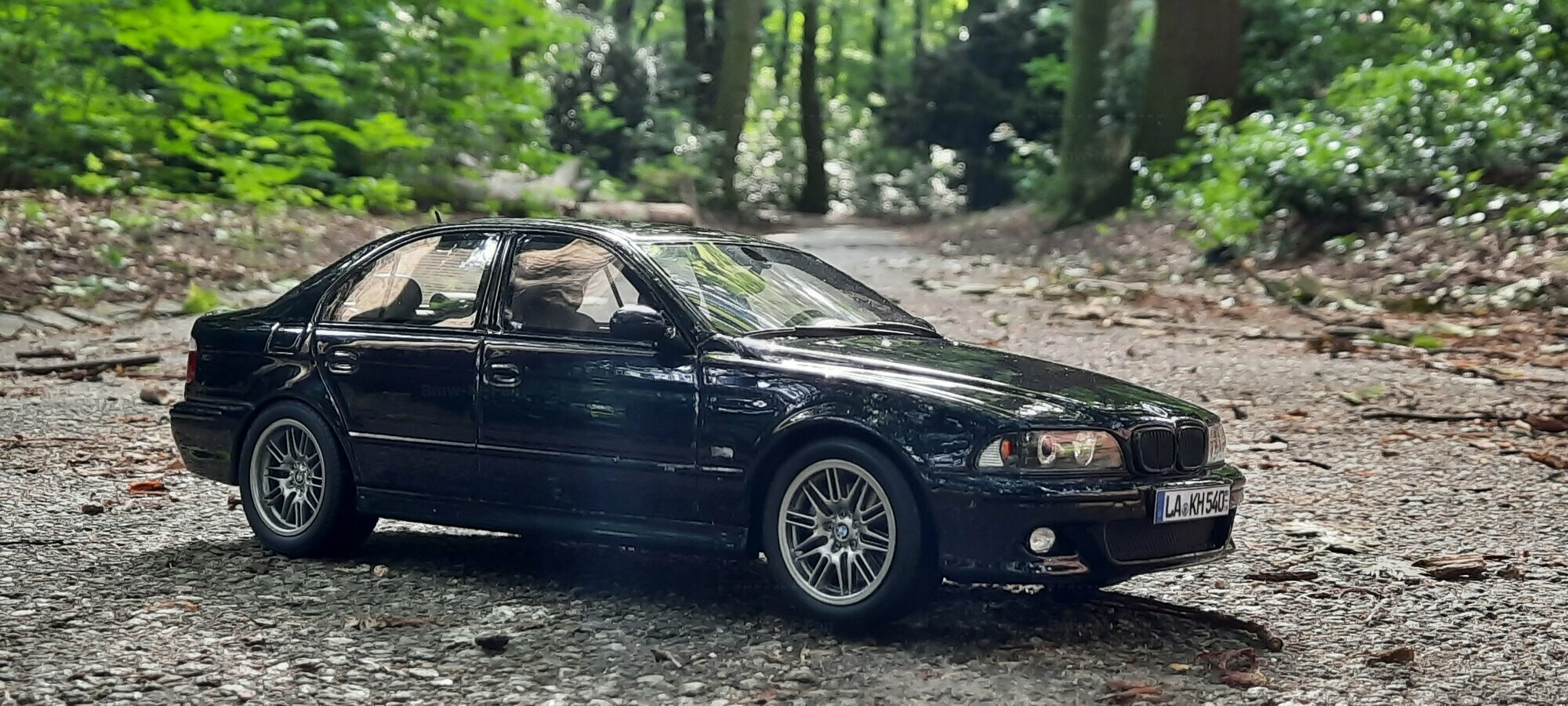 The model of the BMW E39 M5 displayed in the pictures by Modelly member "Bmw-M-Fan" showcases specific modifications that were not included in the original Otto Models package. The special deep black paint job gives the model an extra shine and highlights the clean lines and sporty features of the vehicle. The bumper adjustments and choice of license plates are particularly eye-catching, giving the model a personal touch. This attention to detail also extends to the interior, subtly showcased through the tinted windows.