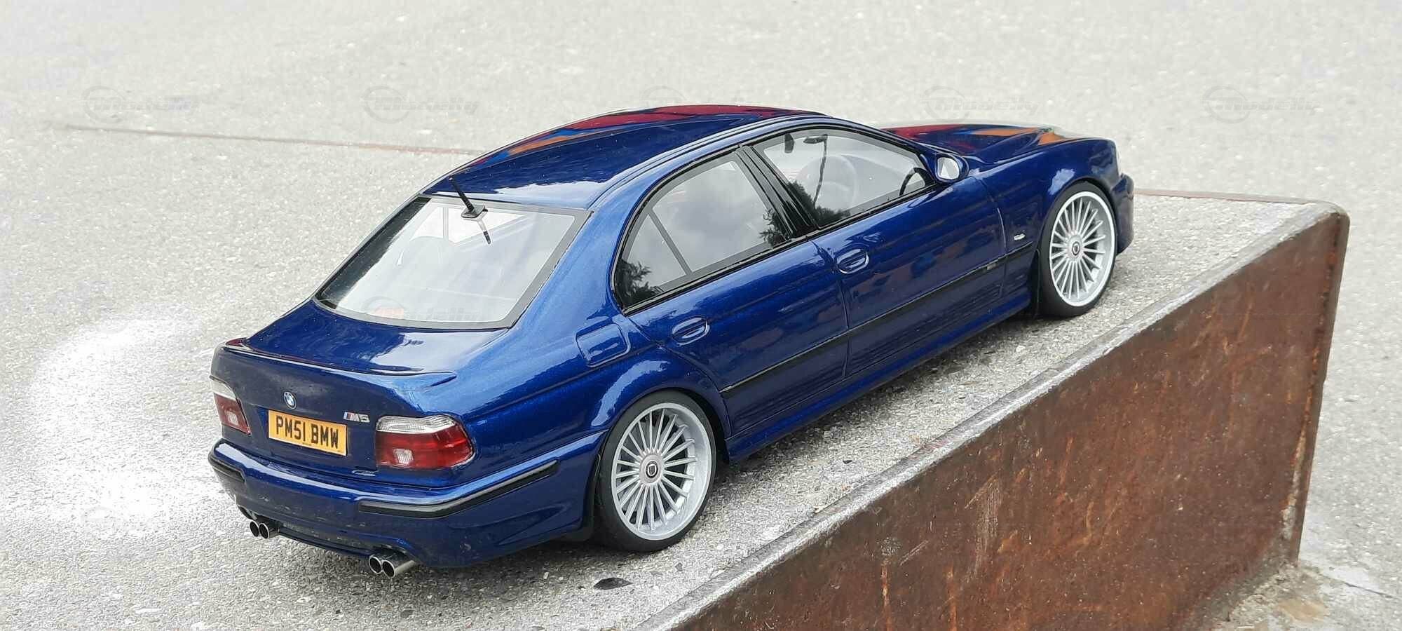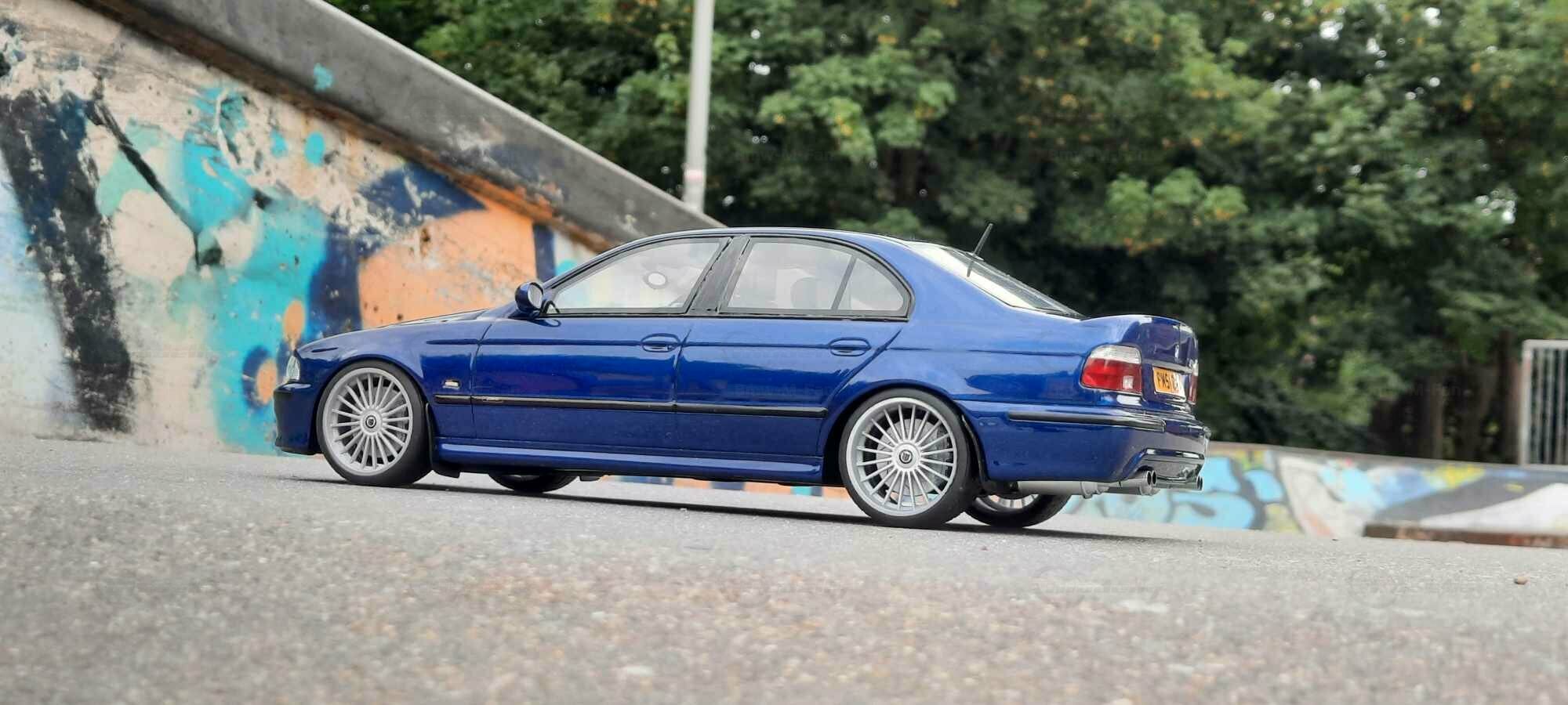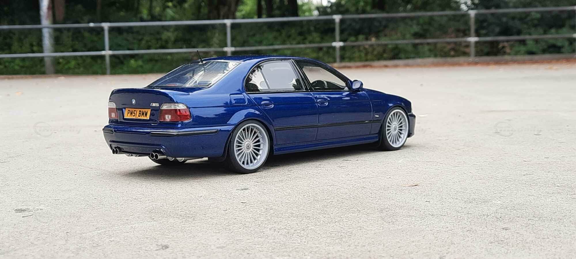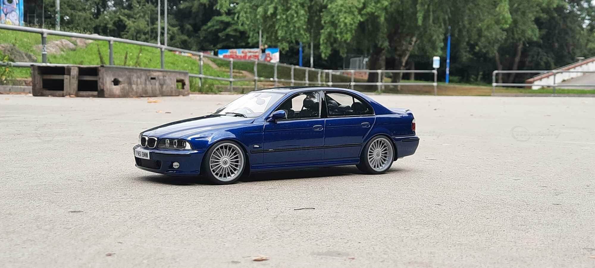 For collectors, the BMW E39 M5 model in 1/18 scale produced by Otto Models is a remarkable replica. The model impresses with its precise representation of the body and fine details. This model car is made of resin, a material known for its ability to allow detailed and finely structured reproductions. One of the distinctive features of the miniature car are the special wheels. The displayed wheels could be from Alpina, known for their high-quality and unique designs. However, it cannot be definitively confirmed whether the wheels are actually from Alpina. This model from Otto Models is not in its original condition but has been modified afterwards, and therefore does not represent the product initially produced by the manufacturer.