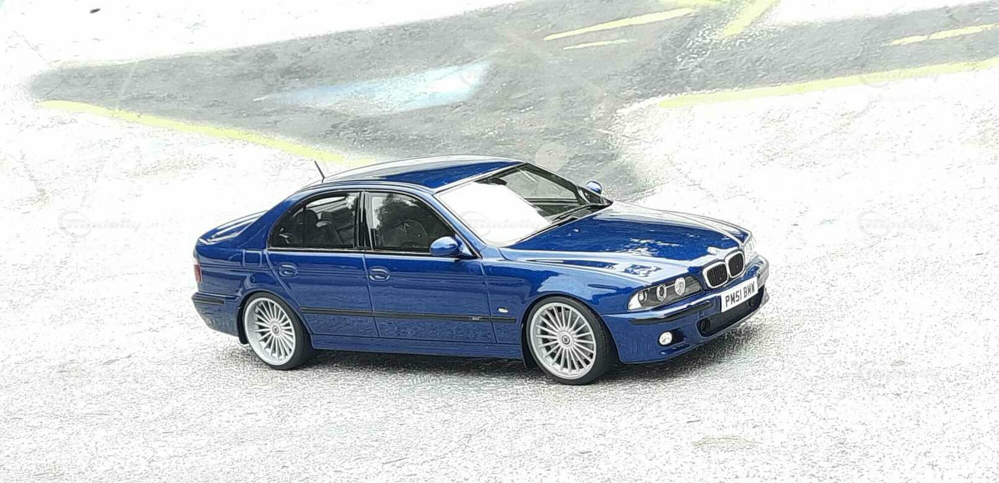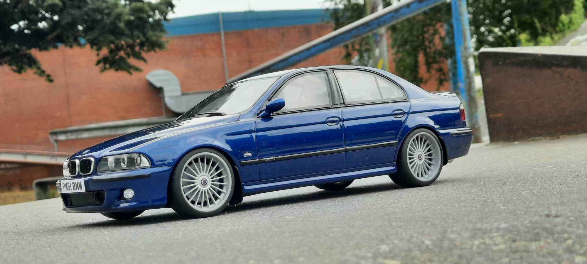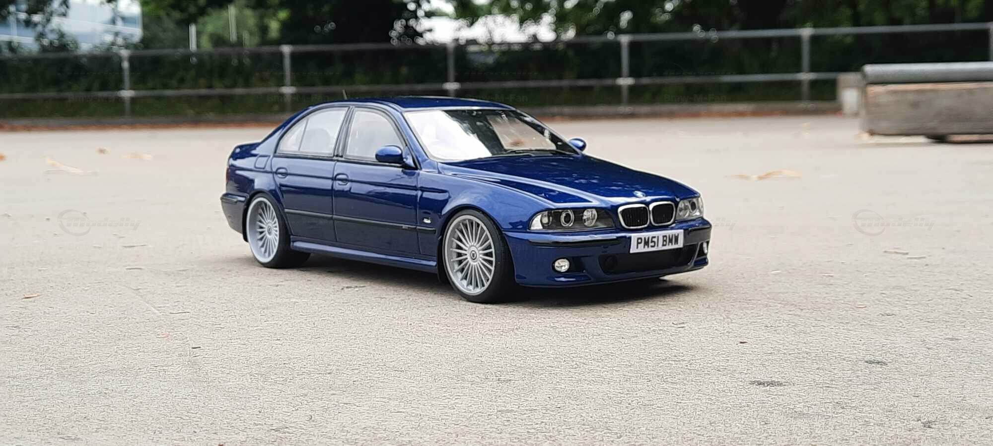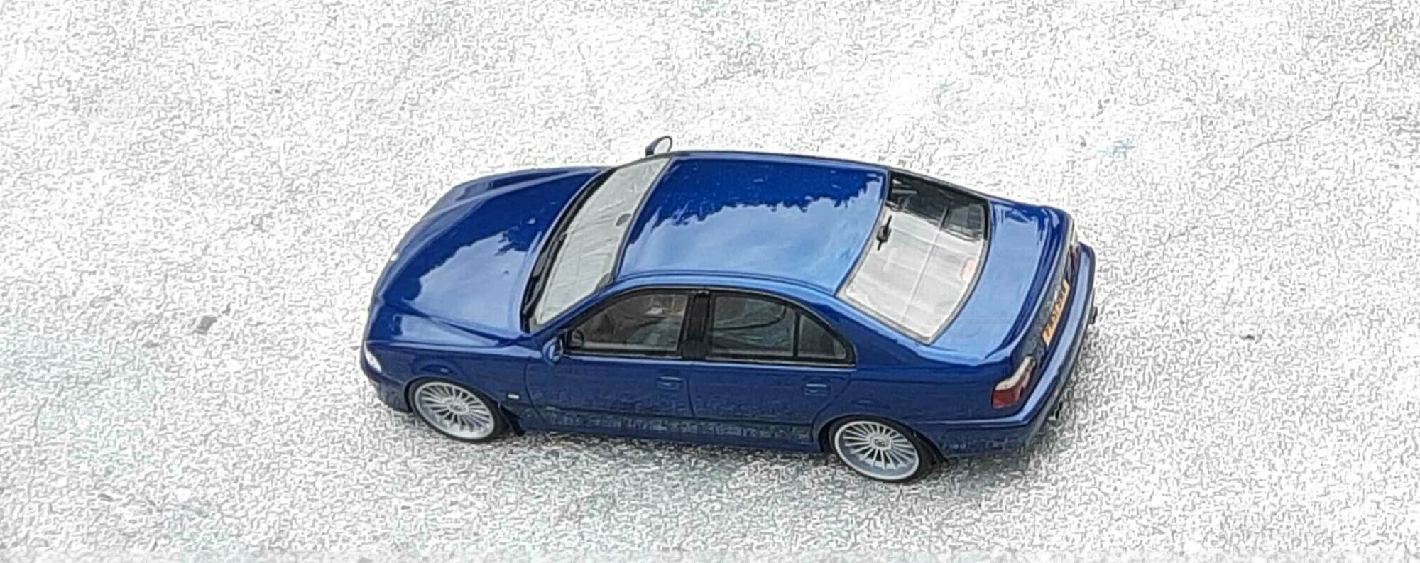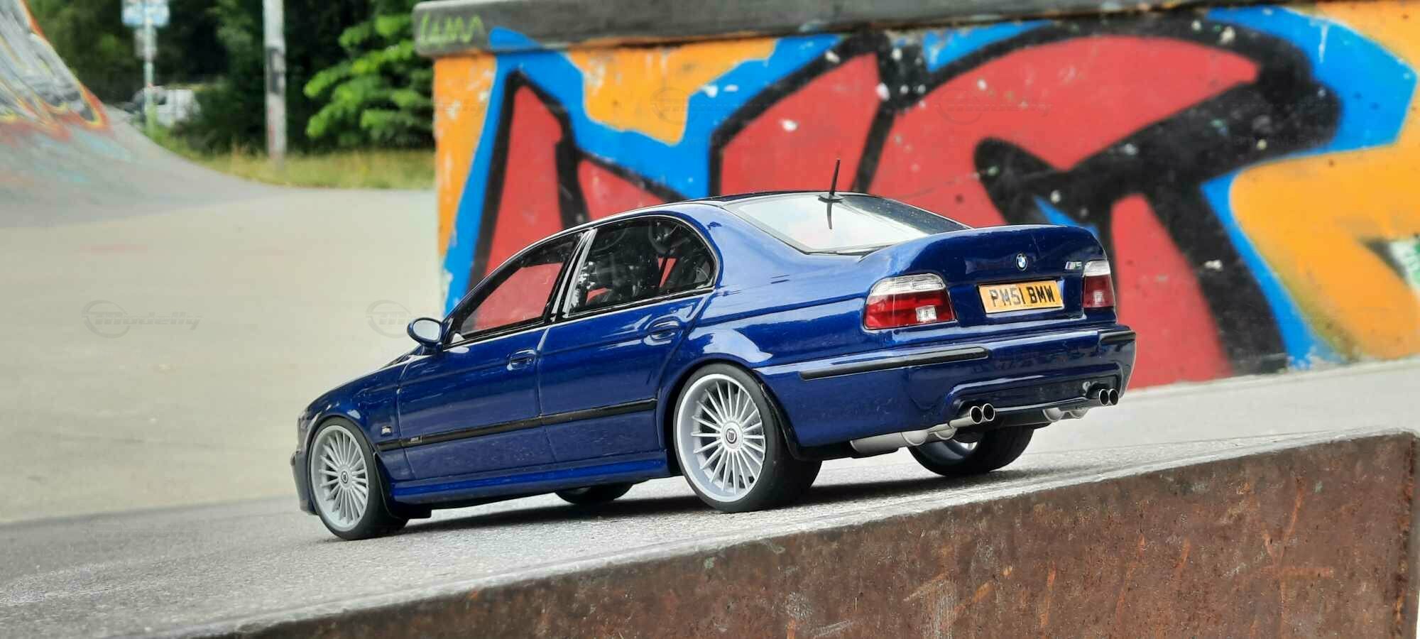 For collectors, the BMW E39 M5 model in 1/18 scale produced by Otto Models is a remarkable replica. The model impresses with its precise representation of the body and fine details. This model car is made of resin, a material known for its ability to allow detailed and finely structured reproductions. One of the distinctive features of the miniature car are the special wheels. The displayed wheels could be from Alpina, known for their high-quality and unique designs. However, it cannot be definitively confirmed whether the wheels are actually from Alpina. This model from Otto Models is not in its original condition but has been modified afterwards, and therefore does not represent the product initially produced by the manufacturer.