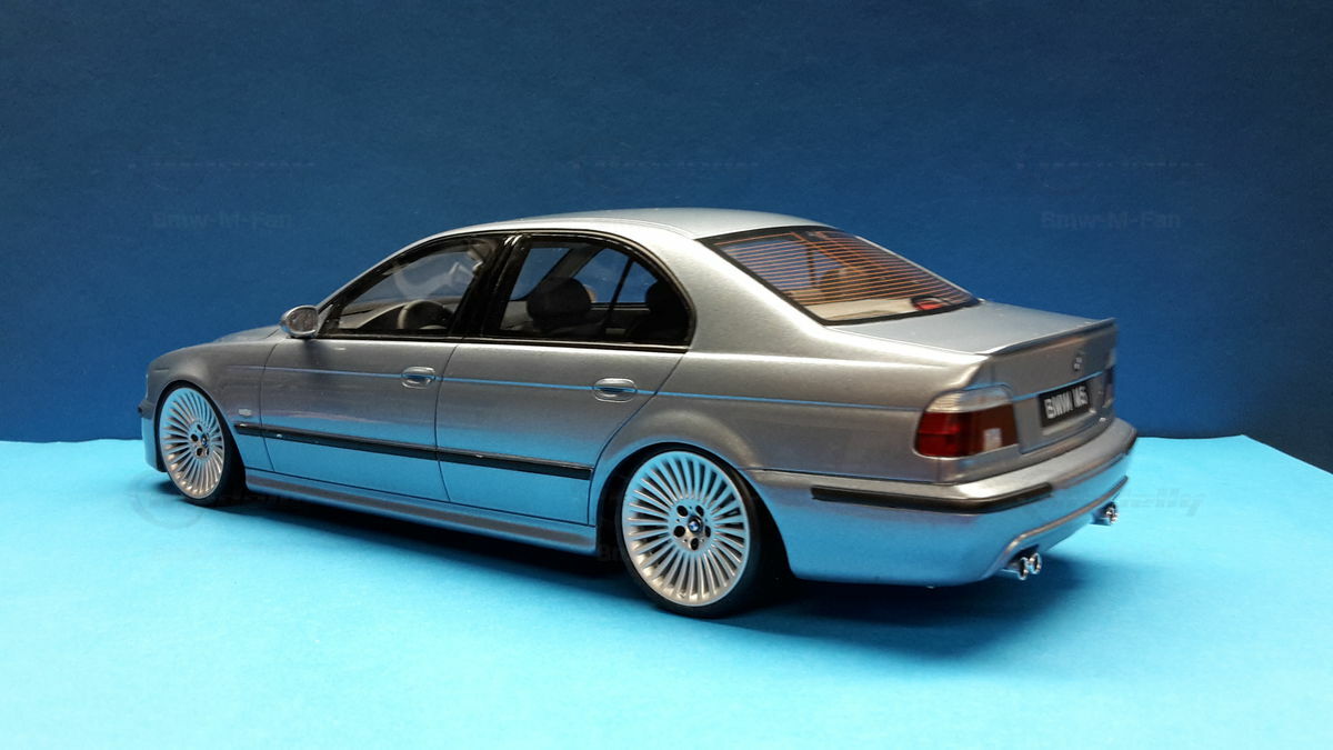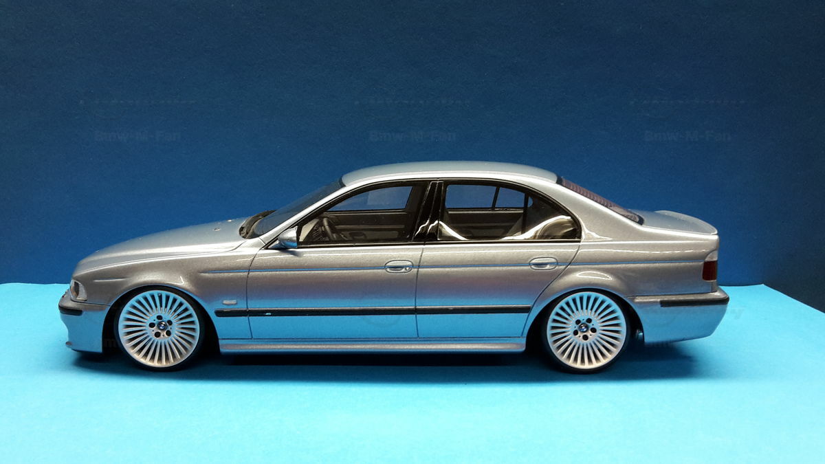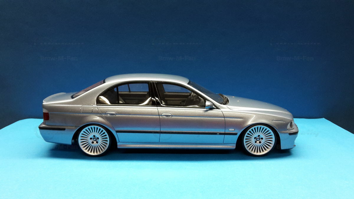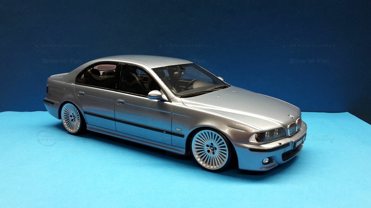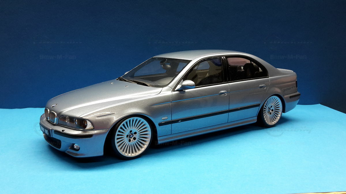 The showcased scale model, crafted by Otto Models in a 1/18 scale, faithfully replicates the BMW E39 M5 in meticulous detail. This model is made of resin, renowned for its precision and high-quality finish in model cars. However, it's important to note that the model displayed here has been modified and does not represent the original product from Otto Models. The alterations can be seen in the photo, making it a unique addition to any collection. For instance, the wheels stand out with a distinct design, possibly indicating the influence of a custom tuner, although the exact origin is not explicitly clear. Additionally, modifications might have been made to the body and other minor details.
