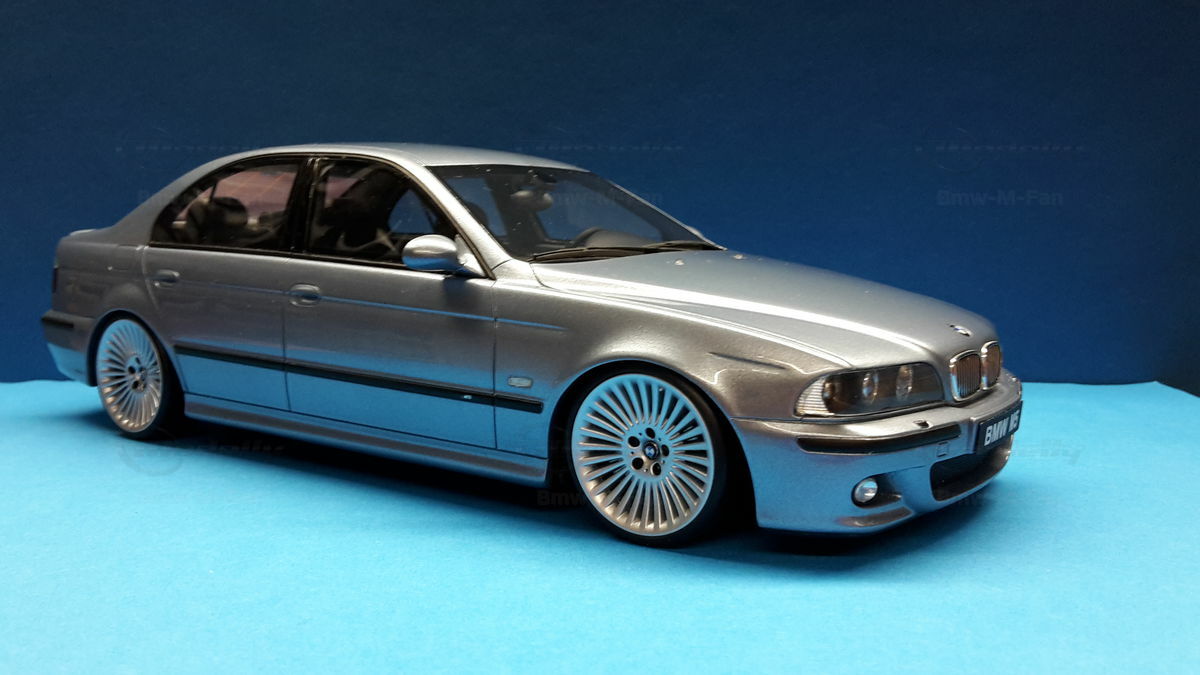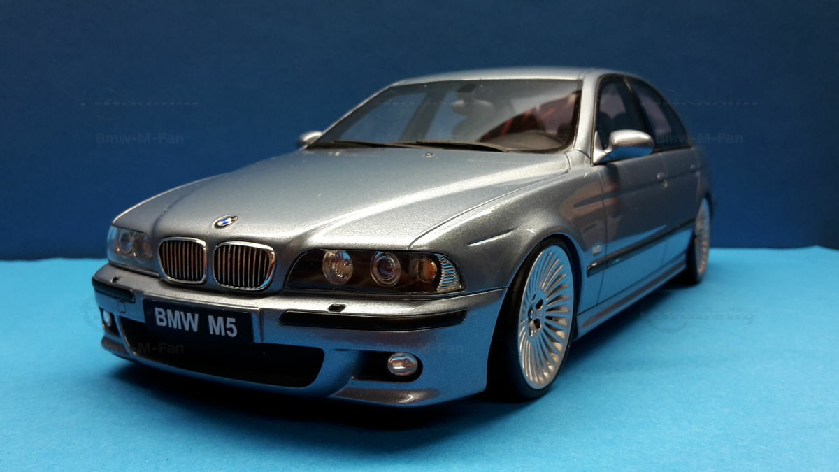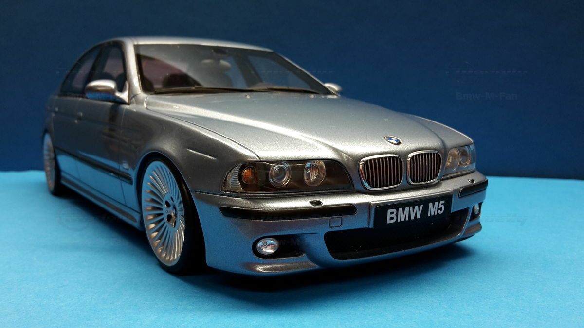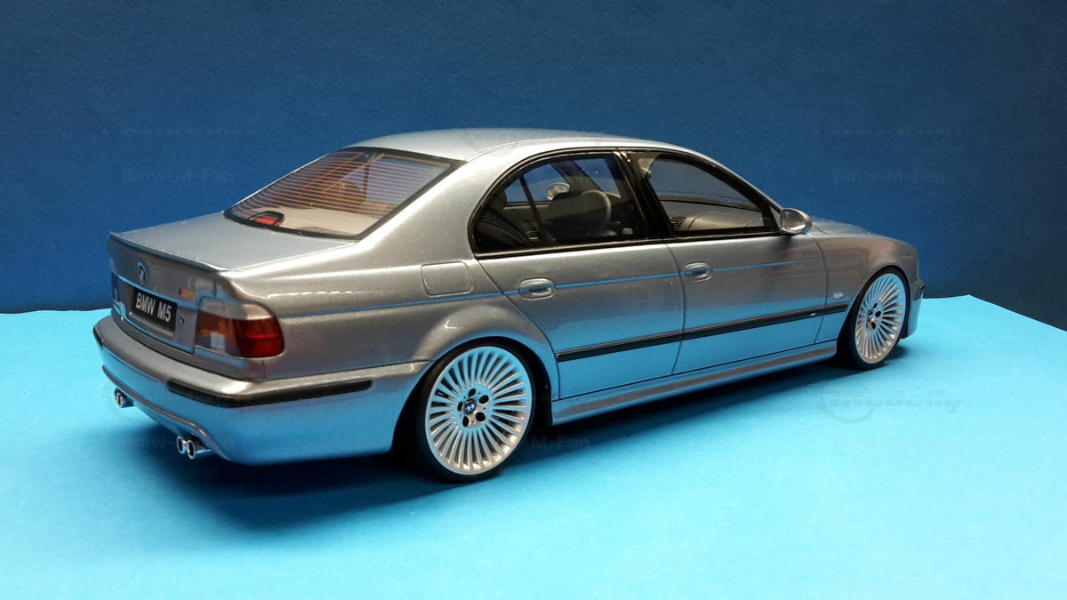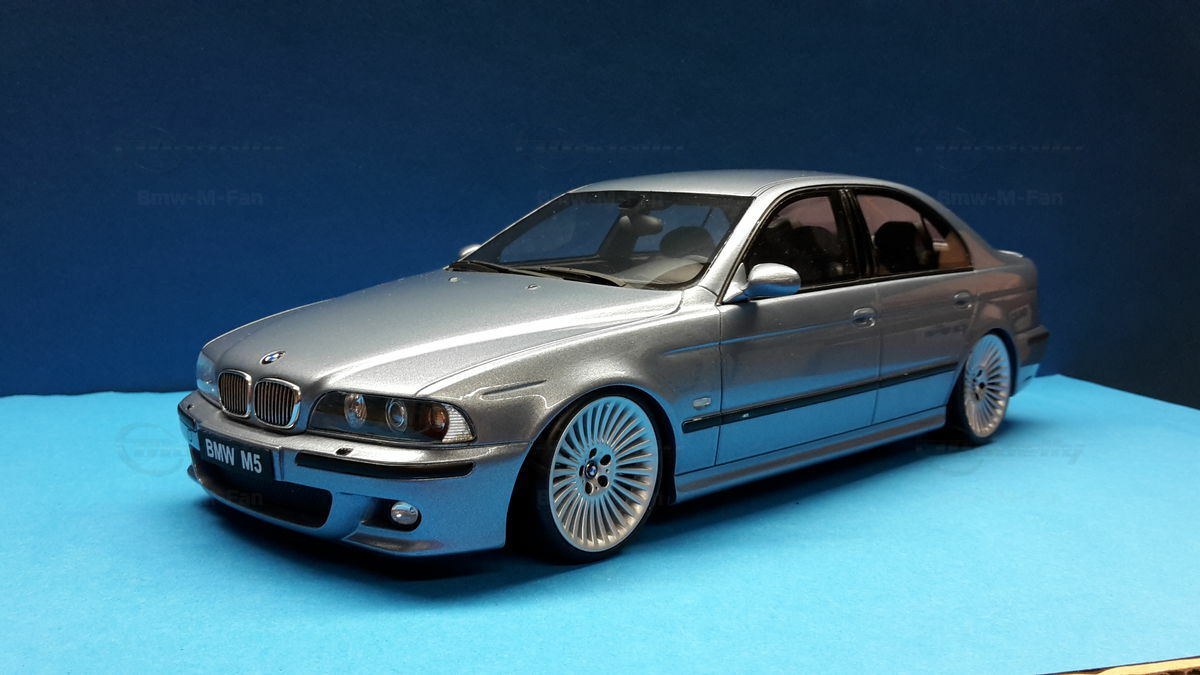 The model car displayed in "Bmw-M-Fan's" collection stands out with its silver paintwork, capturing the style and elegance of the original E39 M5 perfectly. The sharp lines and detailed craftsmanship of the body structure and edges make this model a real eye-catcher. The authentic logos and badges are precisely placed, adding a special touch of authenticity to the model. The modified wheels, in particular, catch the attention and might be reminiscent of a manufacturer like BBS, although this cannot be definitively confirmed. The Otto Models 1/18 scale model is a valuable collector's piece, further individualized by the modifications made.