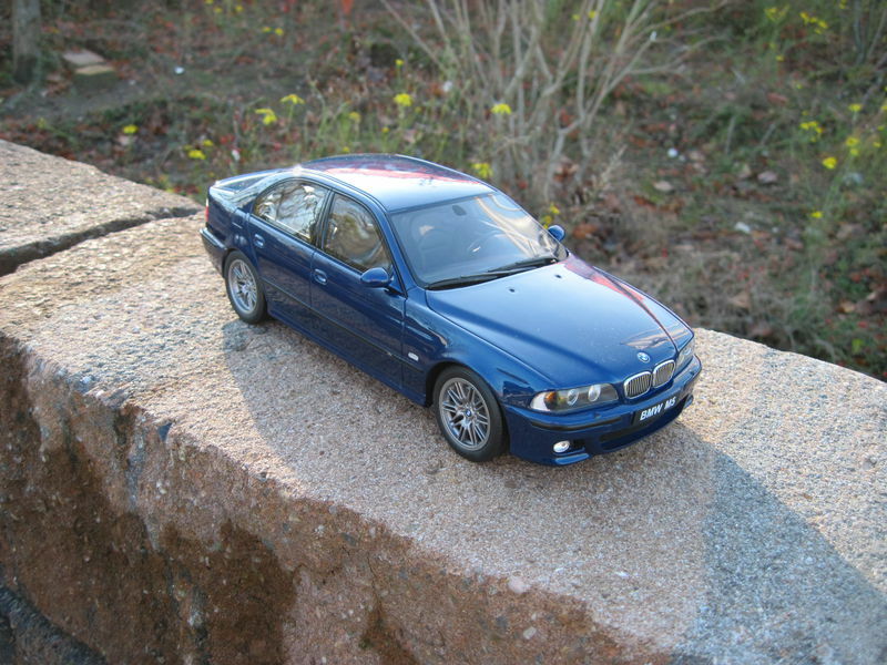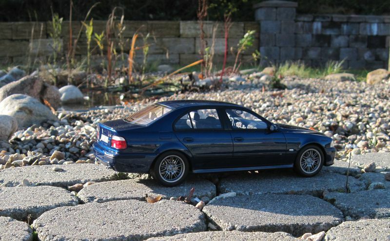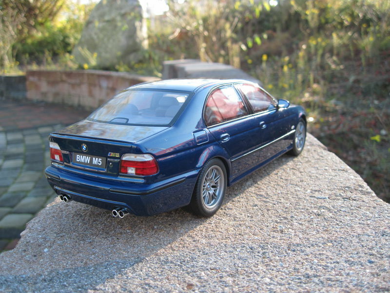 The model here, in 1/18 scale, was made by Otto Models and is part of the collection of Modelly member “Bmw-M-Fan.” This detailed model perfectly captures the essence of the original. You can see it nailed the key features of the E39 M5 like the sleek dual headlights, the aerodynamic front bumper, and the dual exhaust setup. The iconic kidney grille of BMW has also been authentically recreated. The model shines in a metallic blue finish, likely in Le Mans Blue Metallic – a color that really highlights the sporty look. This paint job perfectly complements the car's sculpted lines, making the model a real eye-catcher on any shelf.